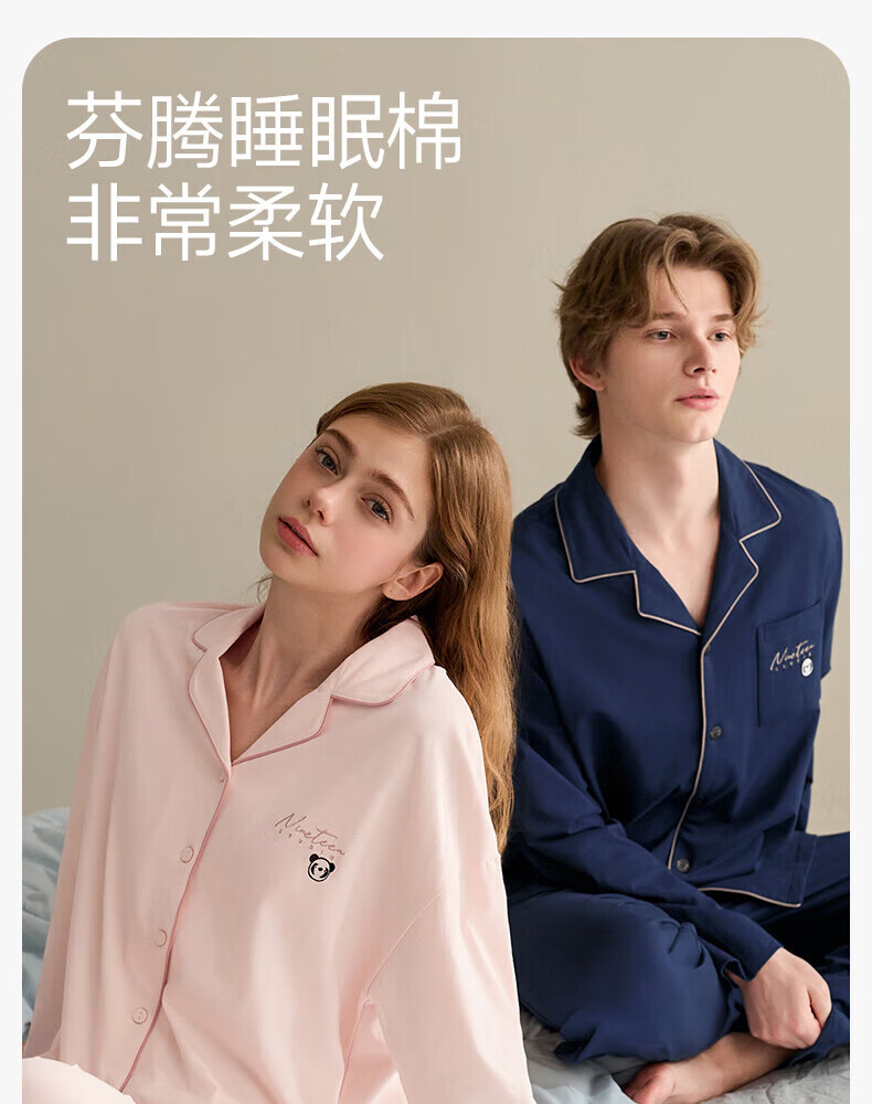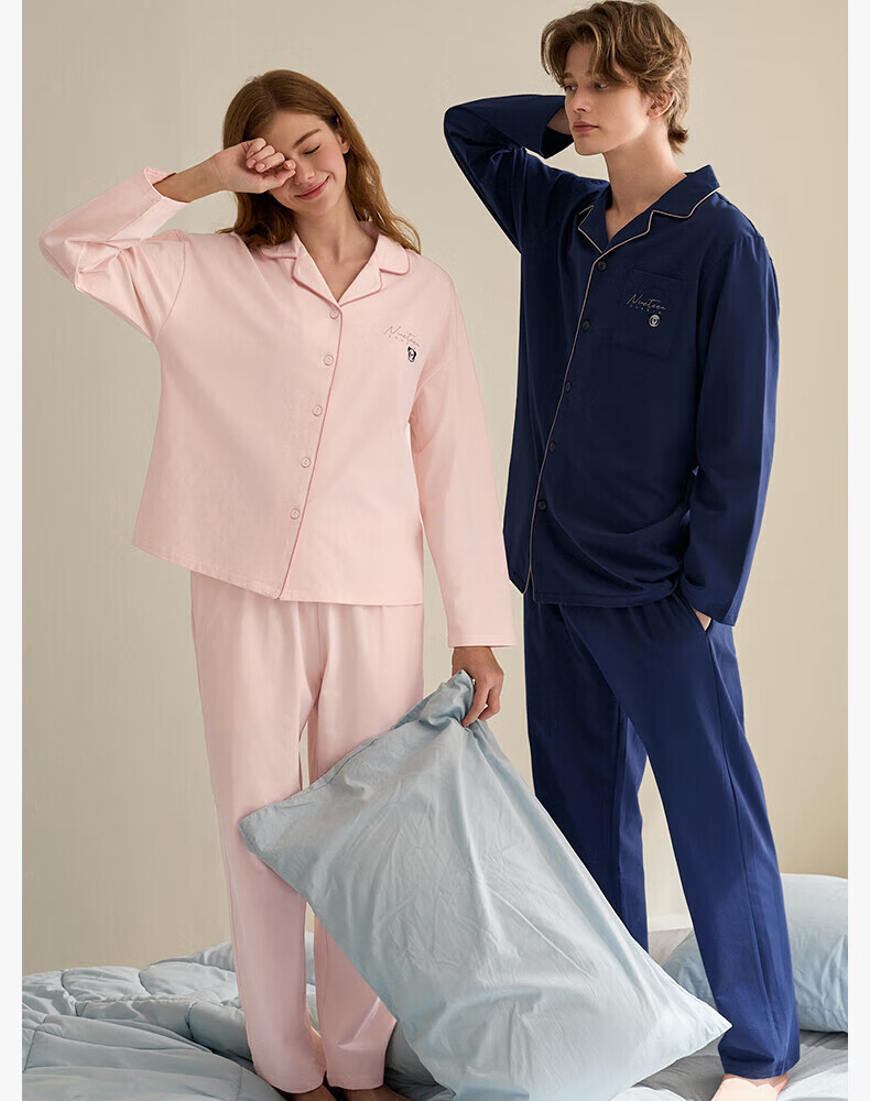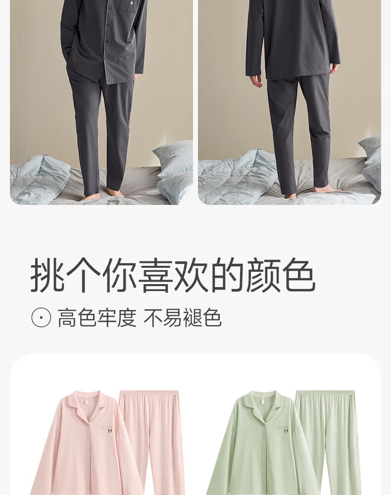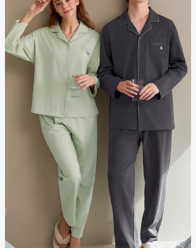 芬腾情侣睡衣女士春秋季新款长袖纯棉休闲大码开衫男款家居服套装 果绿(女) L 建议:女110-124斤,男126-146斤