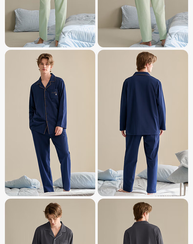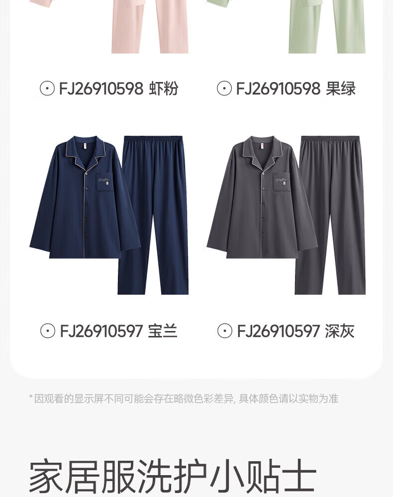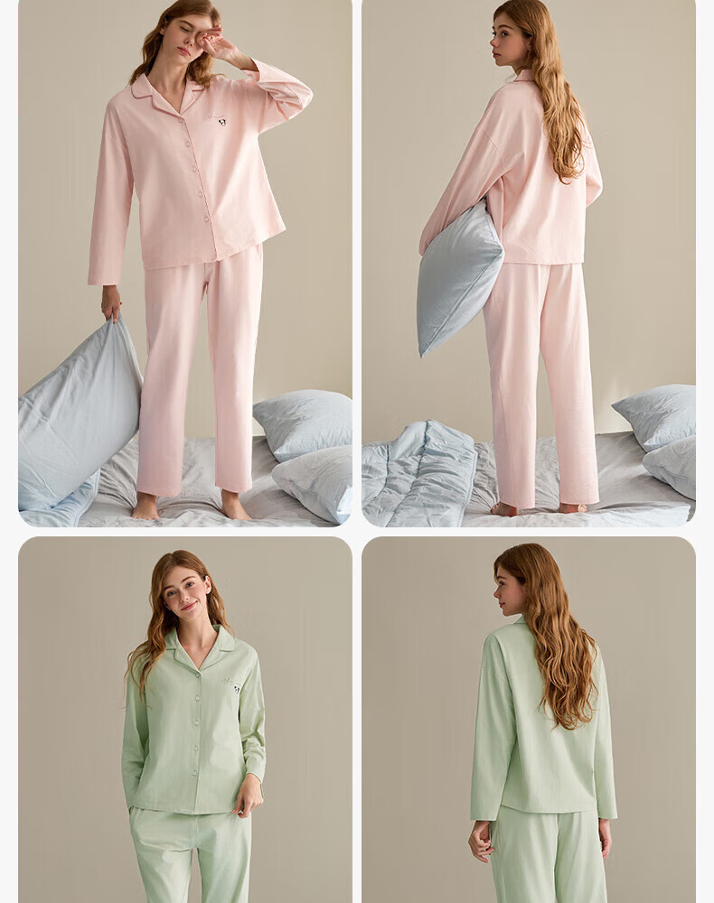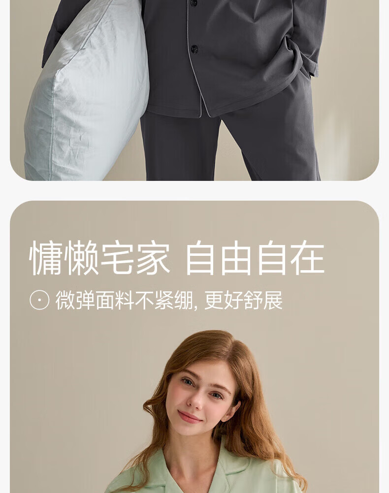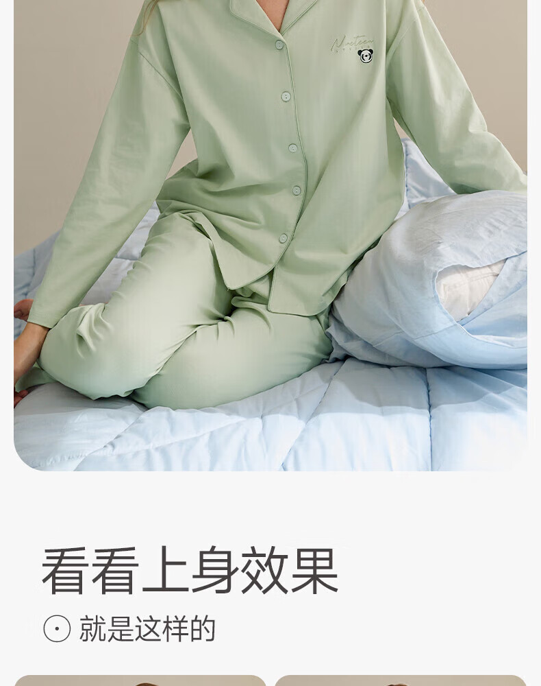 芬腾情侣睡衣女士春秋季新款长袖纯棉休闲大码开衫男款家居服套装 果绿(女) L 建议:女110-124斤,男126-146斤