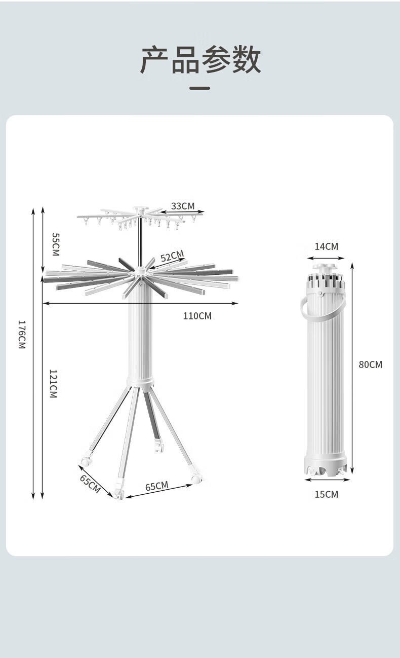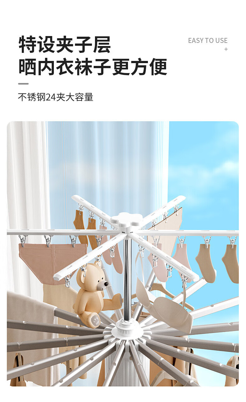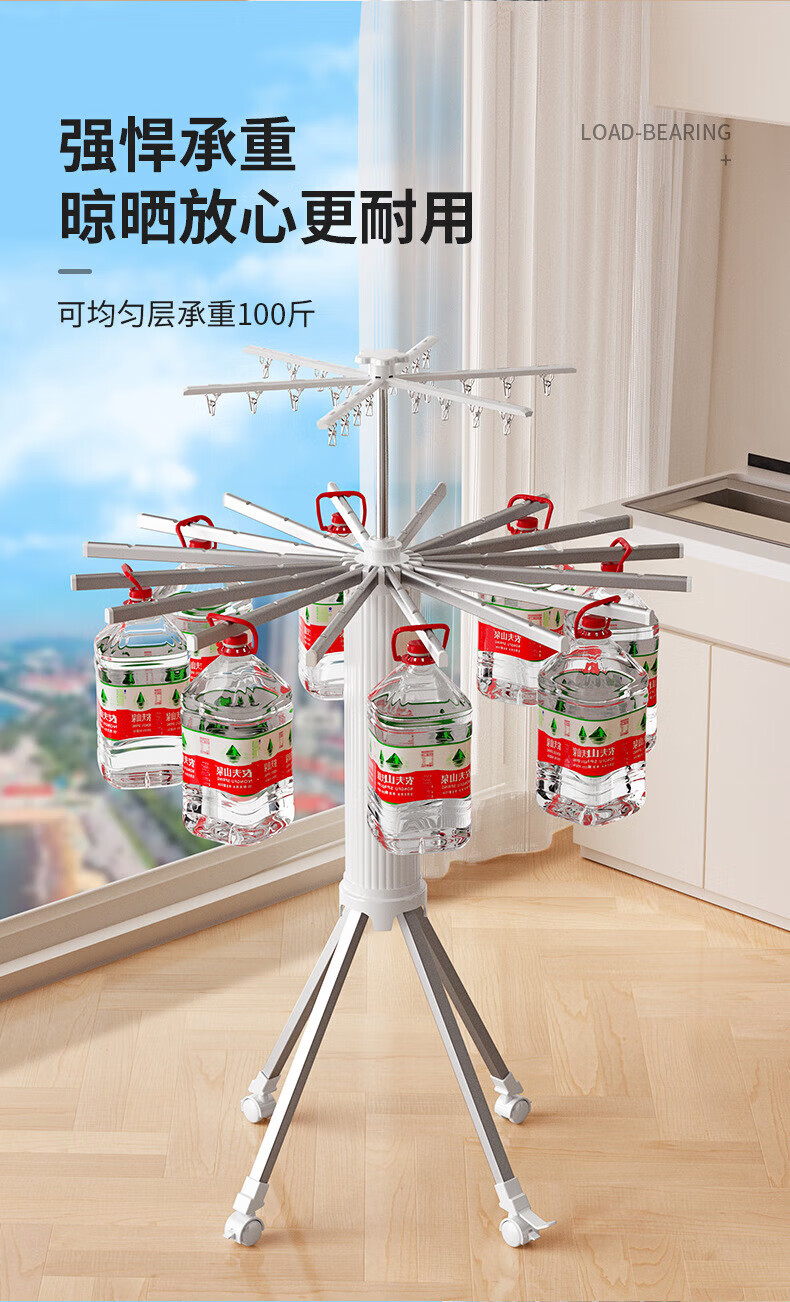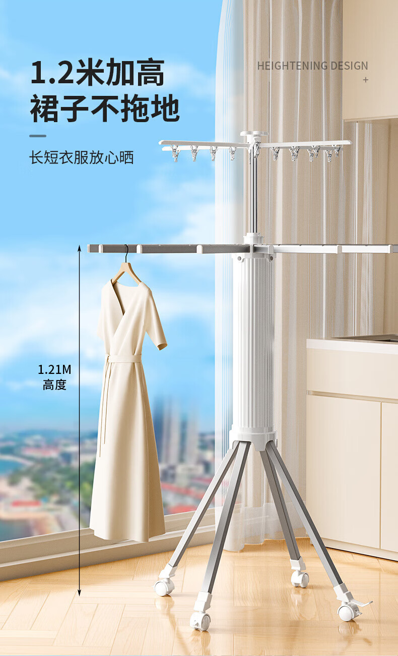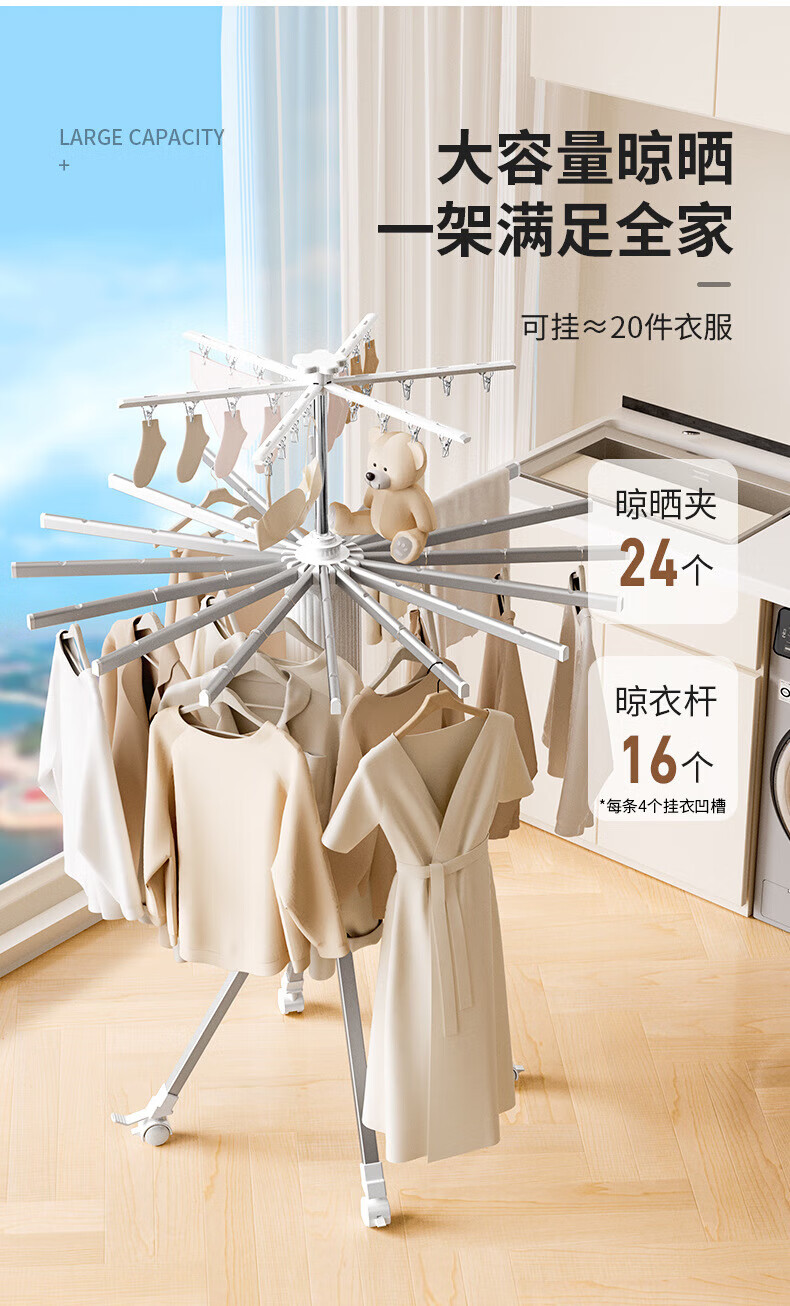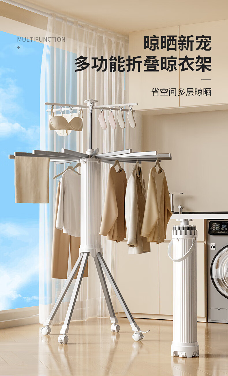 户璃德国高端晾衣架小型伸缩折叠防风晾衣架落地章鱼阳台晾晒神器晒衣 米白【319ml】超强锁温款M3-2 1ml