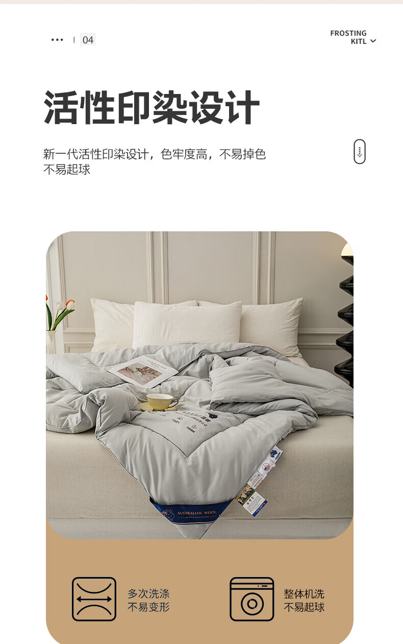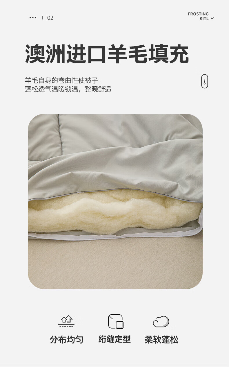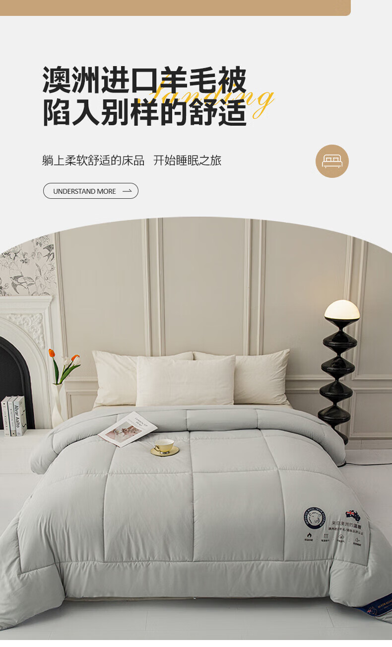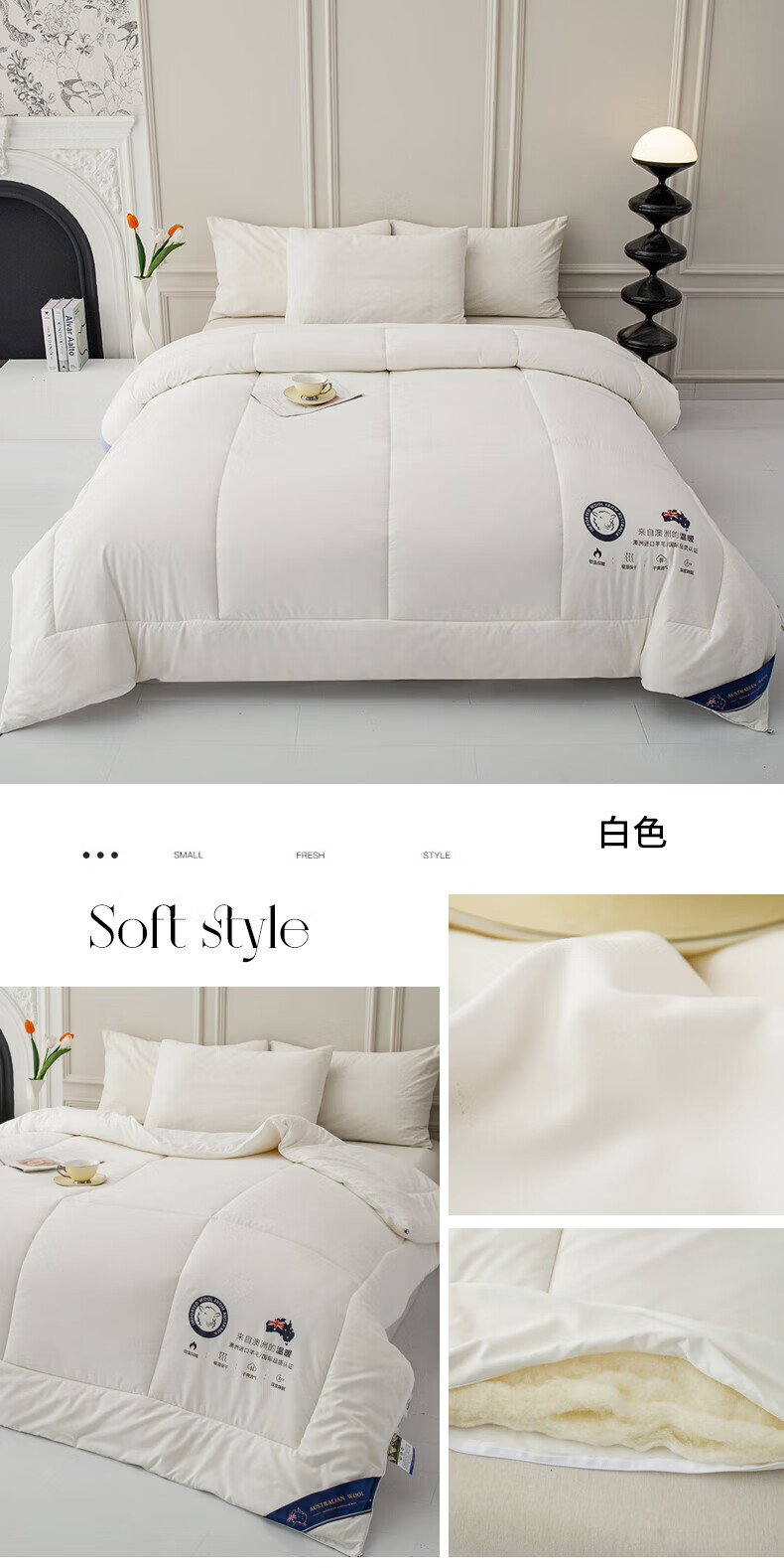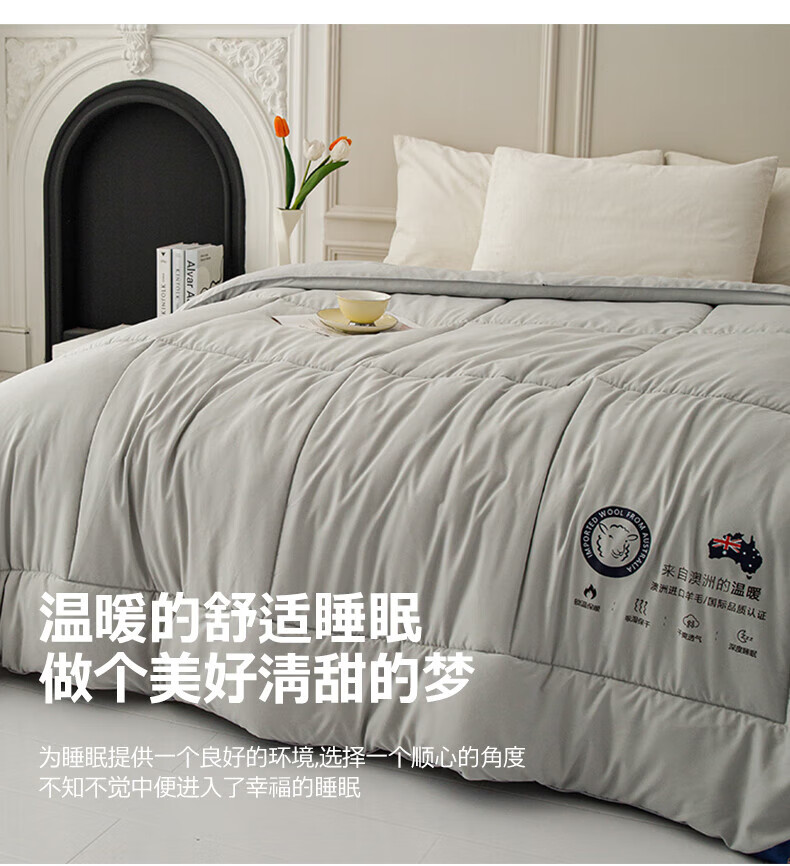 恒源祥羊毛被澳洲进口四季被芯被褥学生宿舍棉被10斤冬被加厚春秋被子 玉色 220x240cm(10斤厚冬被 )