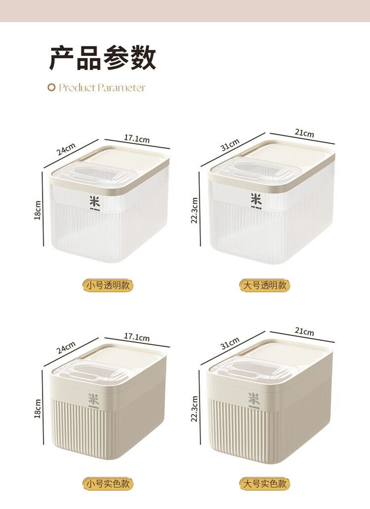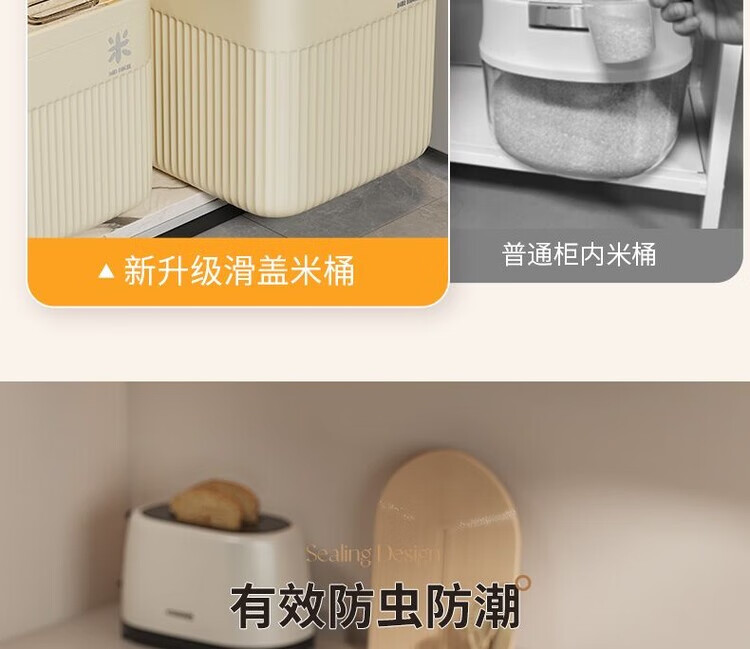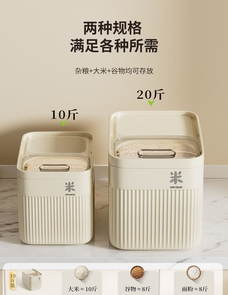 简漾装米桶家用防虫防潮密封装米缸大米粮箱米箱收纳盒五谷杂粮储存罐 推拉盖(1-2人)透明白-约11斤+送量杯