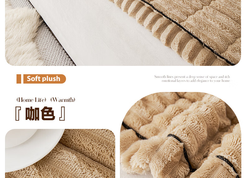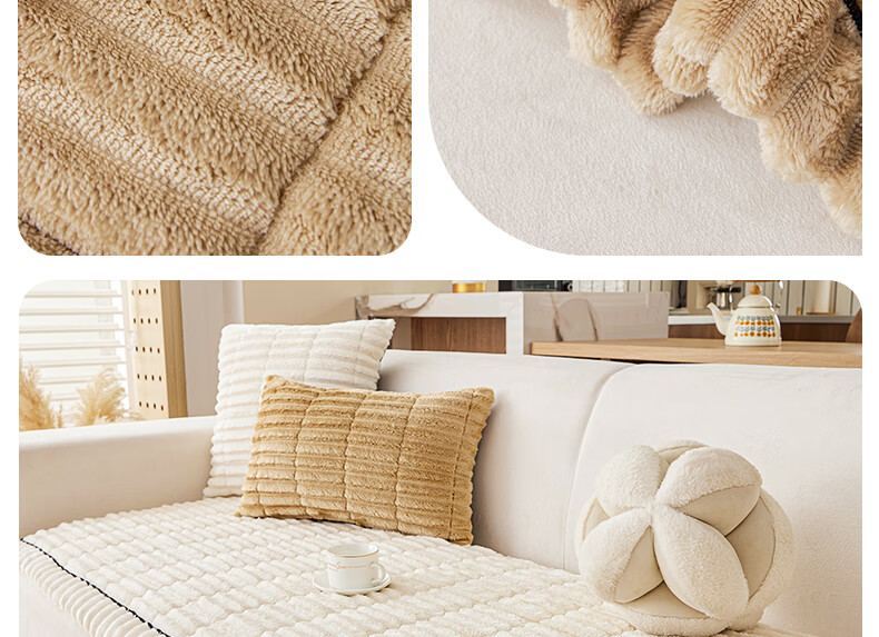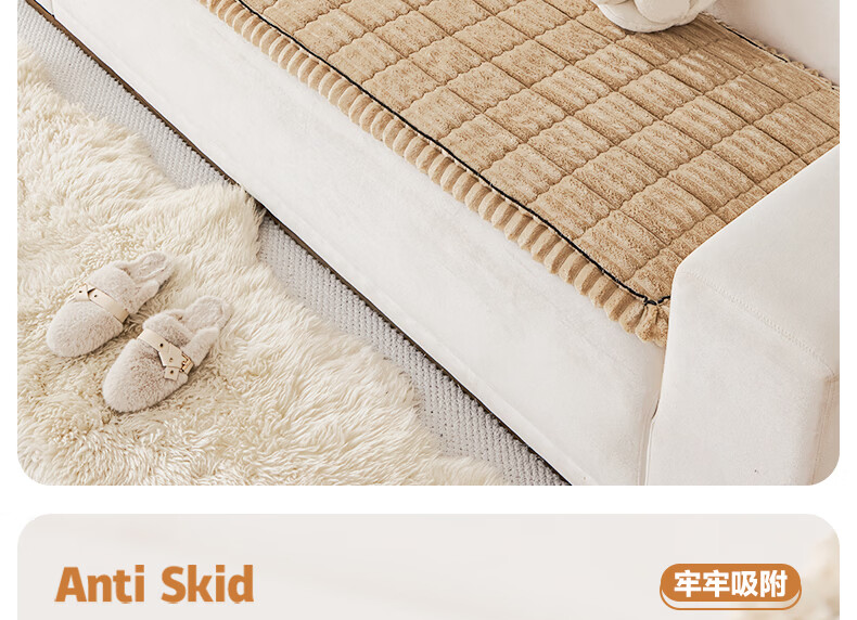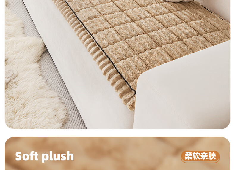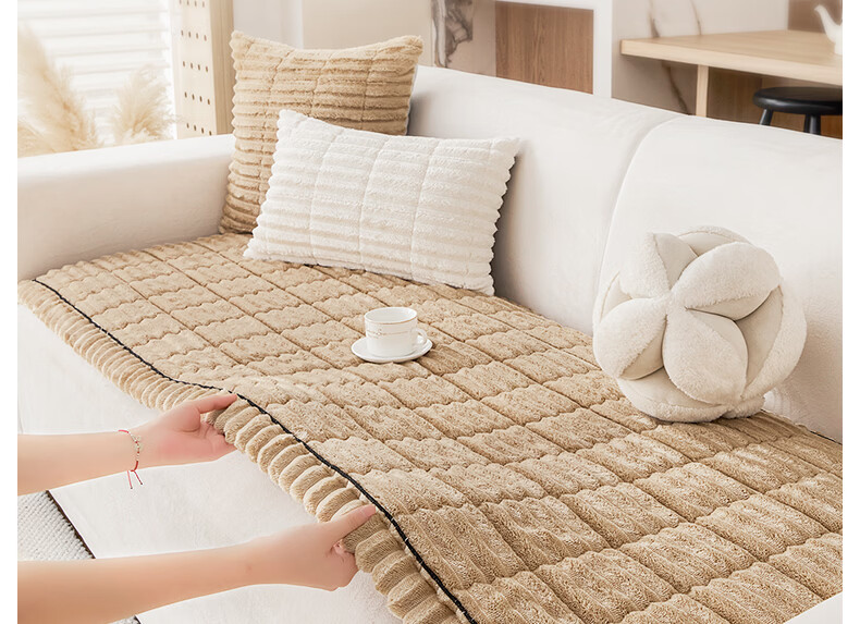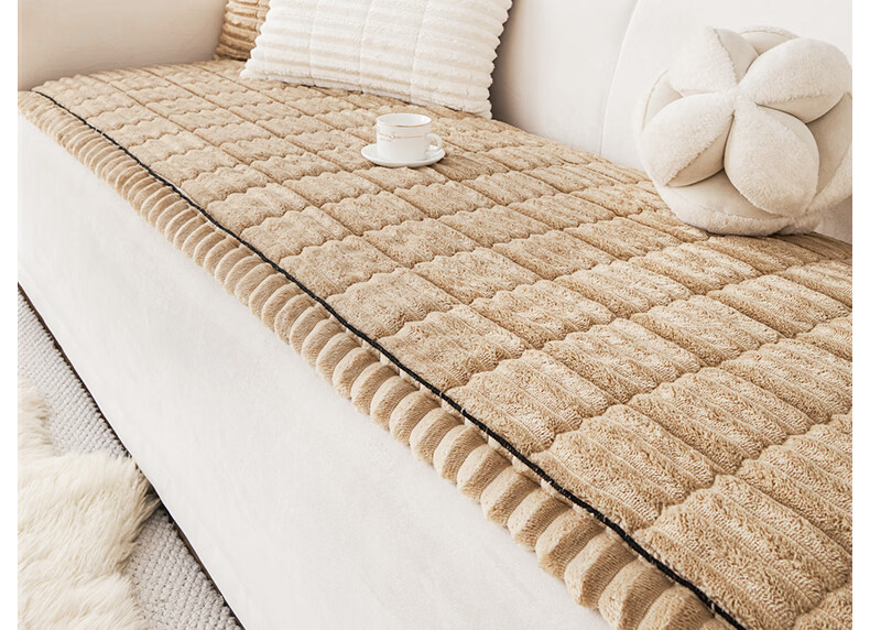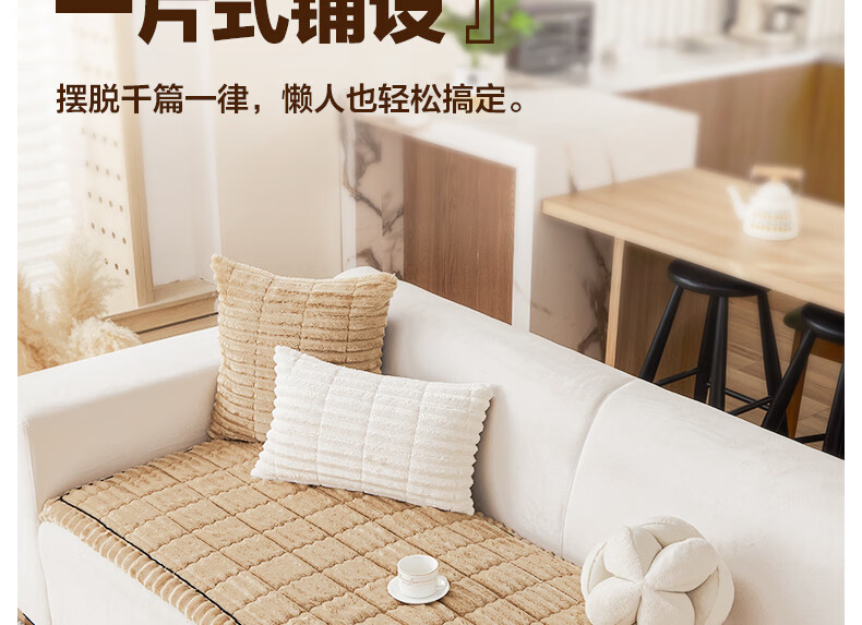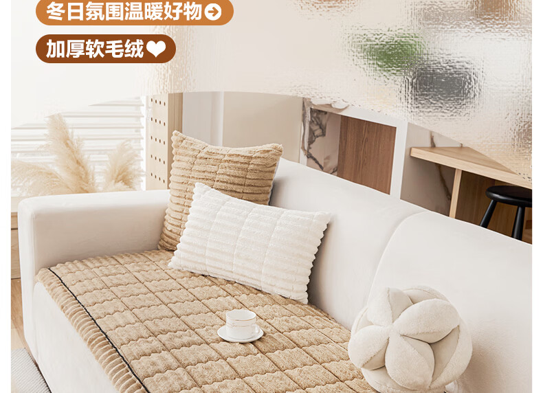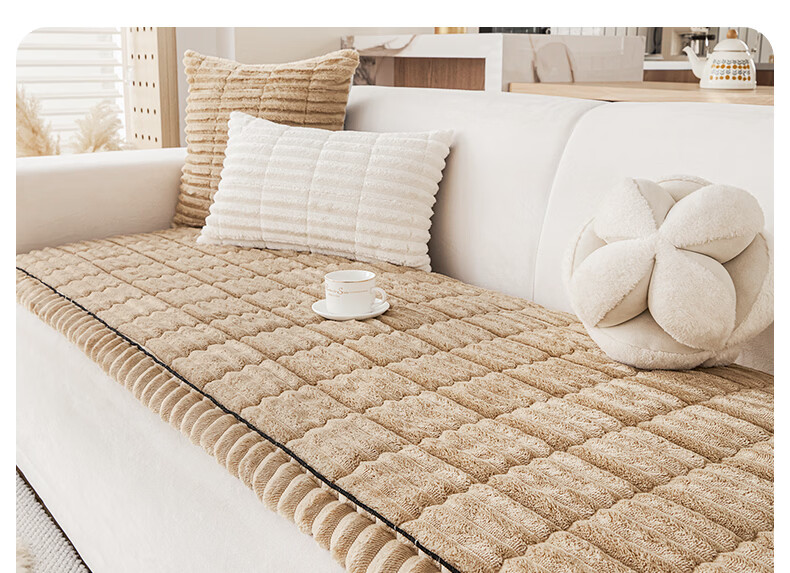 名创优品(MINISO)沙发垫软垫子 加厚毛绒防滑直排一片式坐垫沙发盖布 直边梦绒-卡其 60cm*180cm 【两人位】