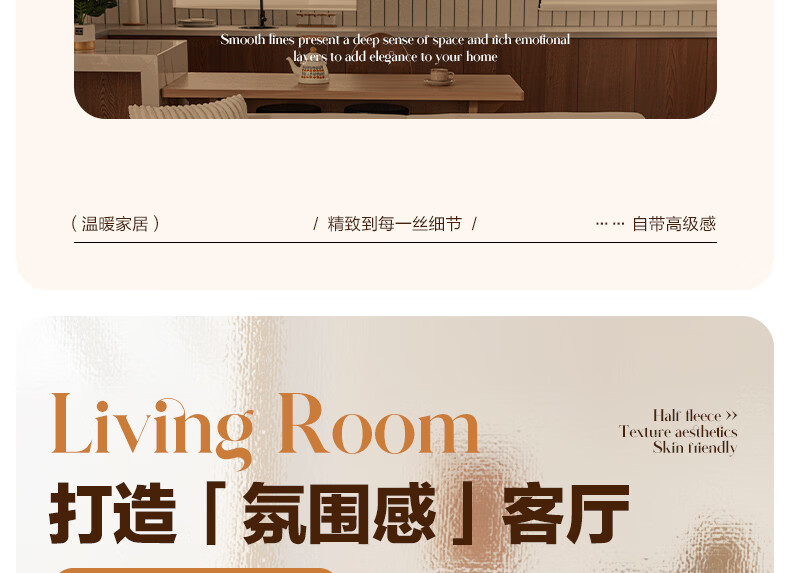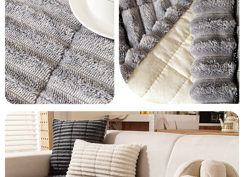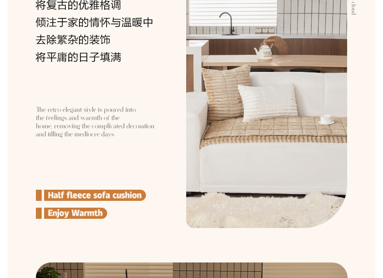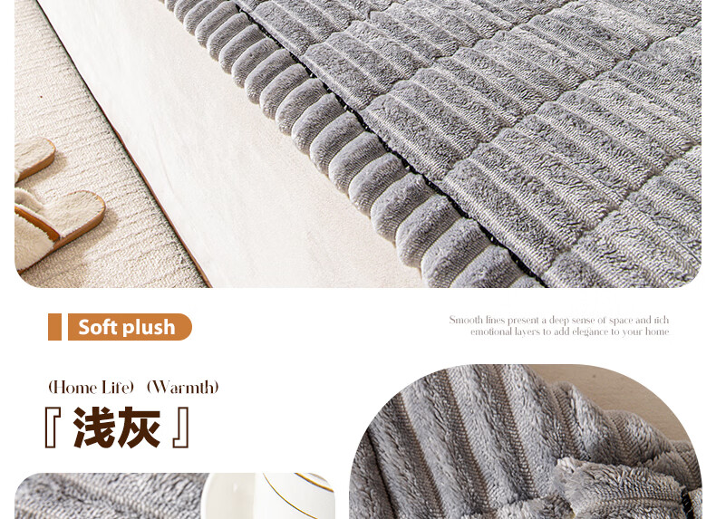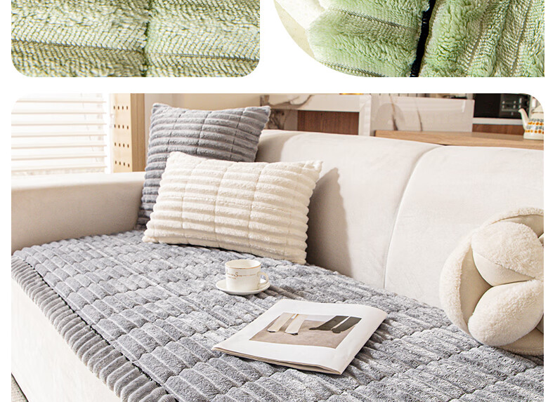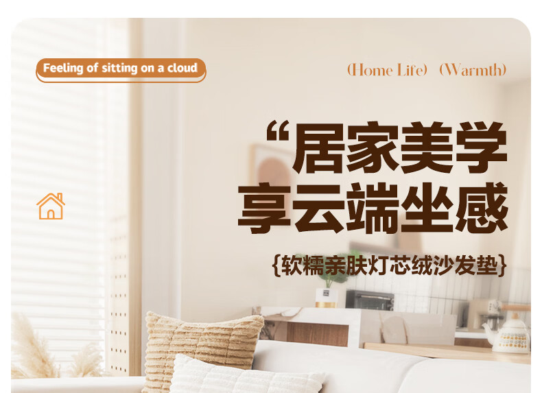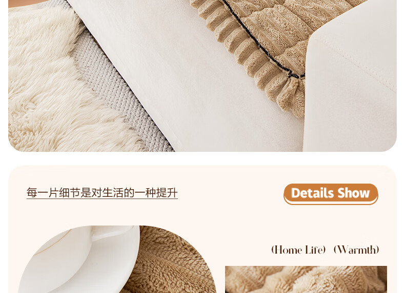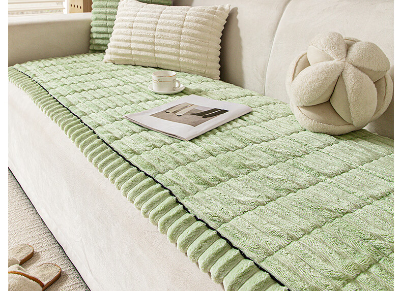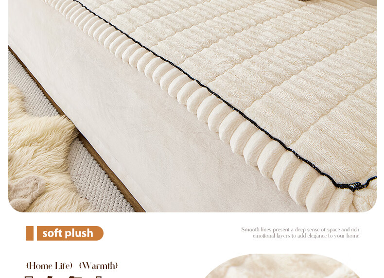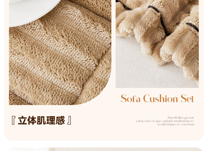 名创优品(MINISO)沙发垫软垫子 加厚毛绒防滑直排一片式坐垫沙发盖布 直边梦绒-卡其 60cm*180cm 【两人位】