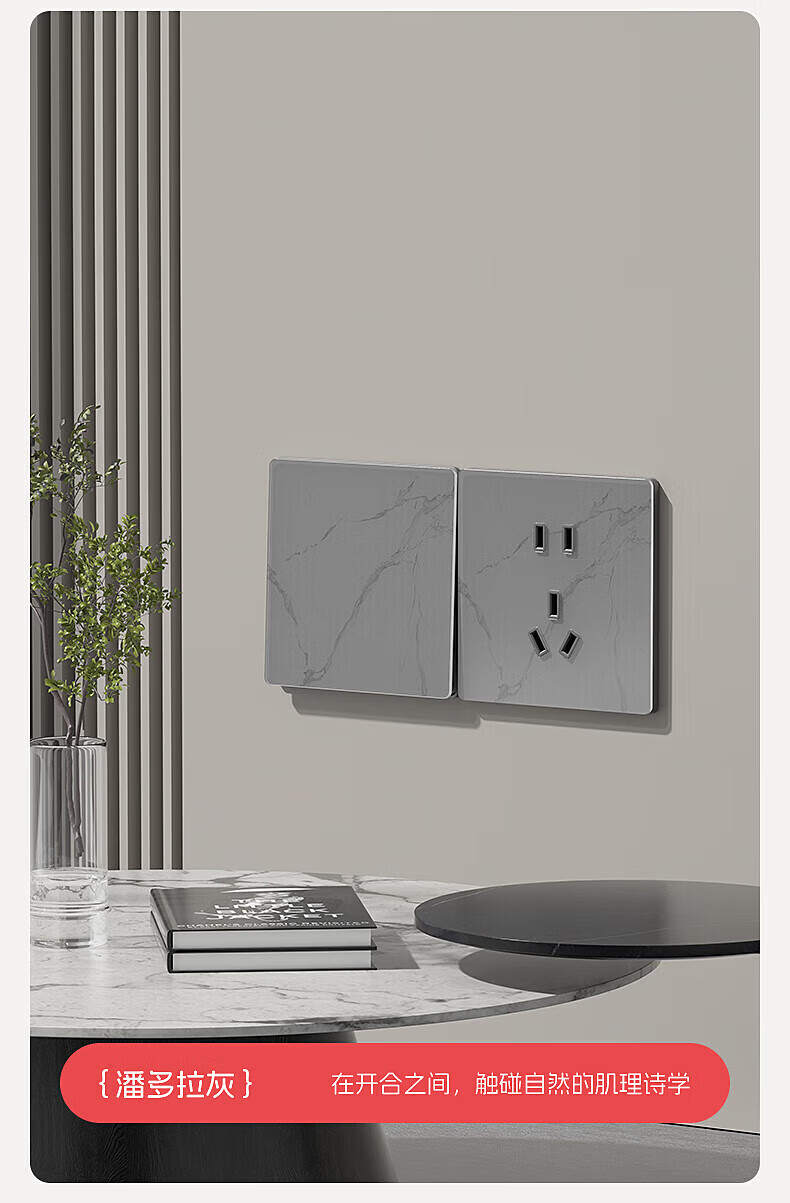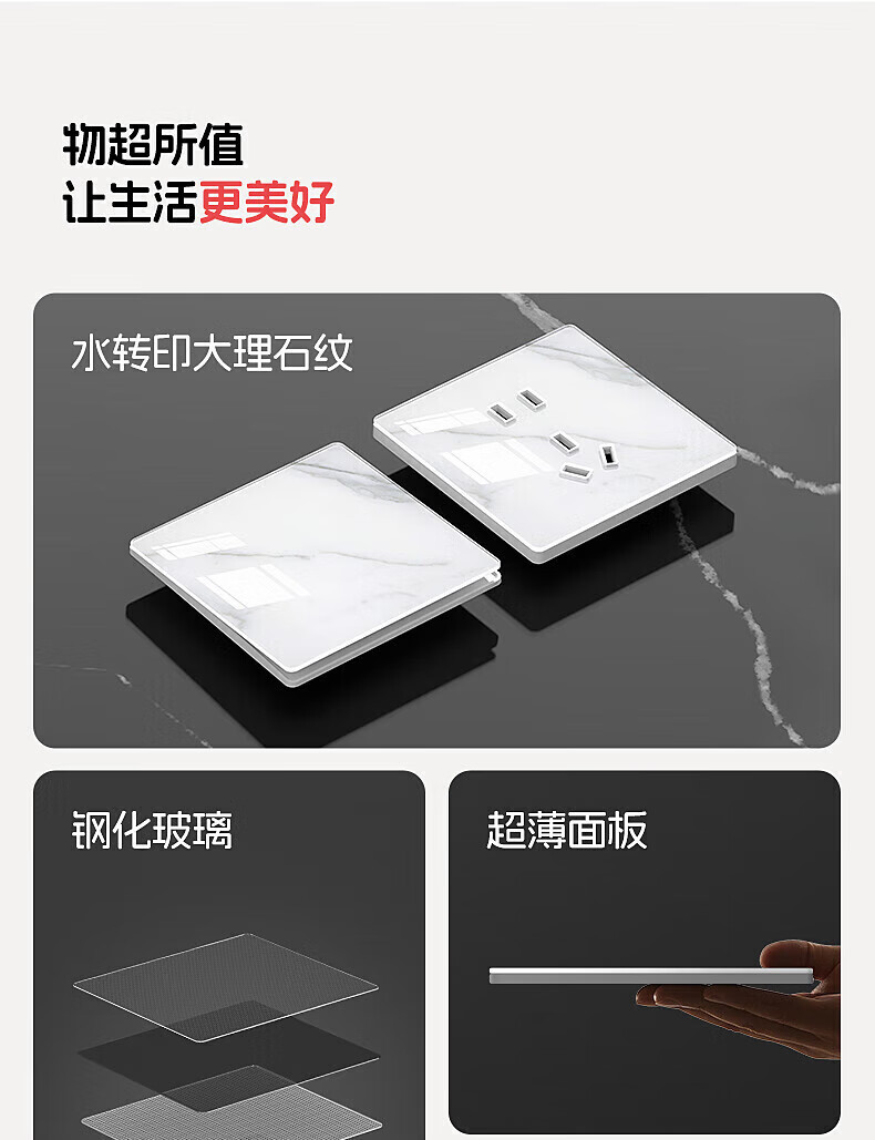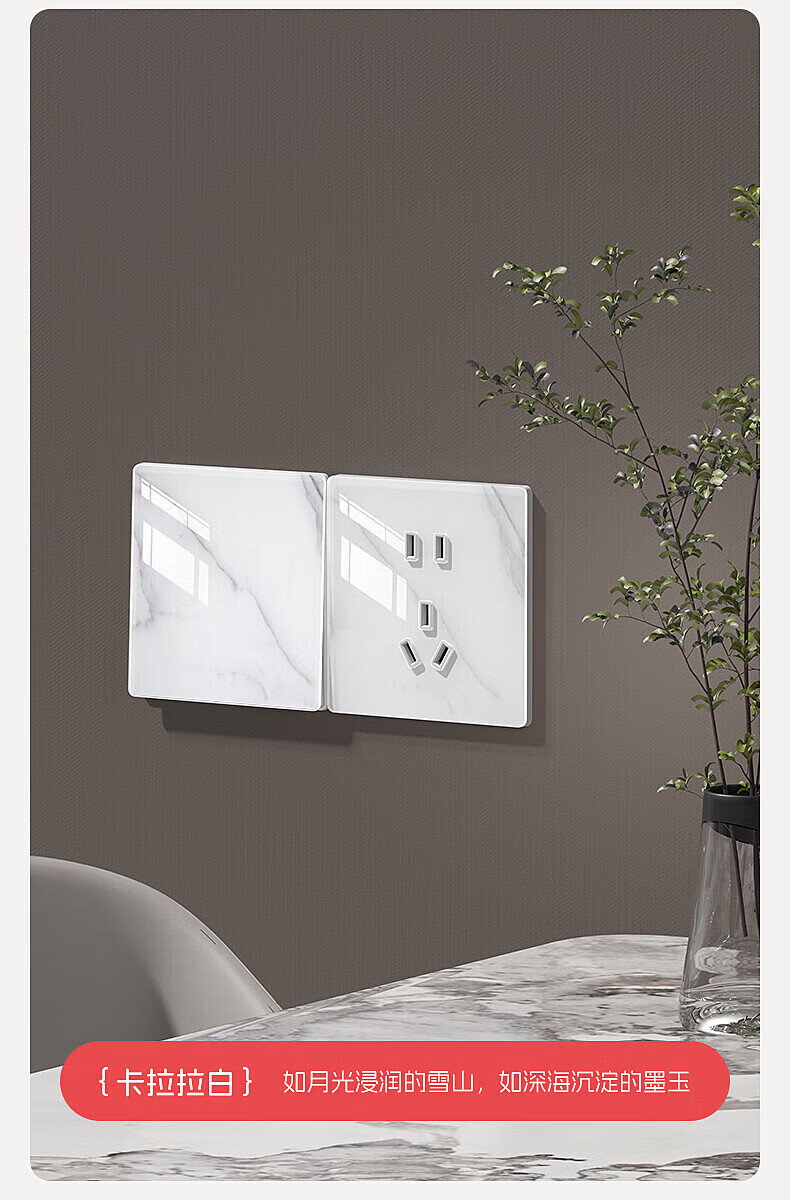 国际电工86型暗装开关插座面板五孔带线钢化玻璃仿大理石纹肤感雪花纹 正五孔