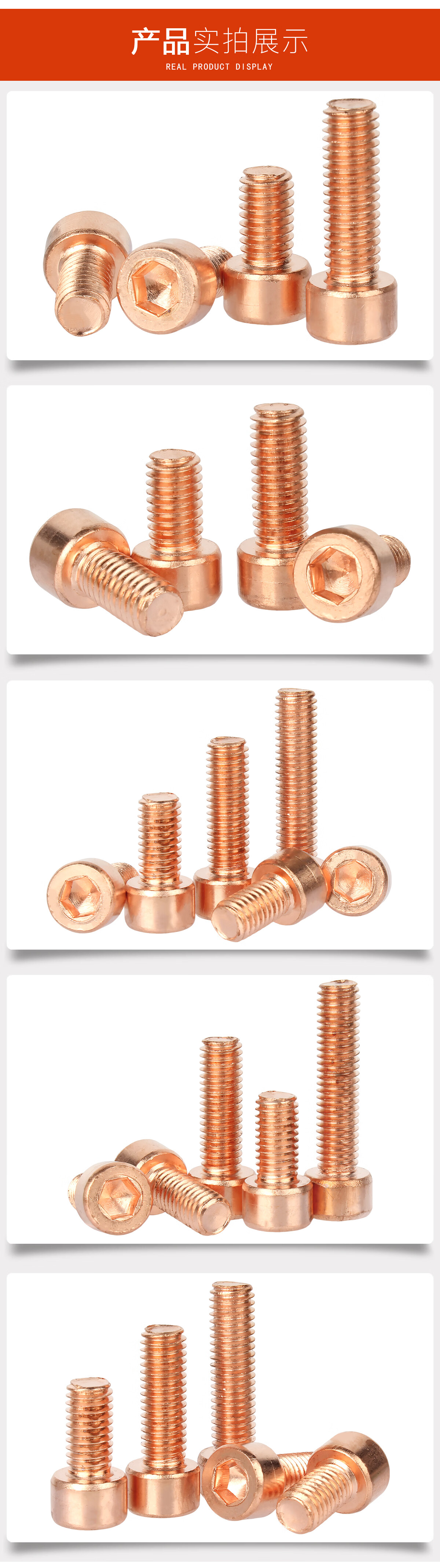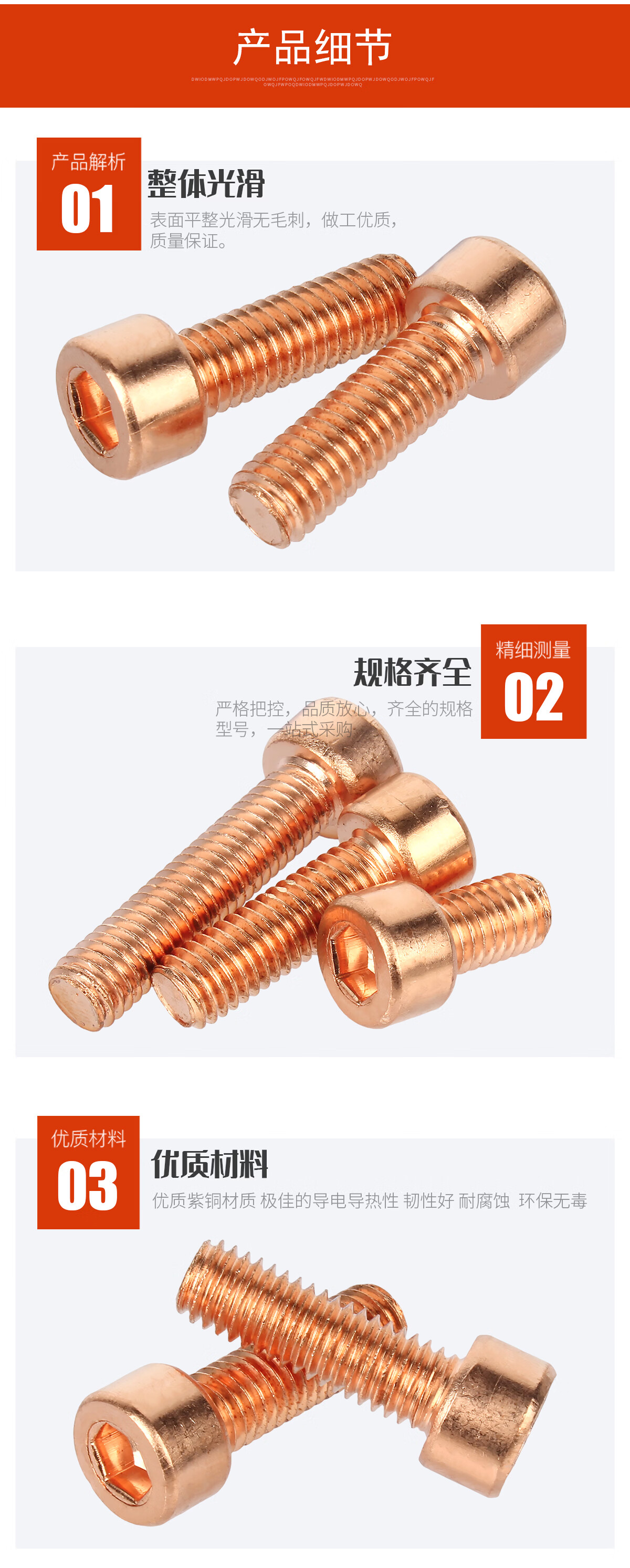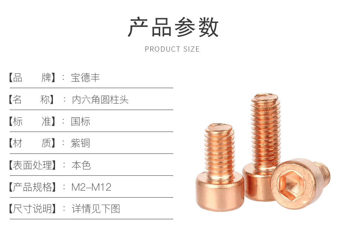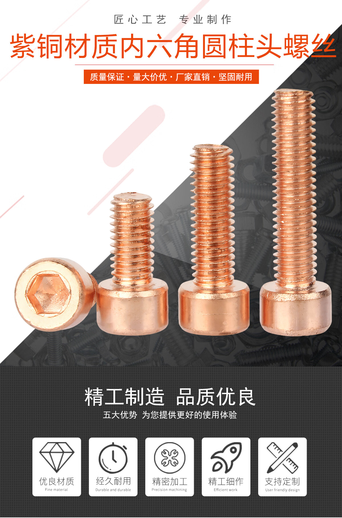 宝德丰国标T2纯紫铜内六角螺丝红铜圆柱头螺栓铜螺钉全M4M5M6M8M10M12mm M2x4[30只]