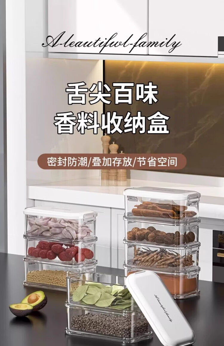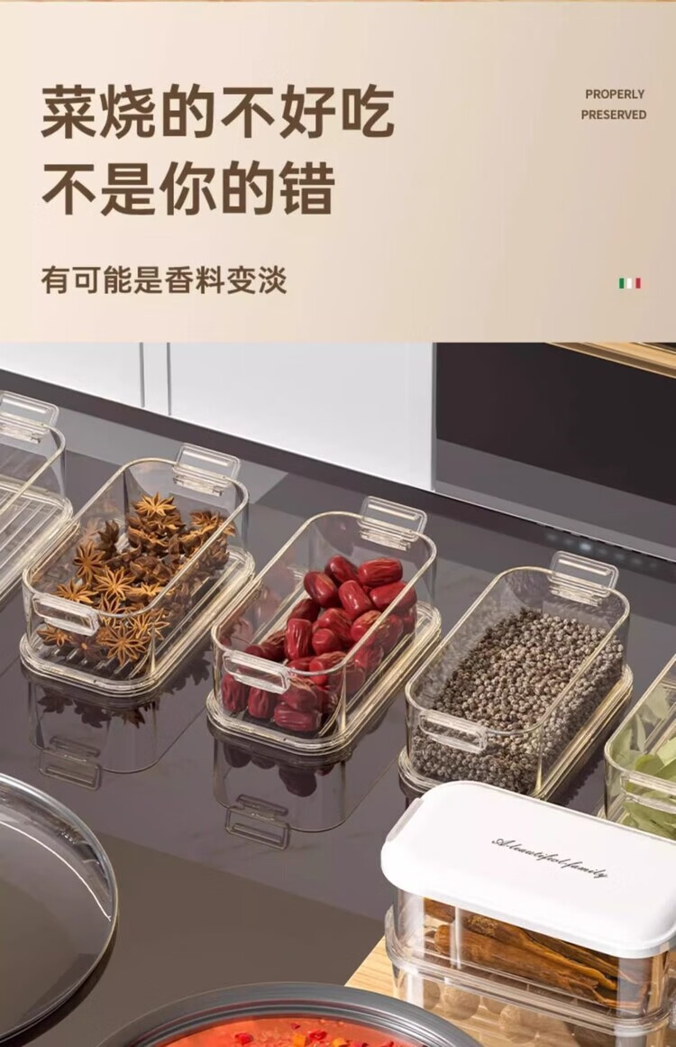 简漾2025食品级香料收纳盒多功能大料佐料分装盒调料盒分装盒家用厨房 1盒-1盖