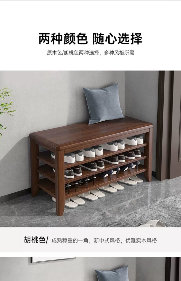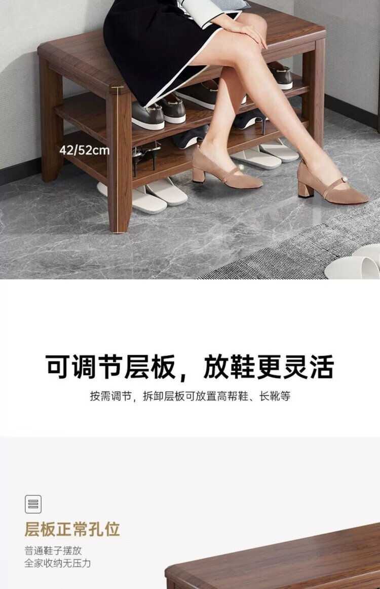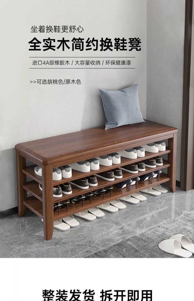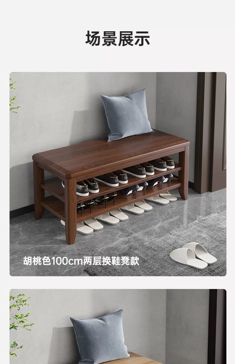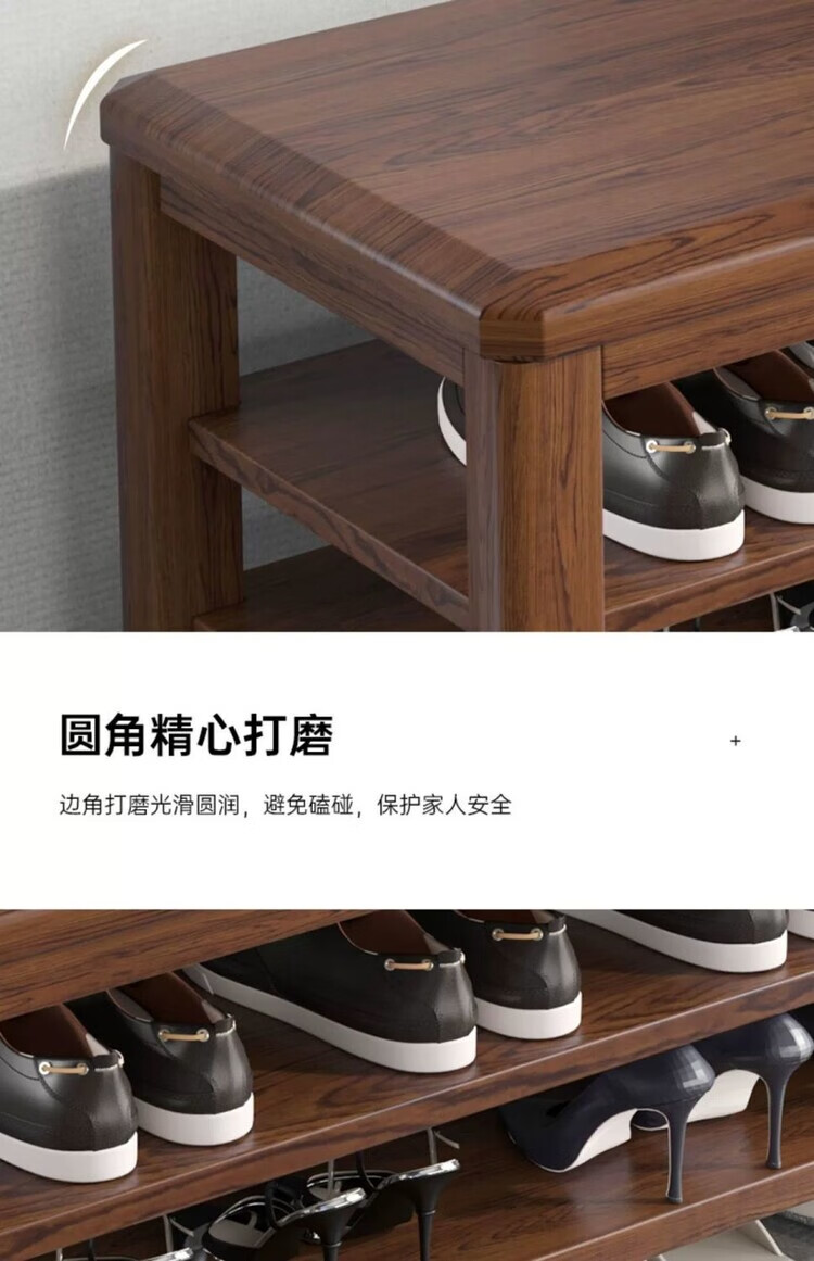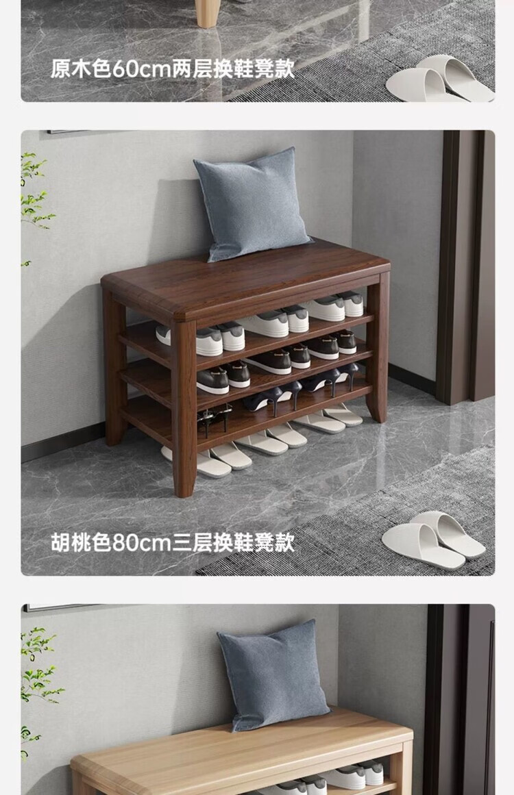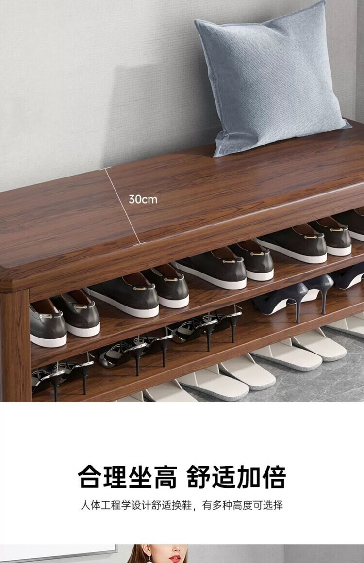 弘星隆实木换鞋凳鞋柜家用门口可坐软包坐凳一体凳进门收纳免安装穿鞋凳 胡桃色 整装发货全实木二层-60CM
