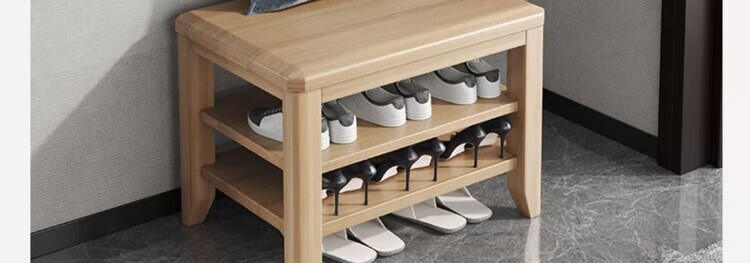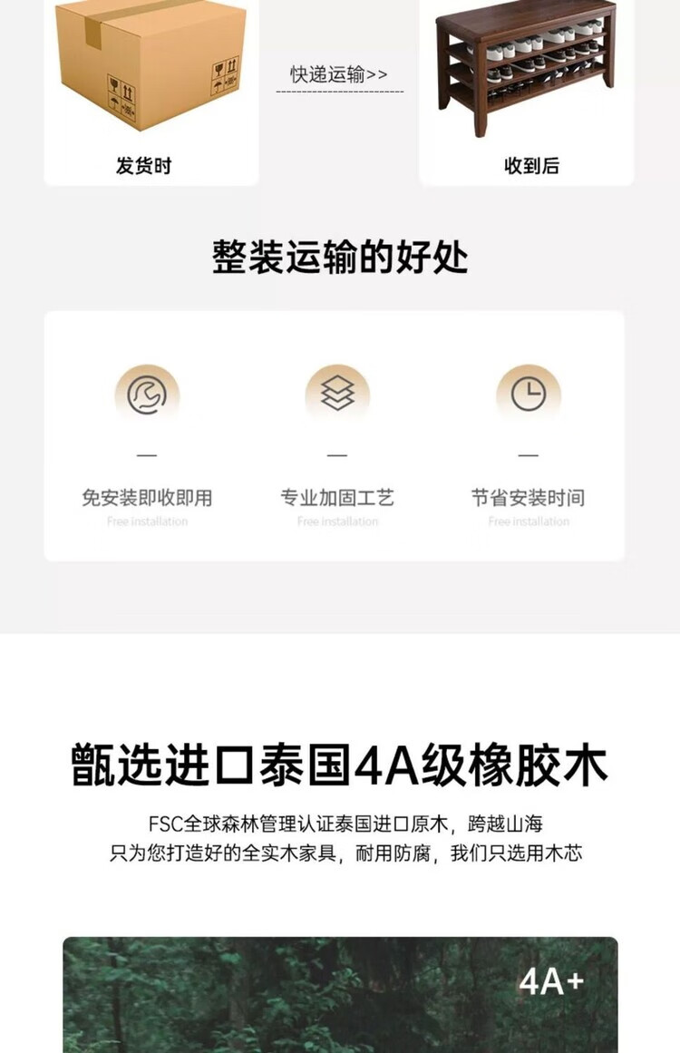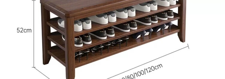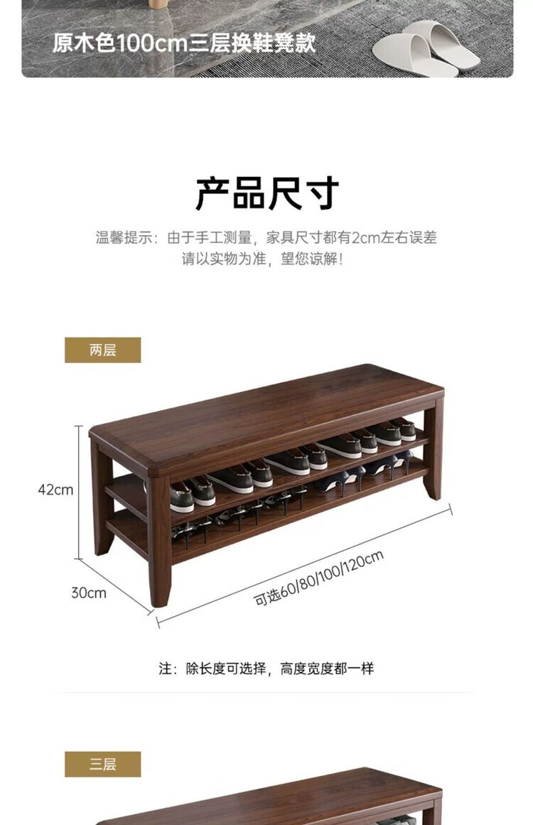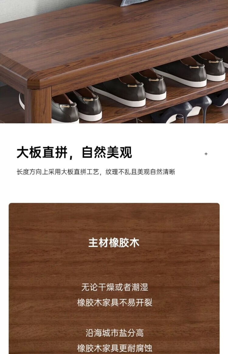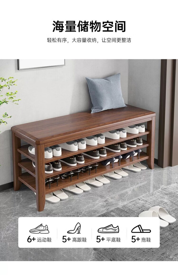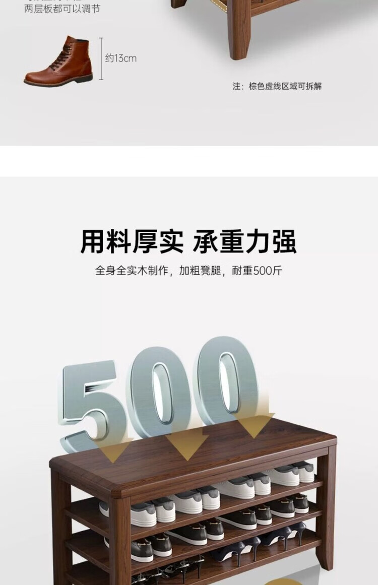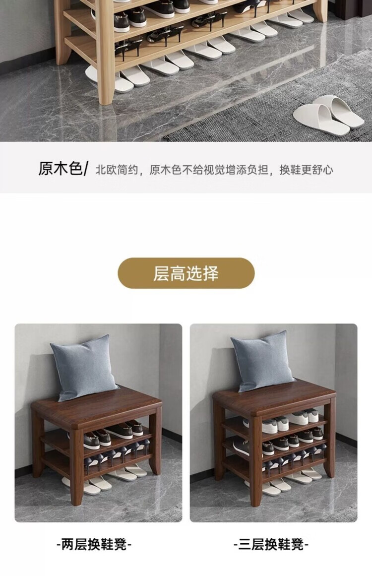 弘星隆实木换鞋凳鞋柜家用门口可坐软包坐凳一体凳进门收纳免安装穿鞋凳 胡桃色 整装发货全实木二层-60CM