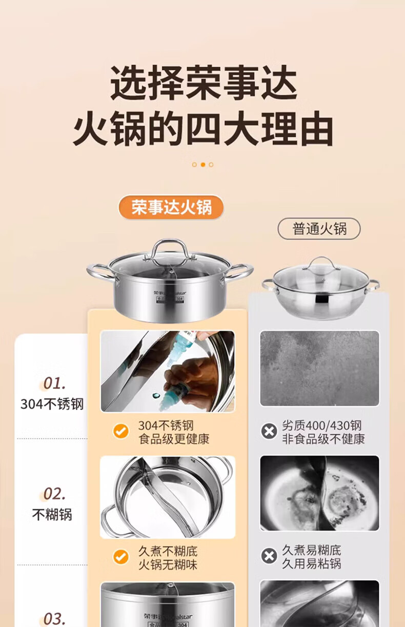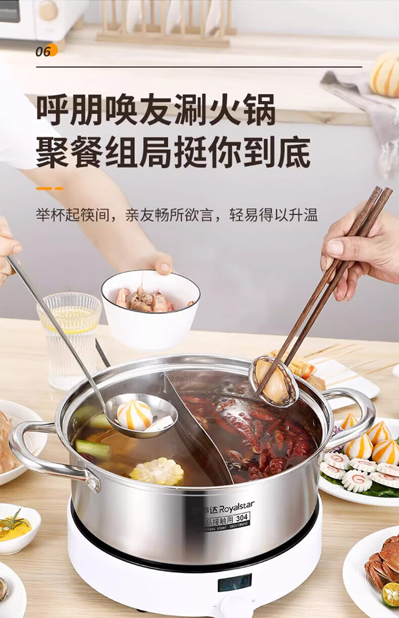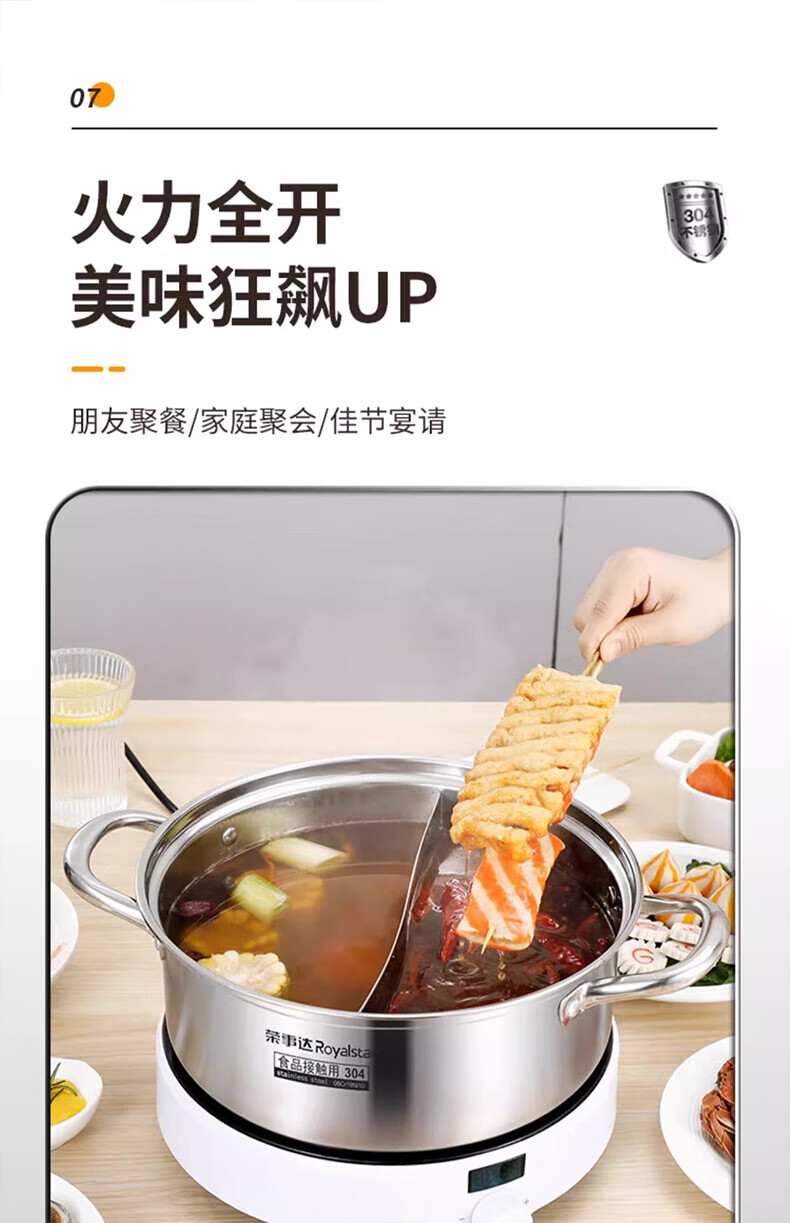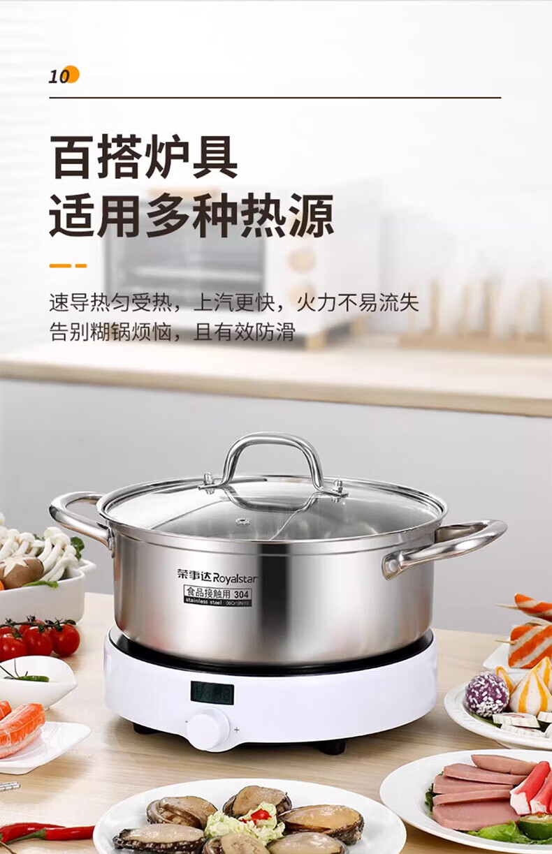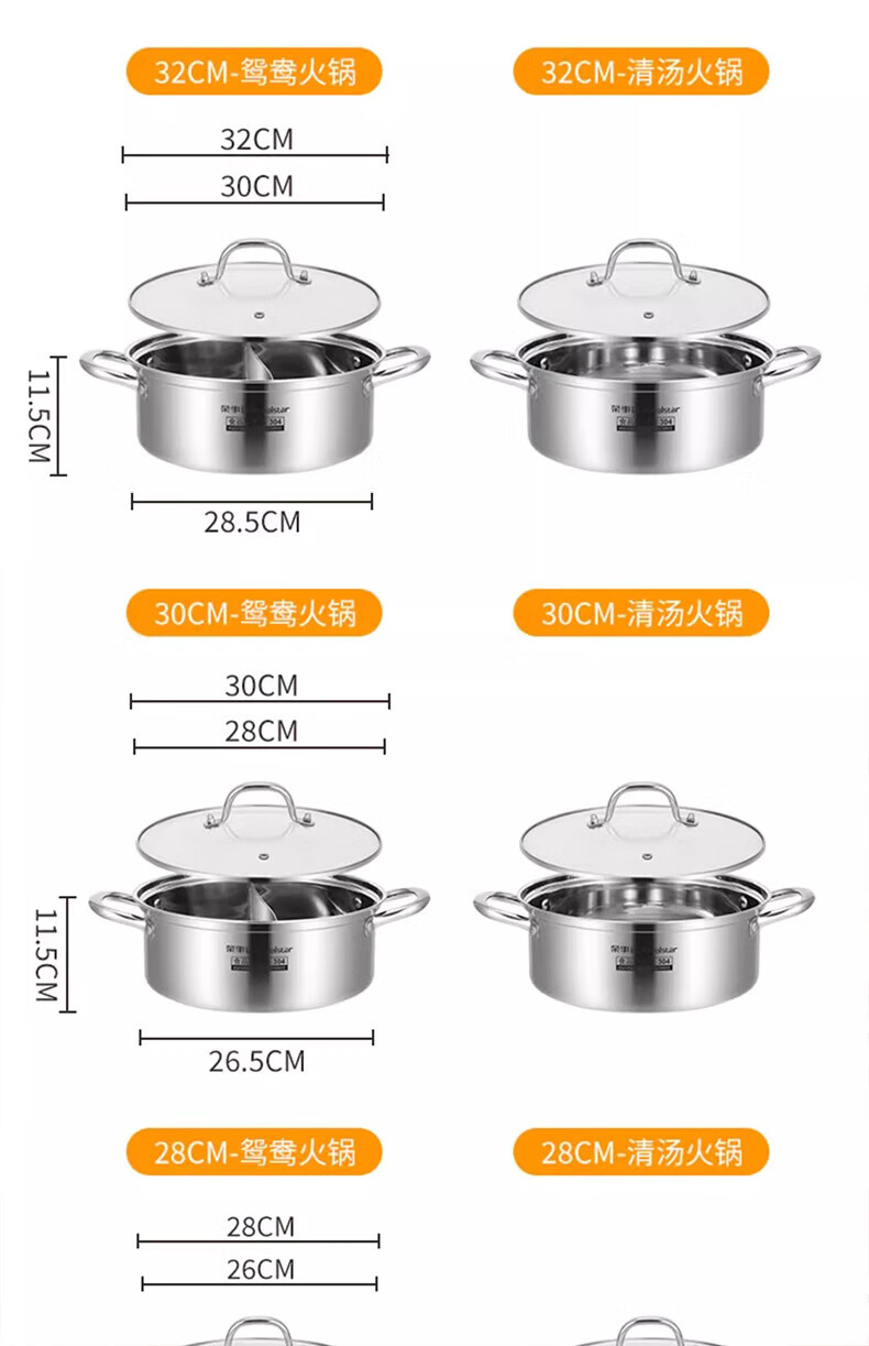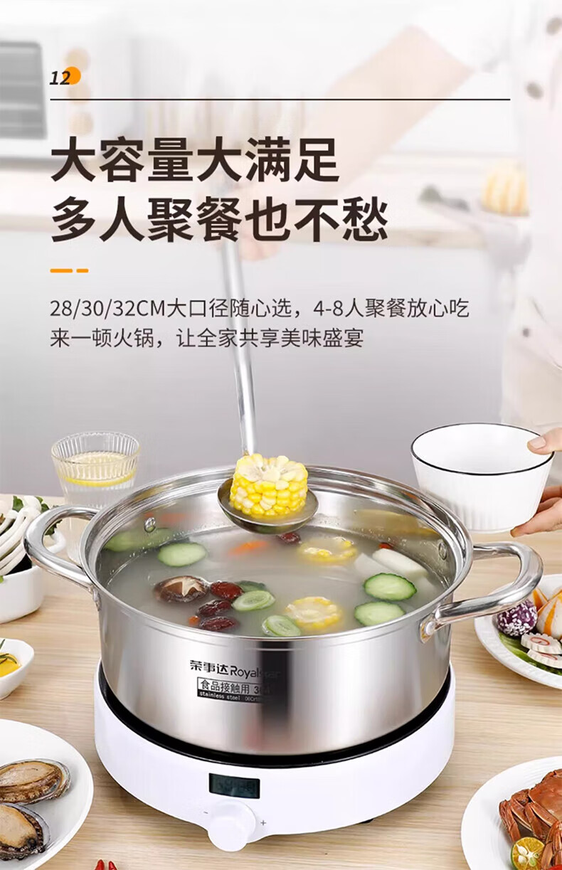 荣事达鸳鸯锅火锅锅家用电磁炉专用锅加厚304不锈钢火锅盆大容量 5-8人适用 加大加厚清汤锅 32cm