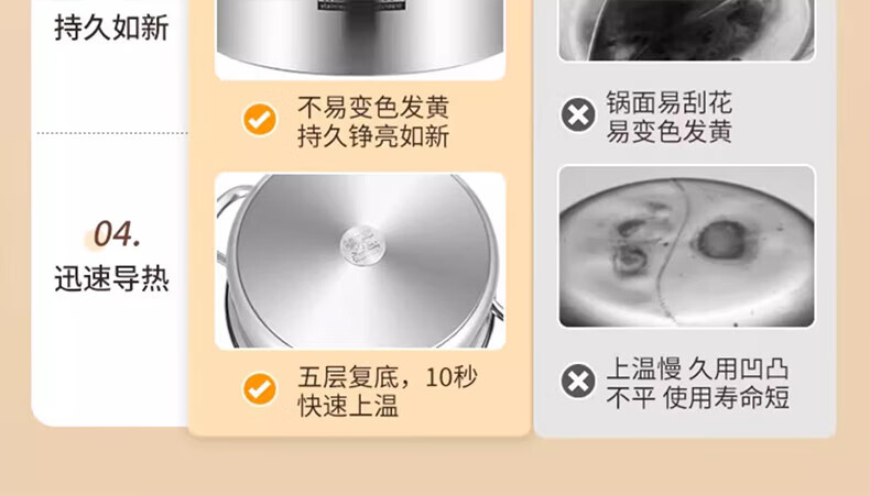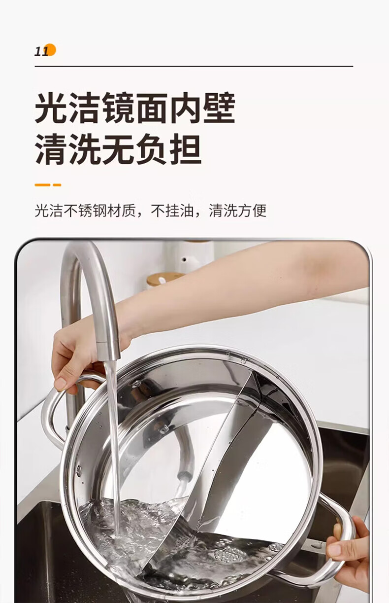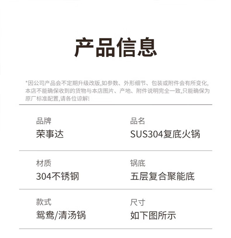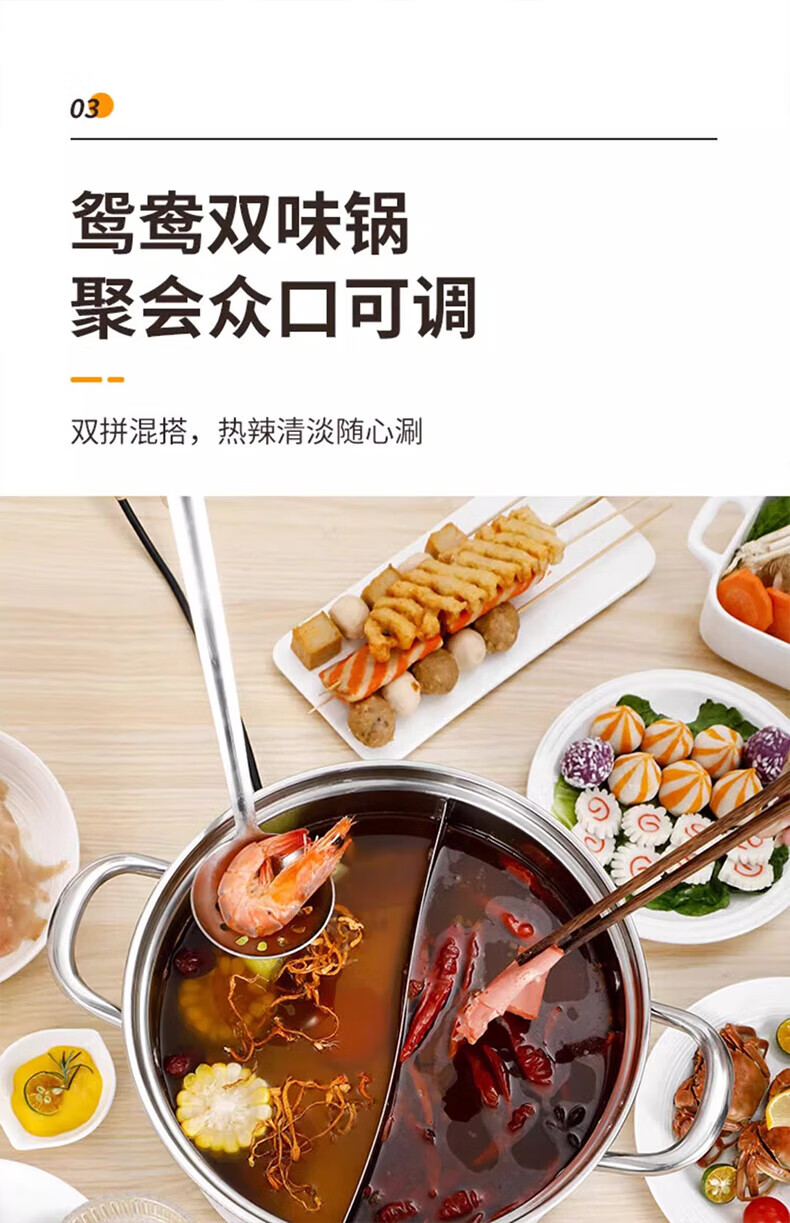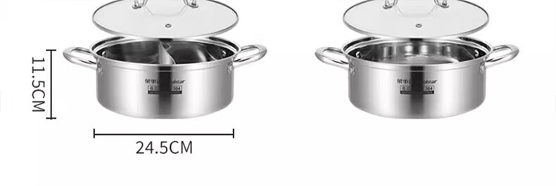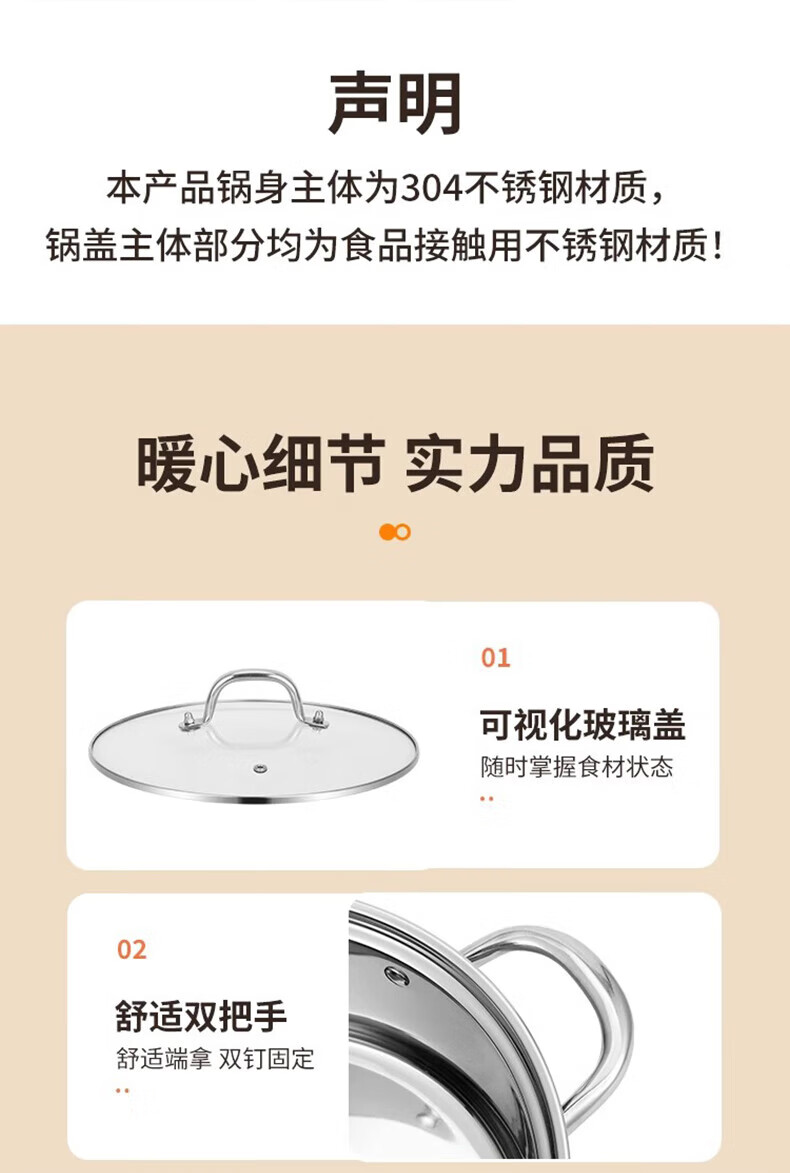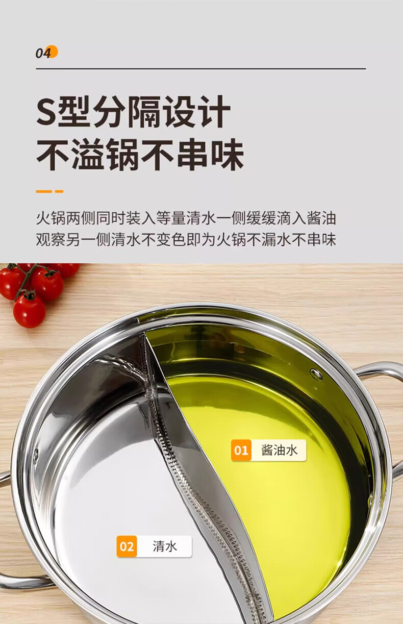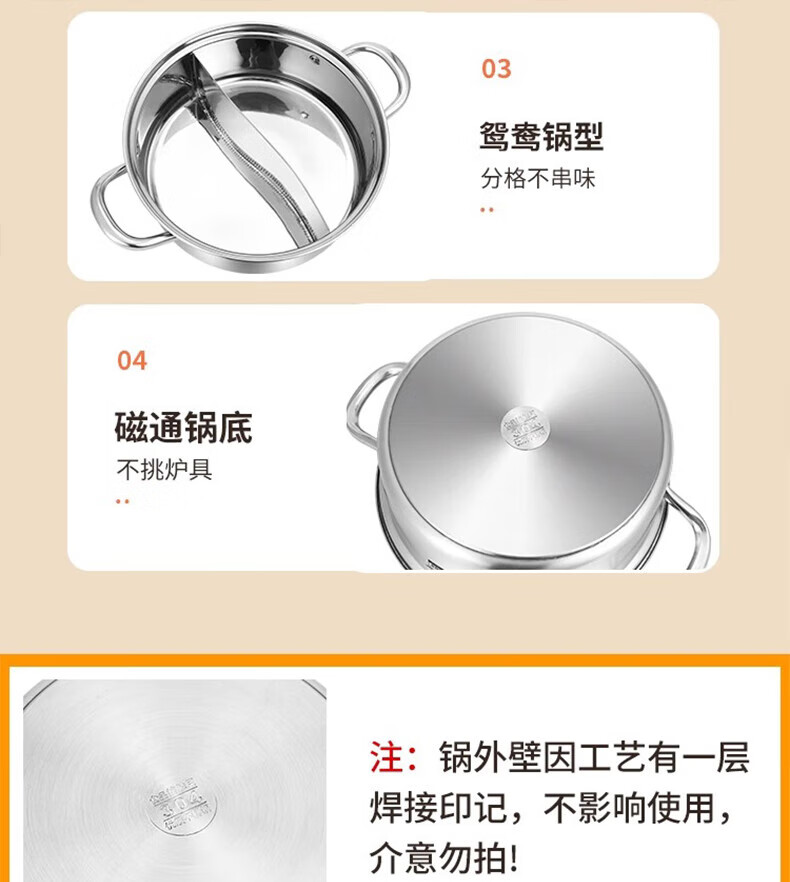 荣事达鸳鸯锅火锅锅家用电磁炉专用锅加厚304不锈钢火锅盆大容量 5-8人适用 加大加厚清汤锅 32cm