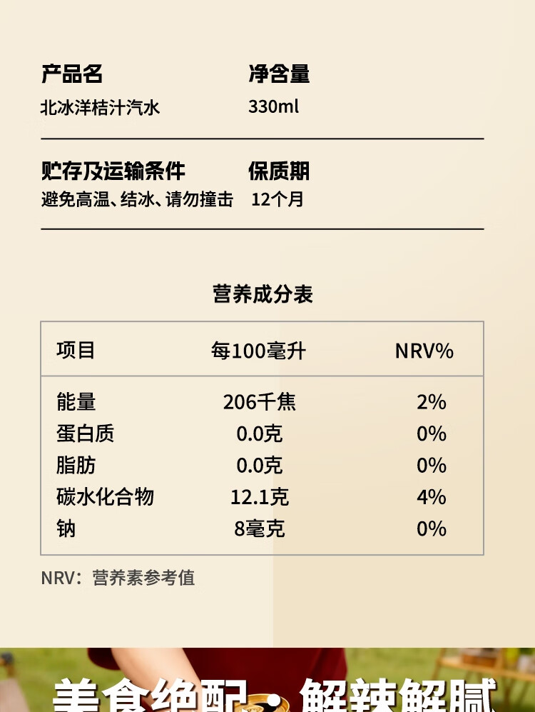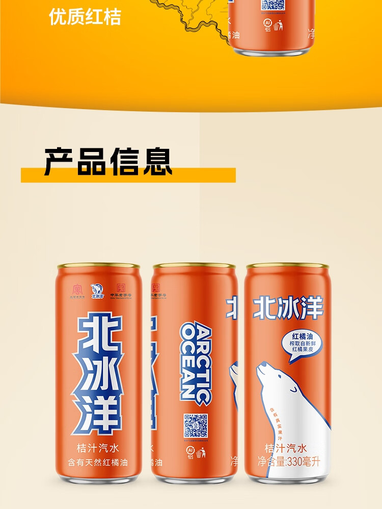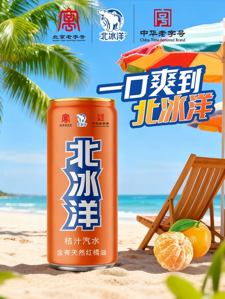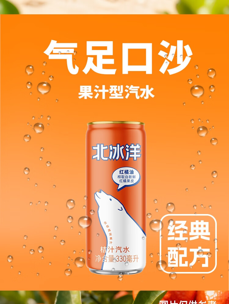 北冰洋 桔汁汽水330ml*24罐 果汁碳酸饮料整箱