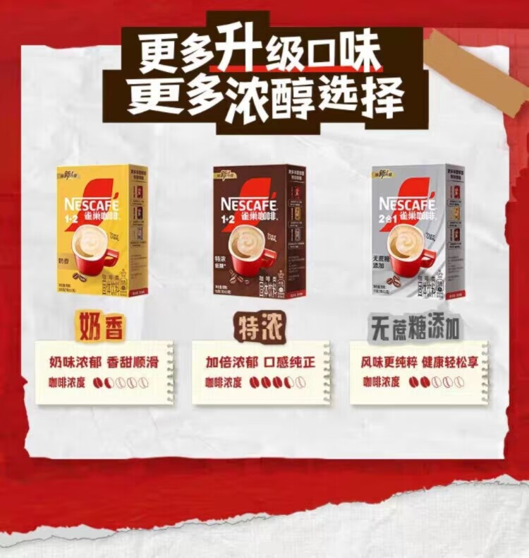 雀巢咖啡1+2原味双豆拼配条装即溶咖啡7条105g