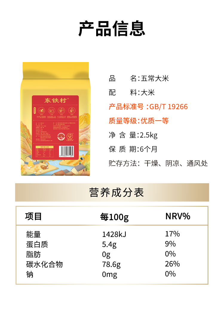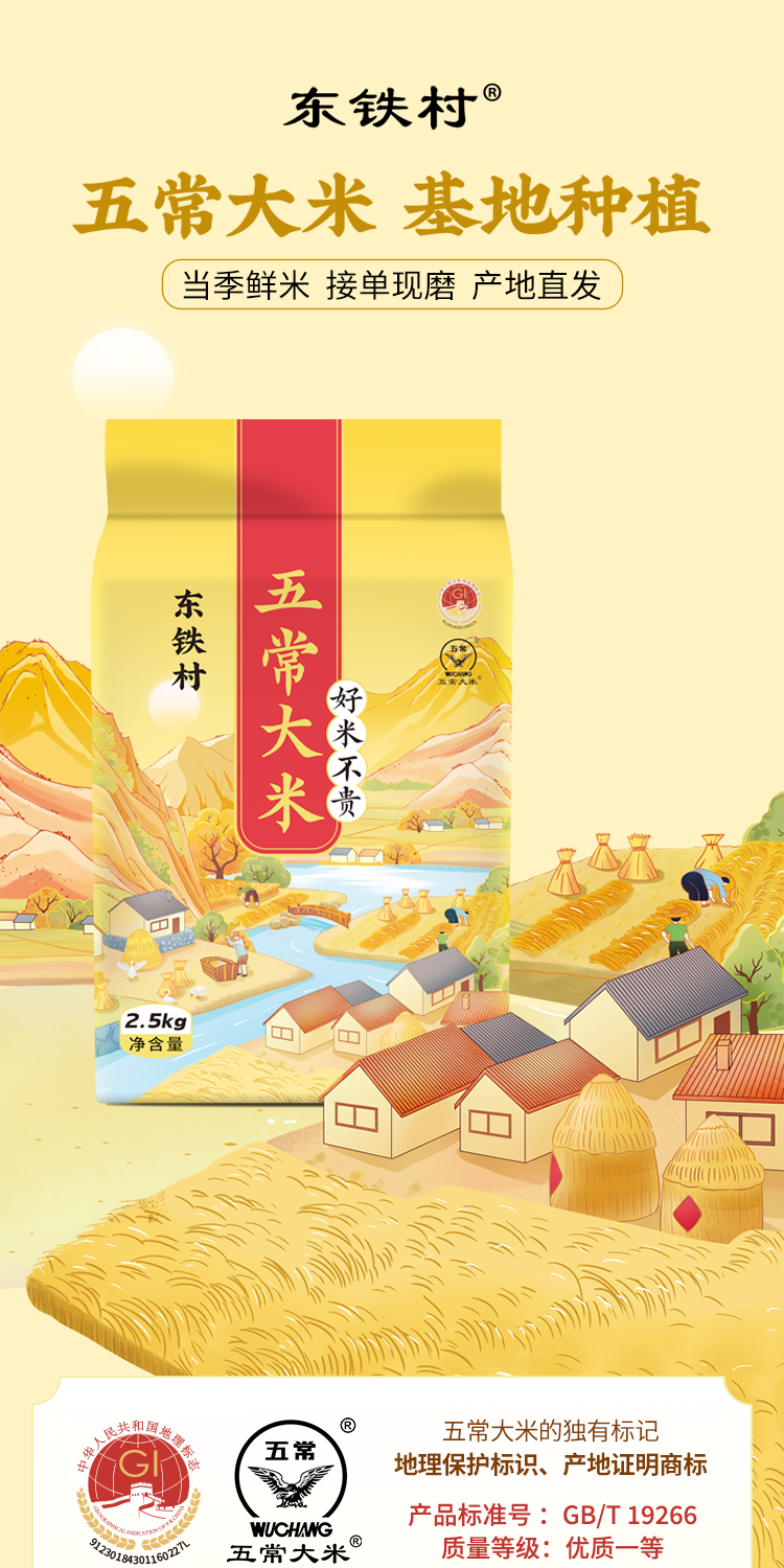东铁村五常大米东北大米产地现磨现发新鲜大米执行标准GB/T19266 黄色山水2.5kg*1