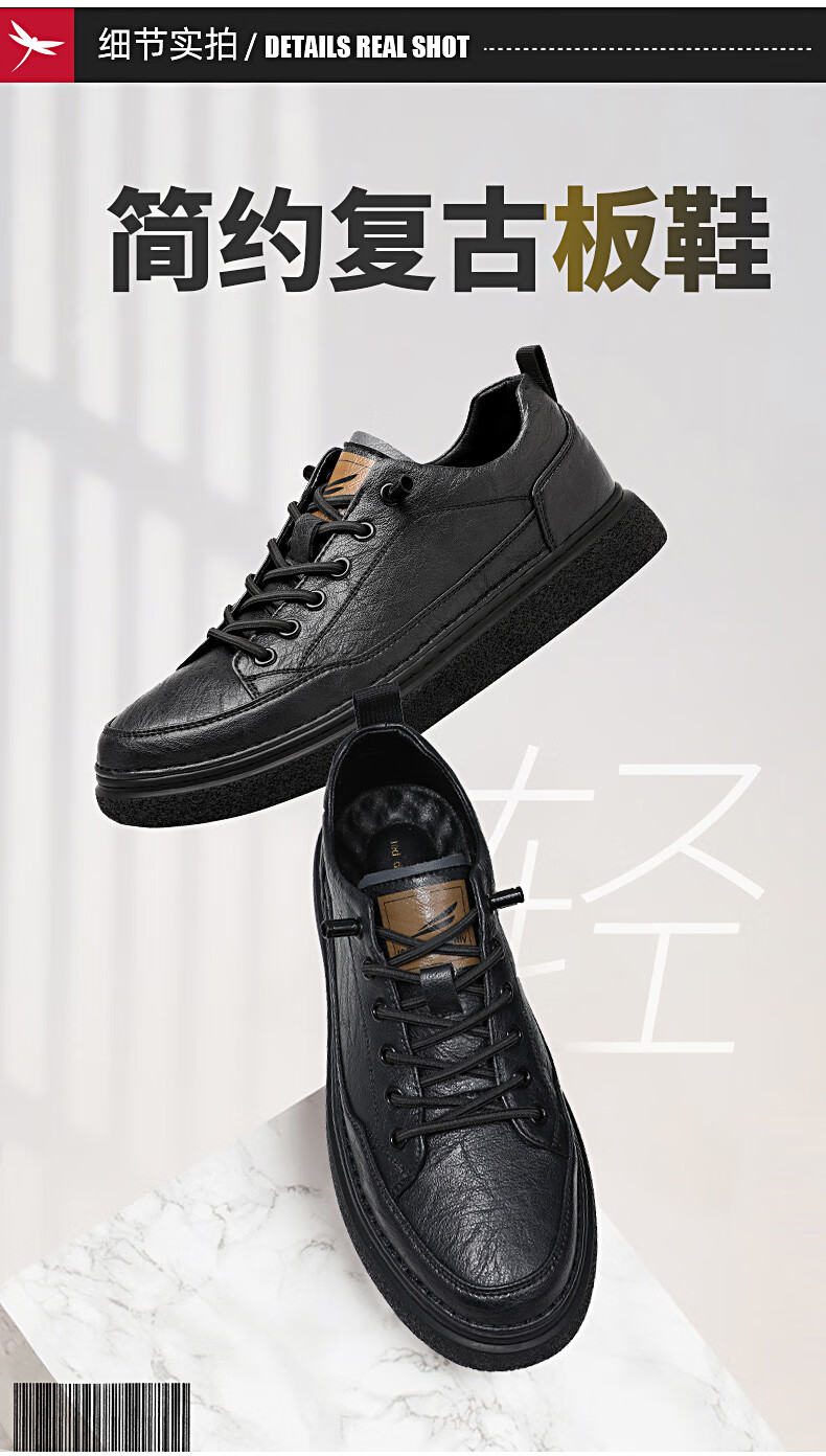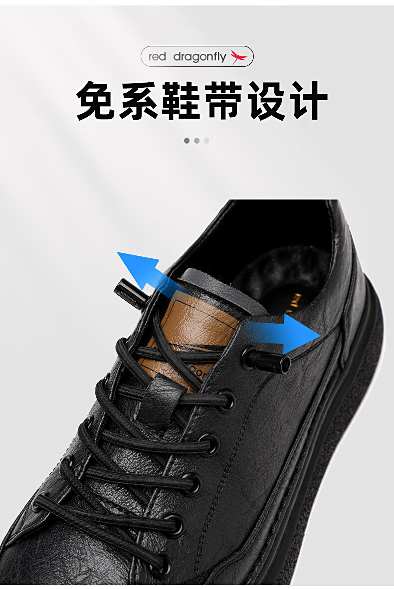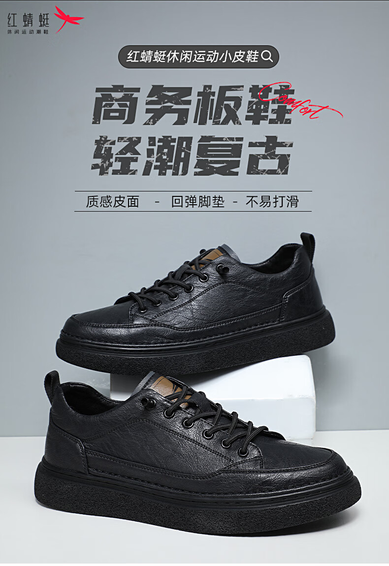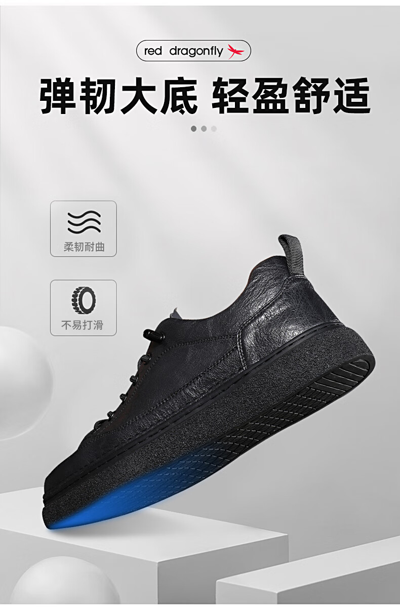 红蜻蜓男鞋经典款平底休闲皮鞋子男士板鞋秋冬运动小黑鞋男 C0TT00171