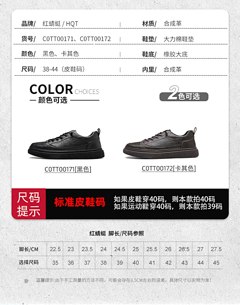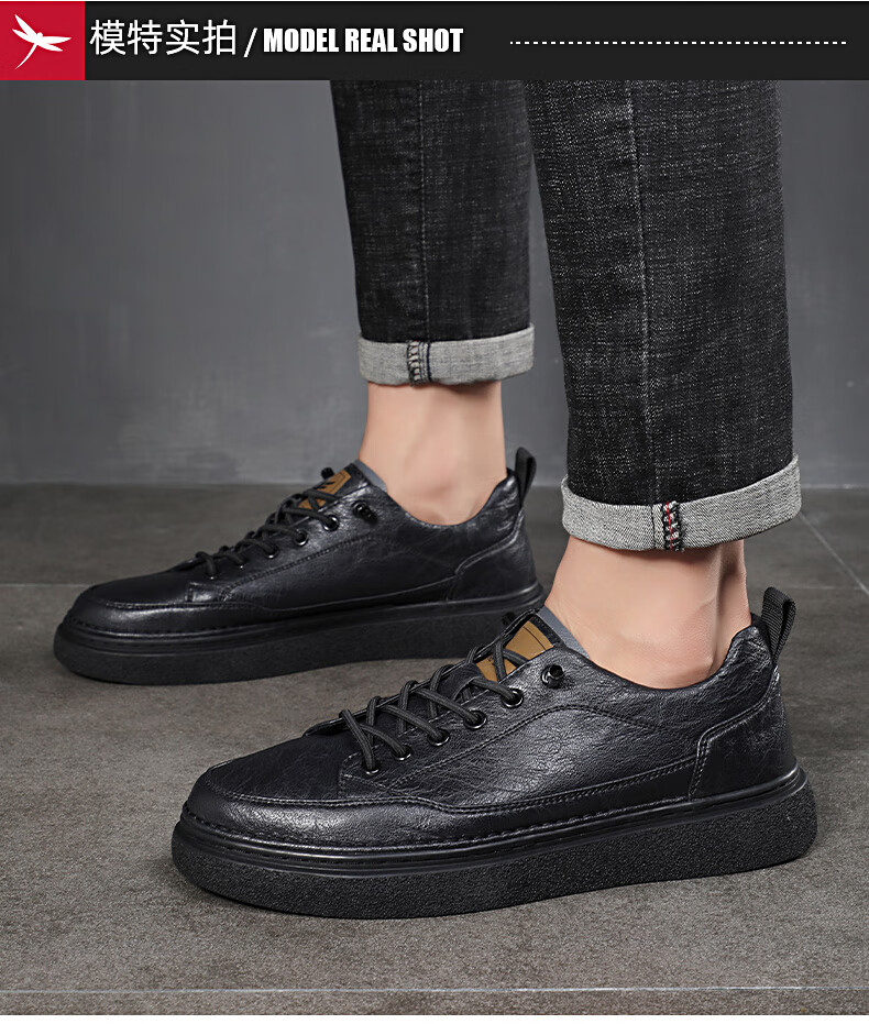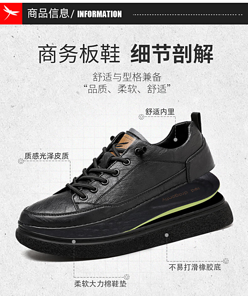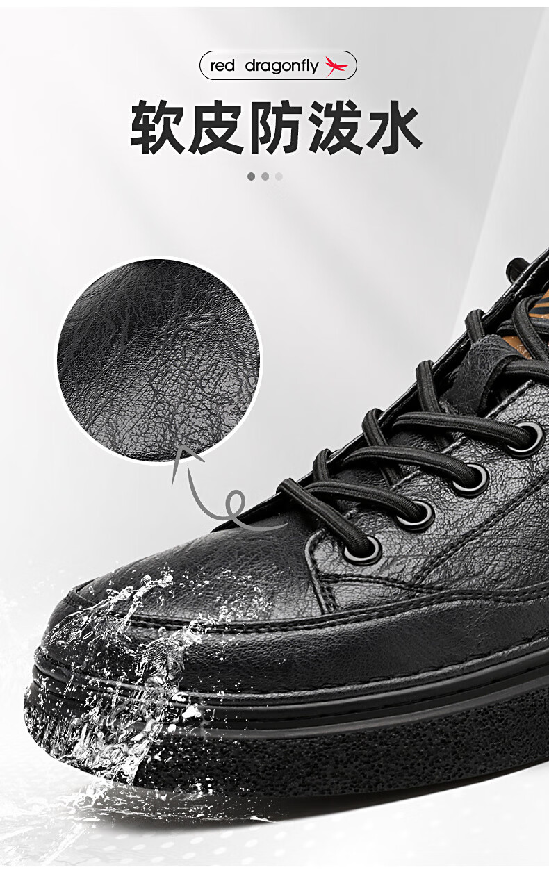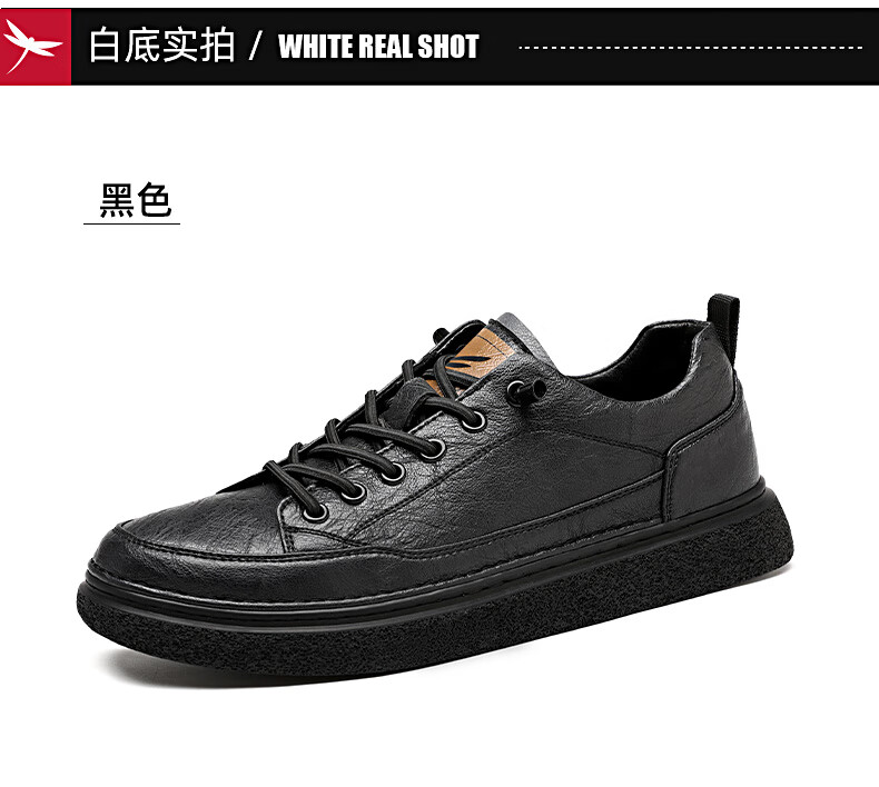 红蜻蜓男鞋经典款平底休闲皮鞋子男士板鞋秋冬运动小黑鞋男 C0TT00171