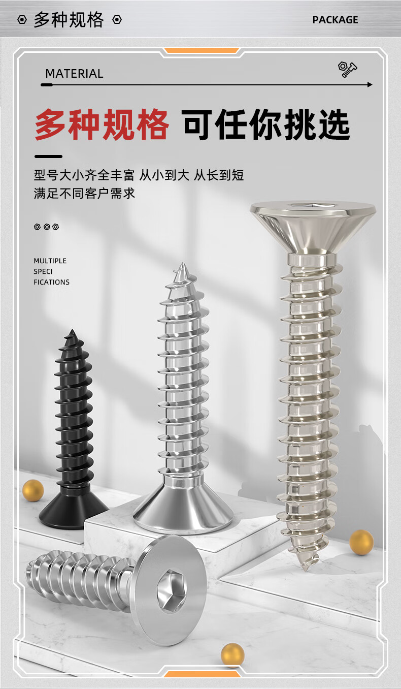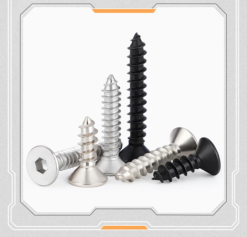 天卓五金304不锈钢8.8级黑色镀镍平头内六角自攻螺丝沉头木螺丝钉M3M4M5M6 ---以下为【304不锈钢】---