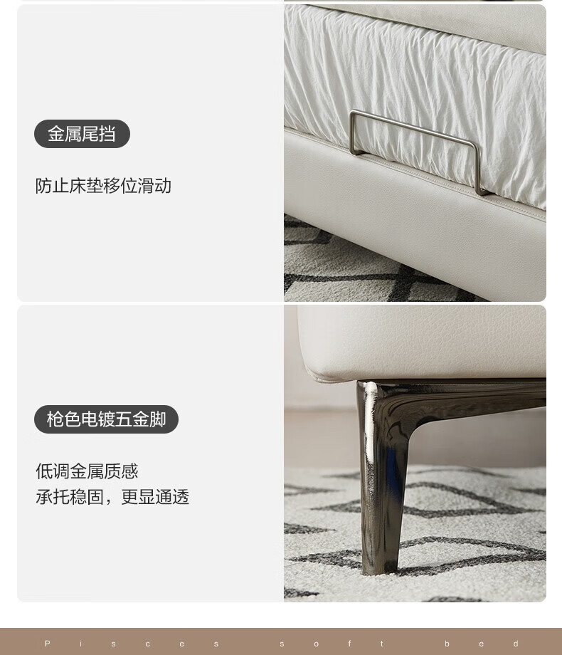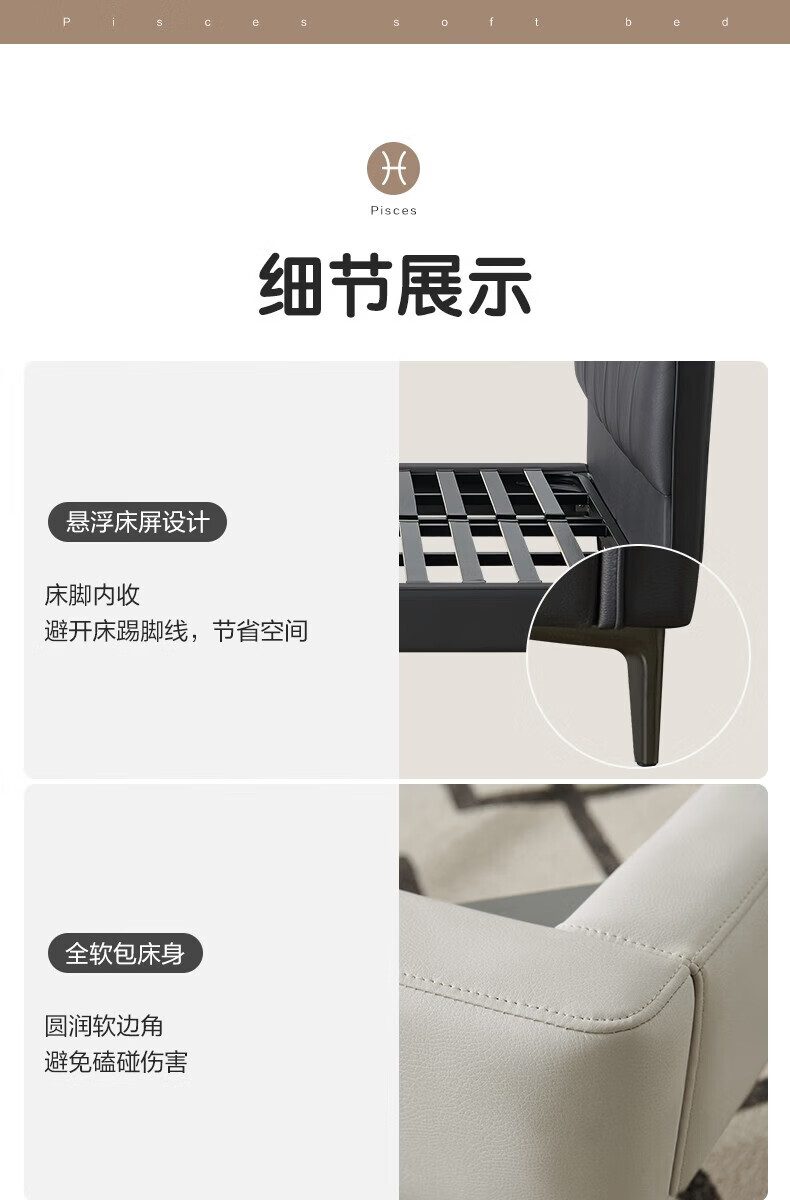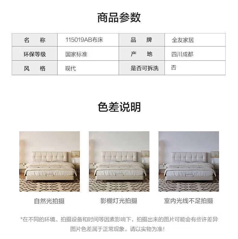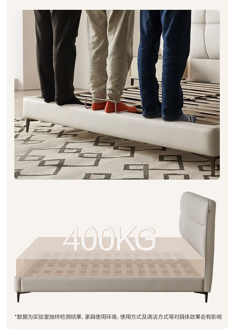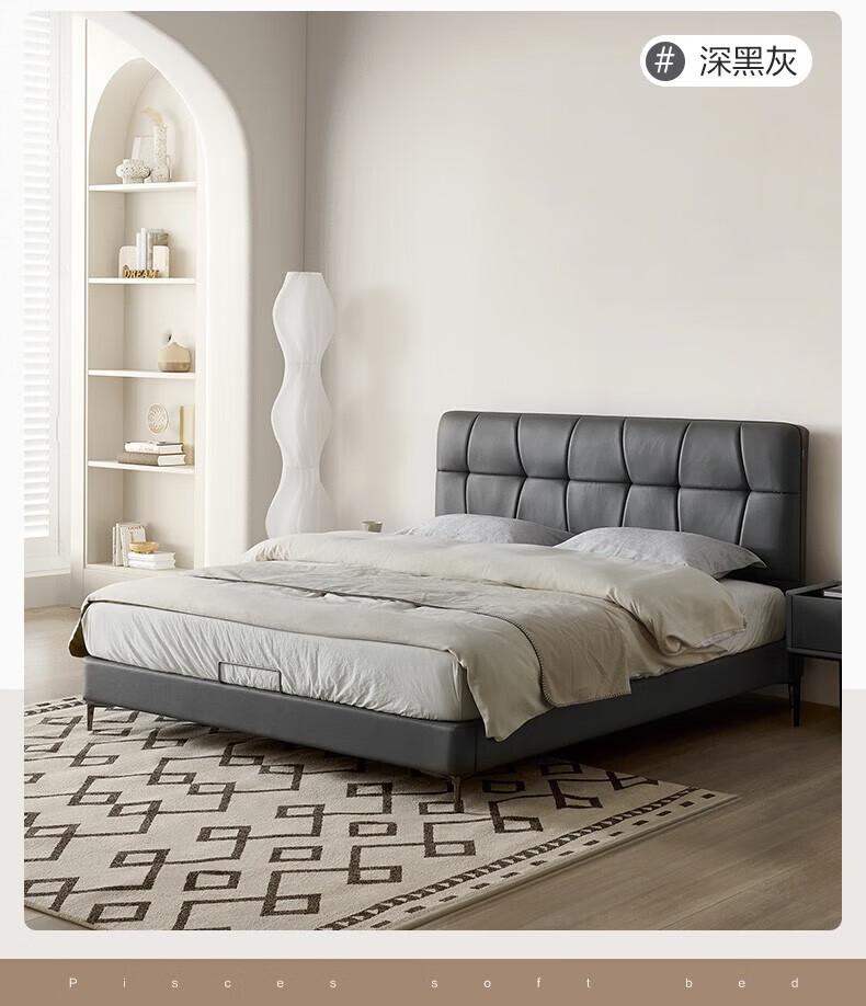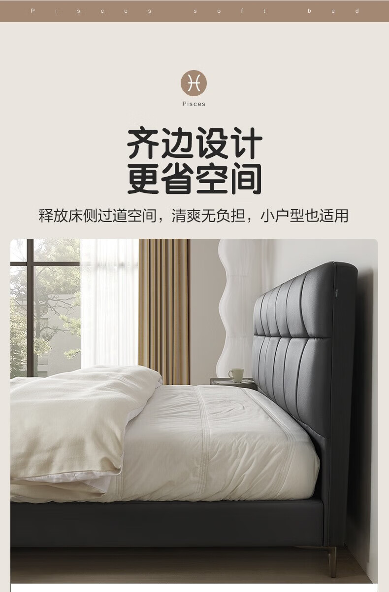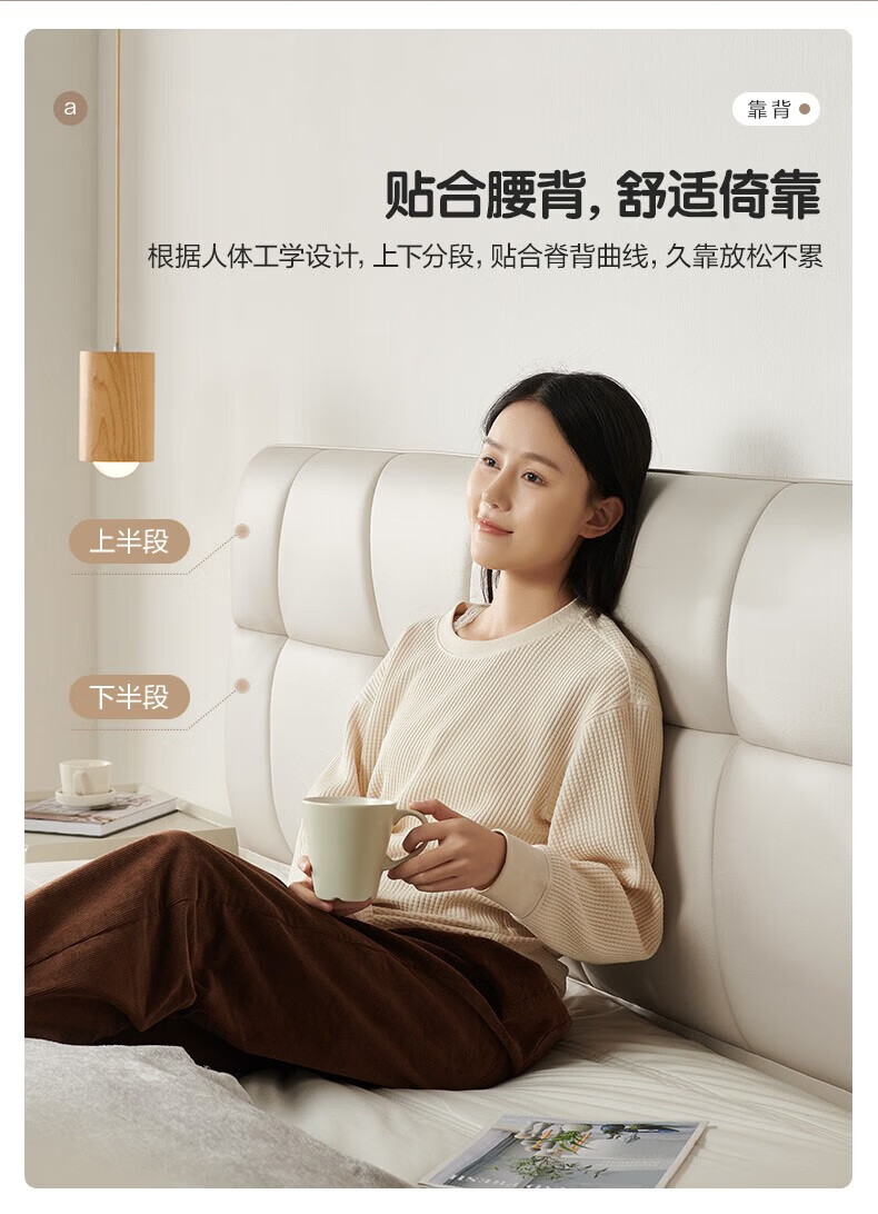 全友家居现代简约茉伊真皮床轻奢高级感2026年新款头层牛皮软包靠背床 【牛皮 | 米白 | 平移+上翻开合电动储物款】 1.8米x2米 床+床头柜*1