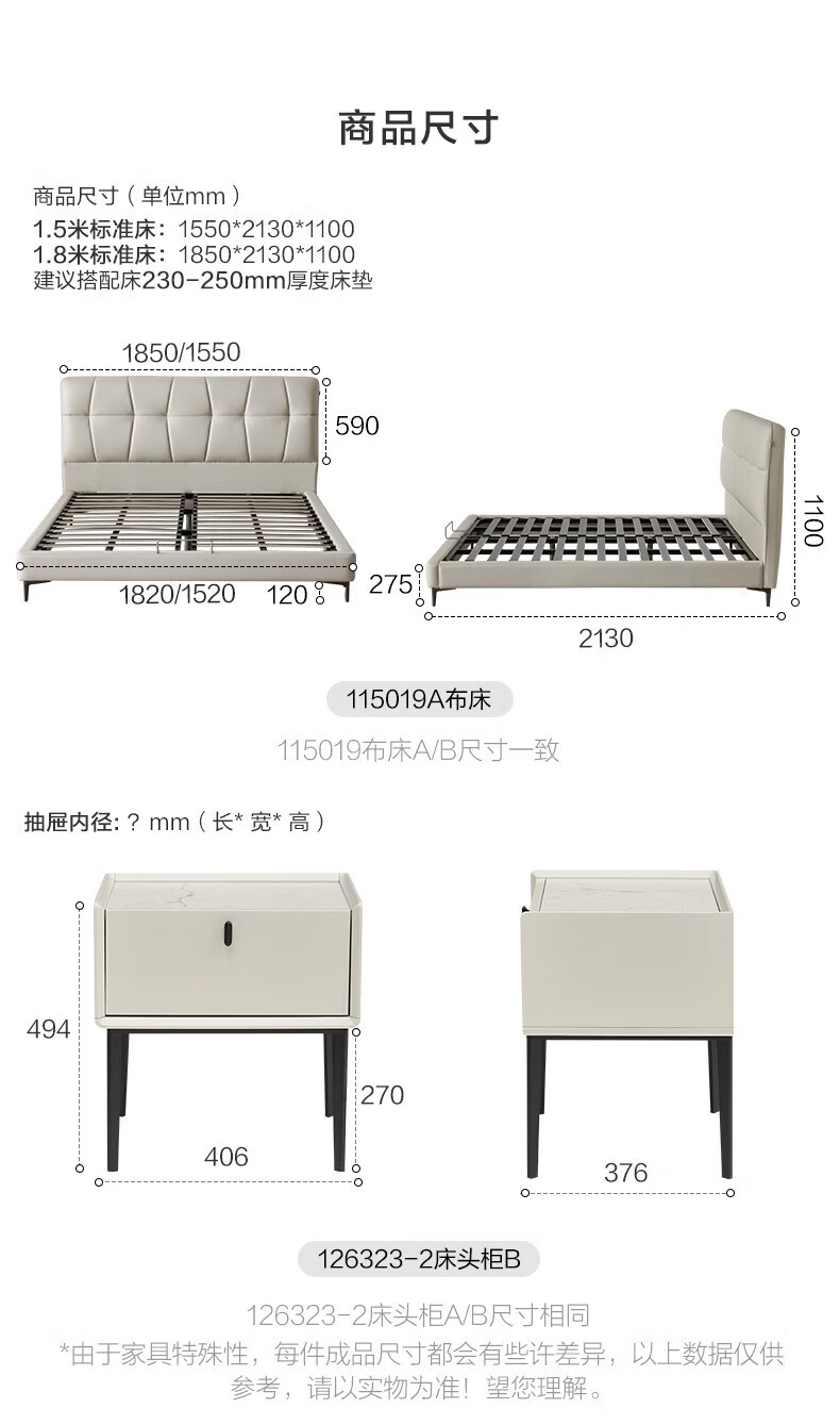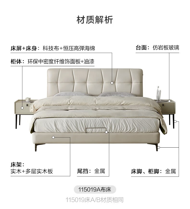 全友家居线下门店同款布朗尼皮艺床软包床头靠背主卧大床床头柜U30001 【松露黑 | 高脚款】单床 2x2.2米