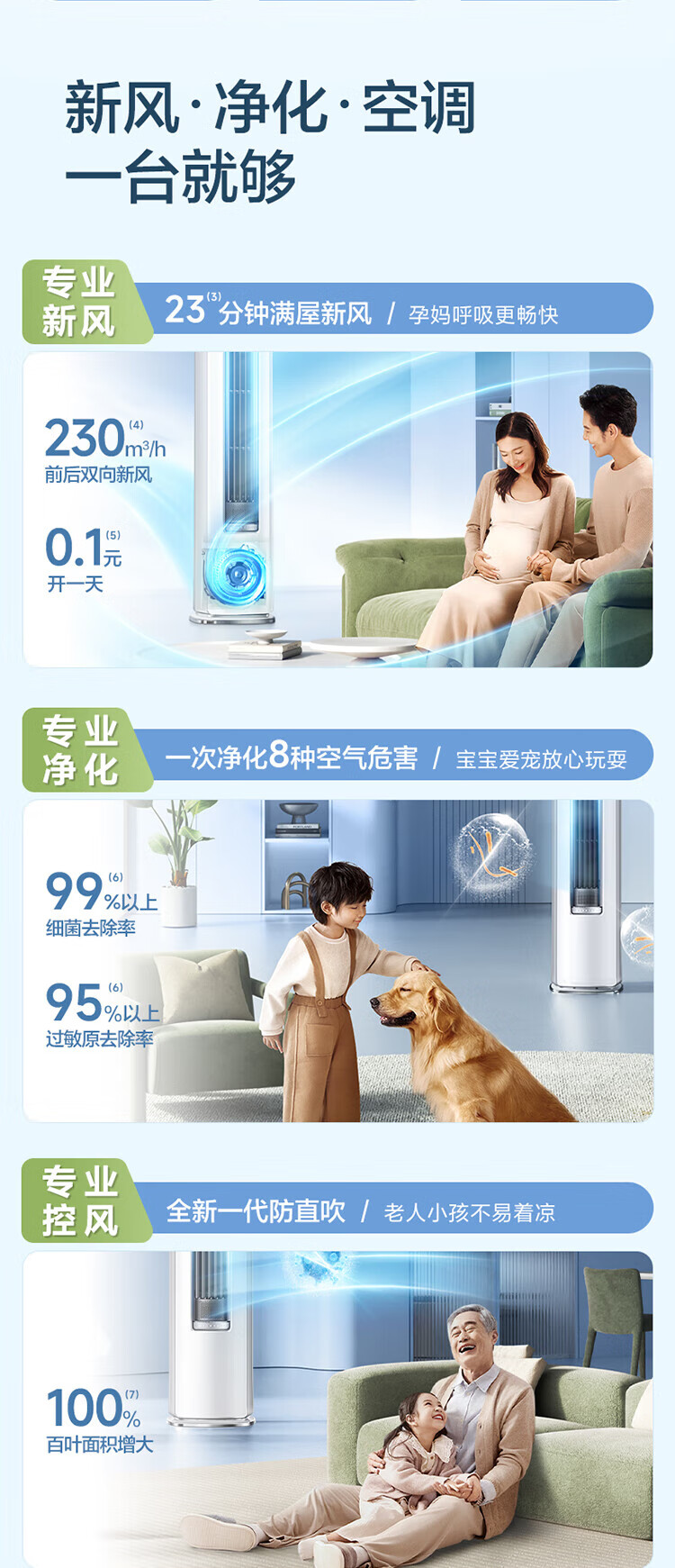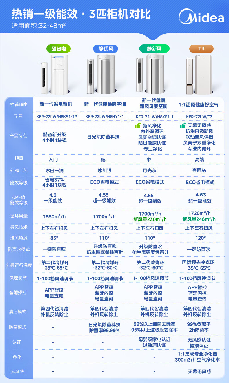 美的(Midea)空调柜机3匹 静新风 空调立式 新风空调健康风 客厅空调补贴20%以旧换新 新一级能效节能低噪 静新风 柜机 3匹 一级能效静新风-健康净化