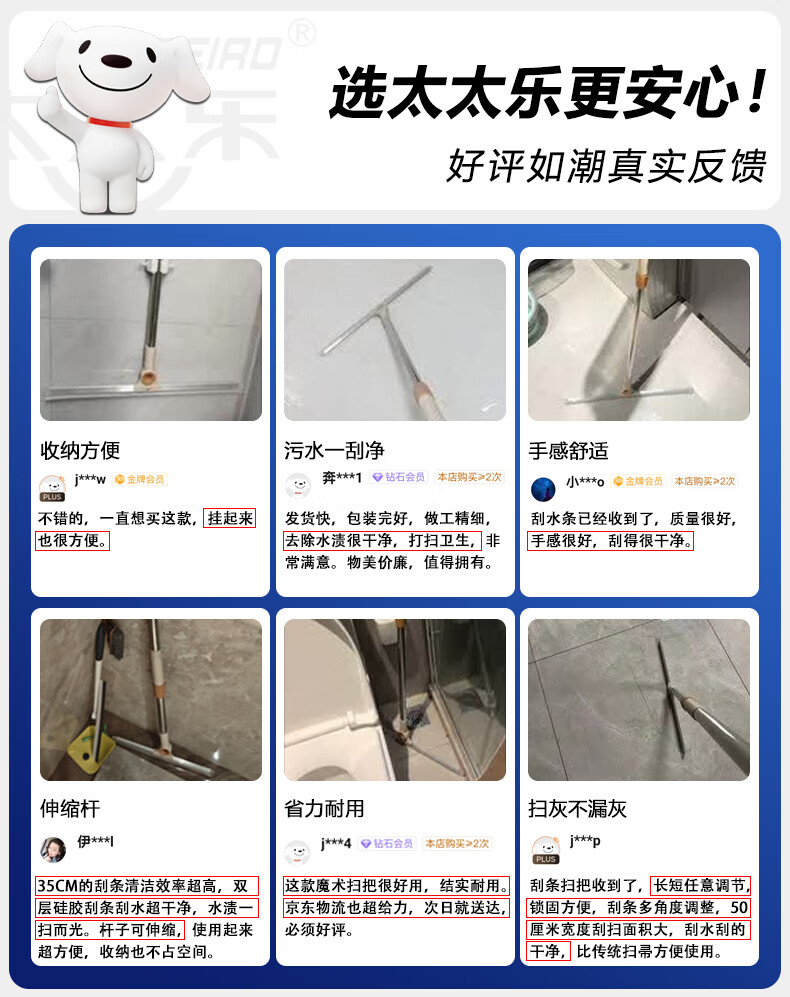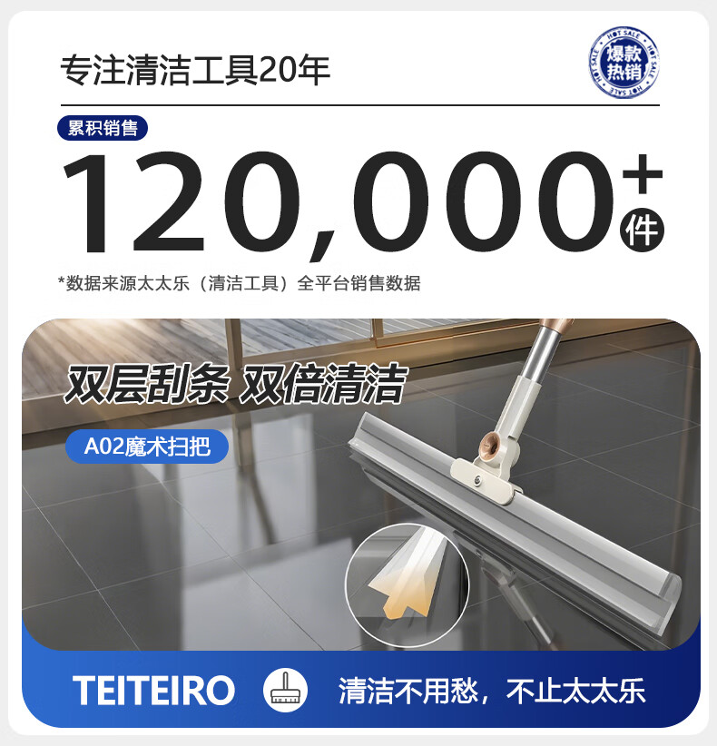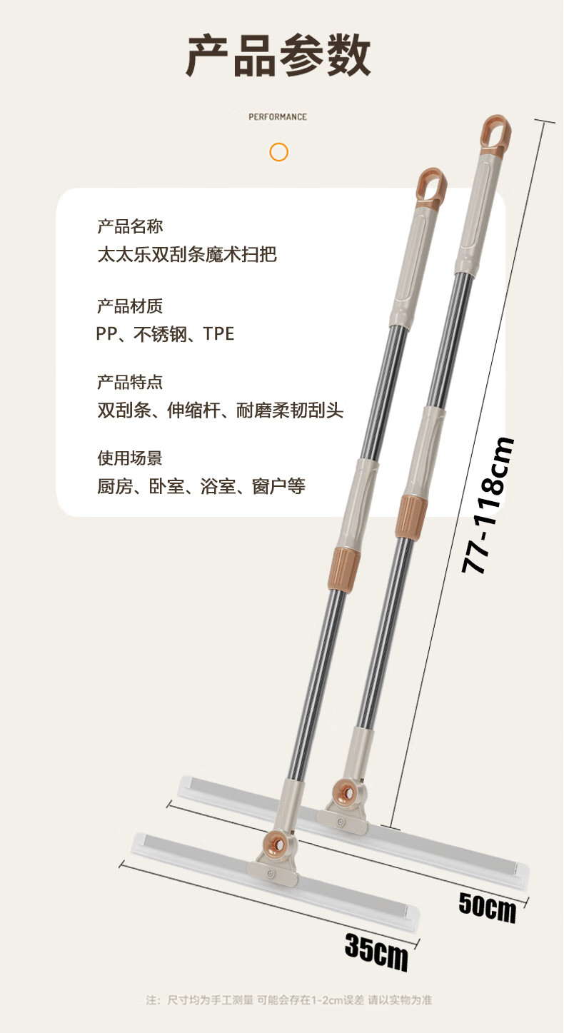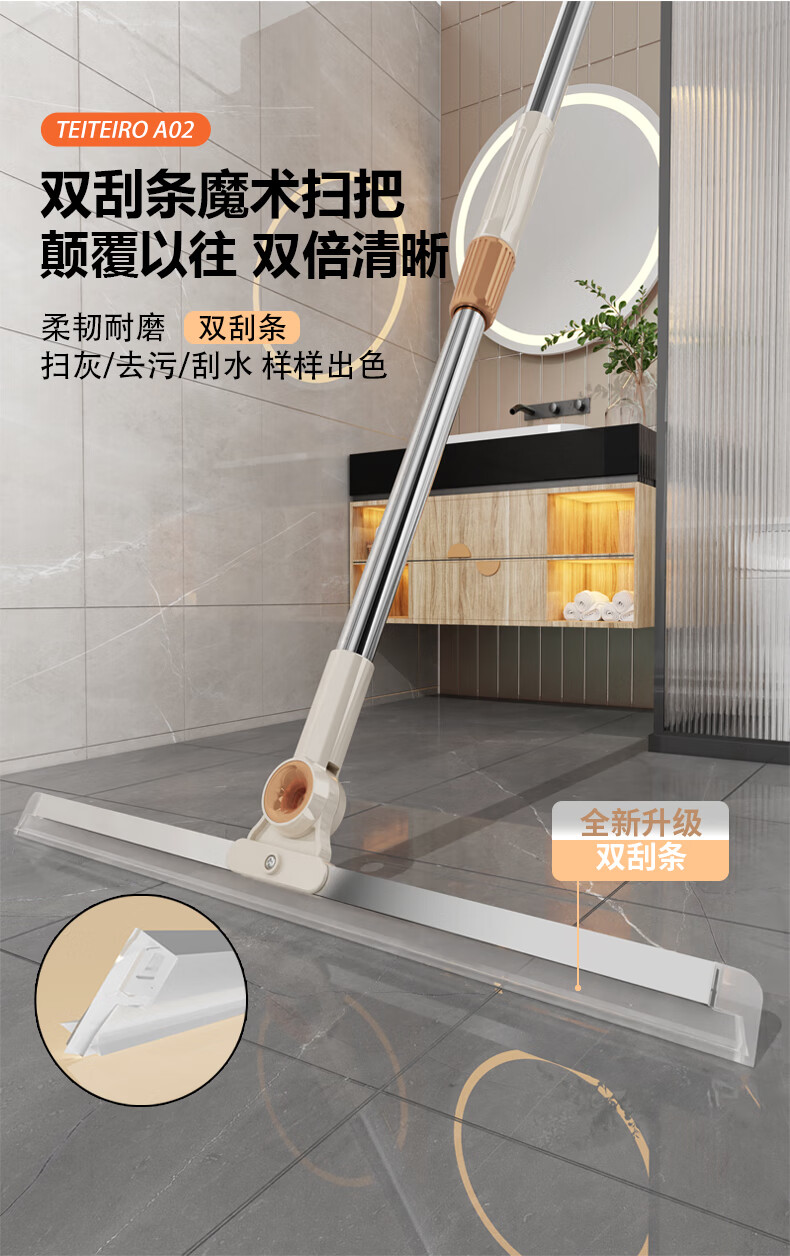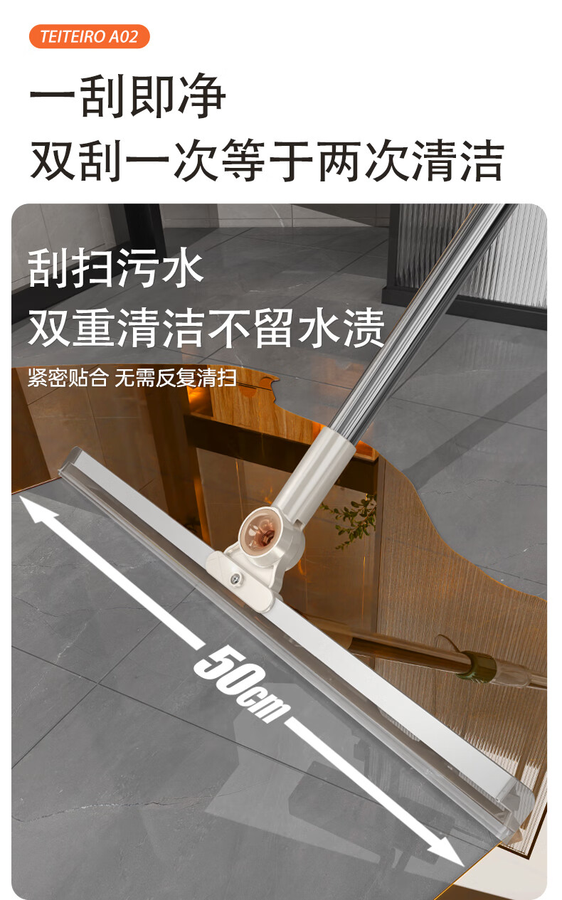 太太乐魔术扫把双刮条刮水拖地两用双层硅胶家用卫生间扫水神刮水器地刮 50cm魔术扫把 1把 共2刮条+套布