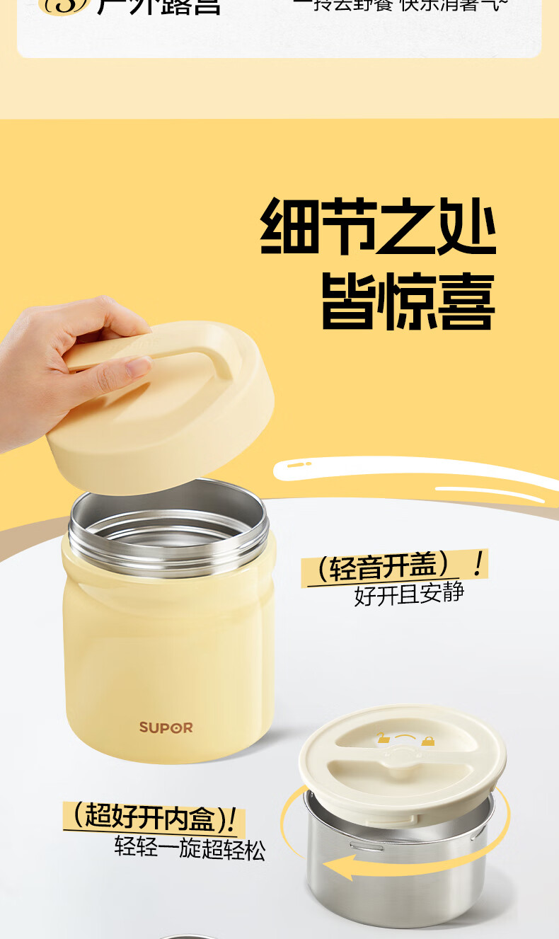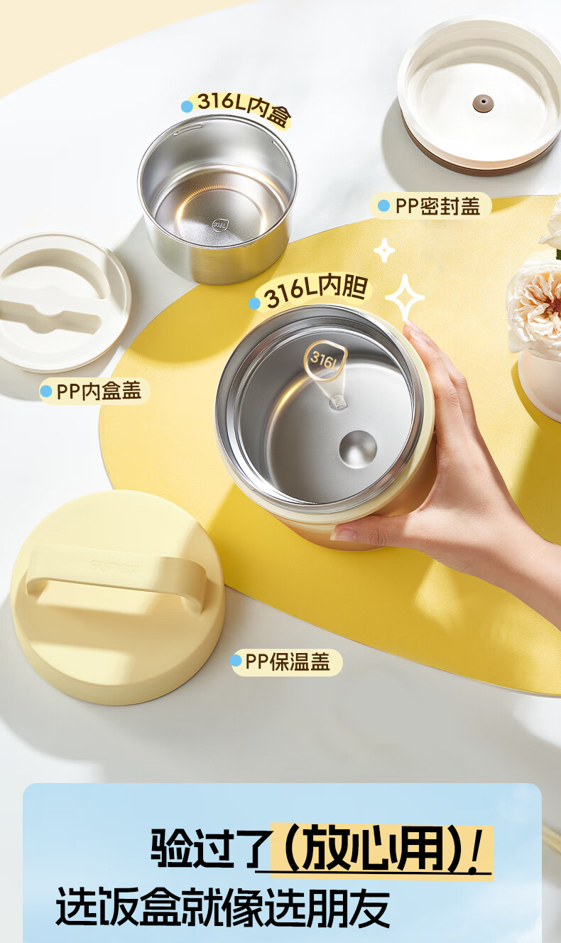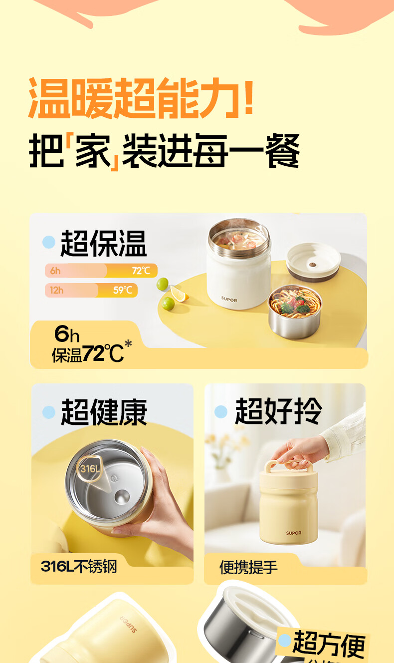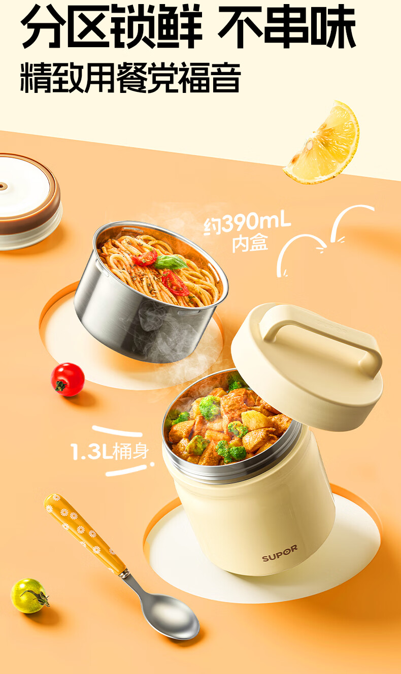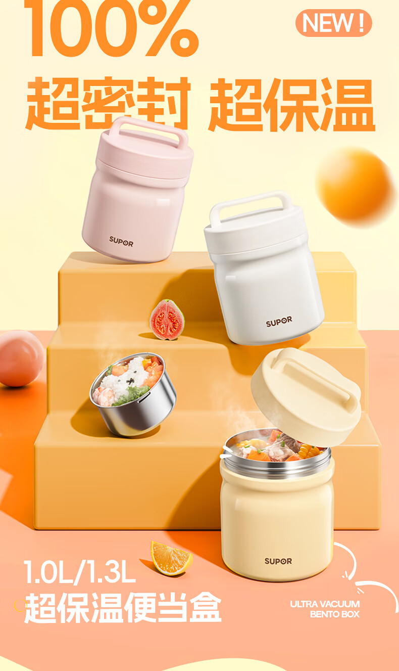 苏泊尔学生保温饭盒儿童便当盒316L餐盒上班族带饭大容量保温桶