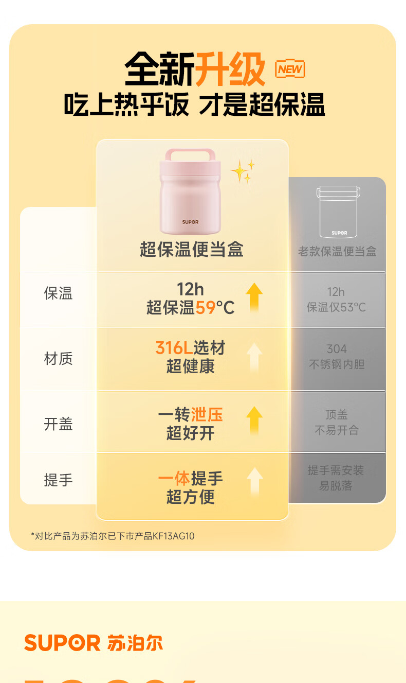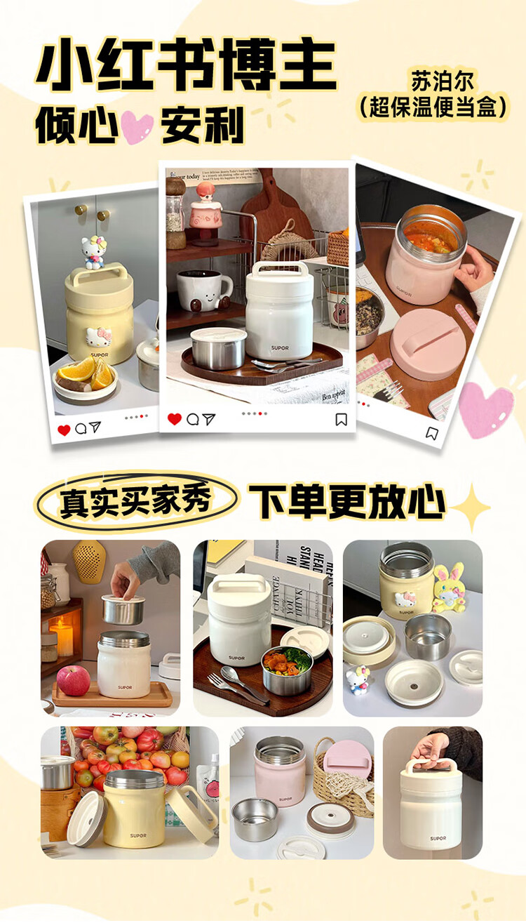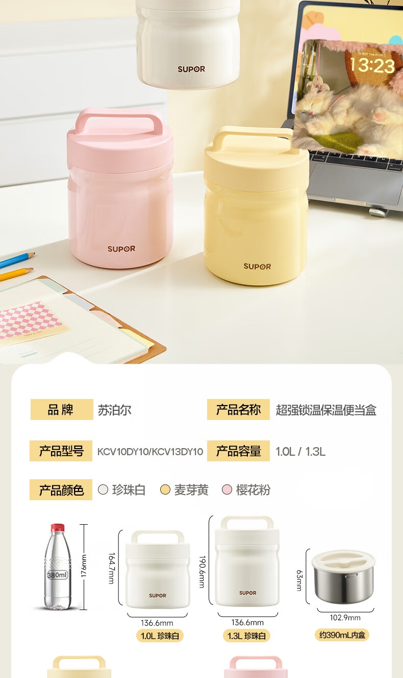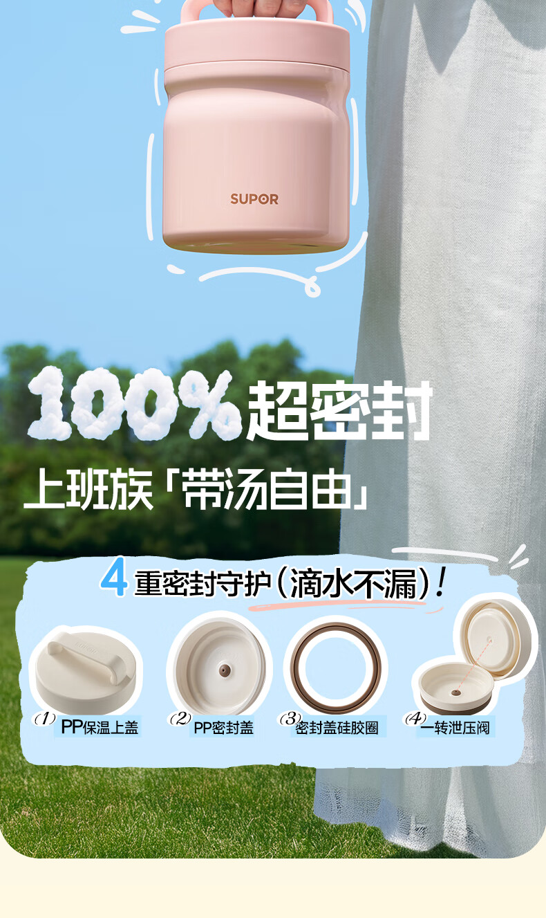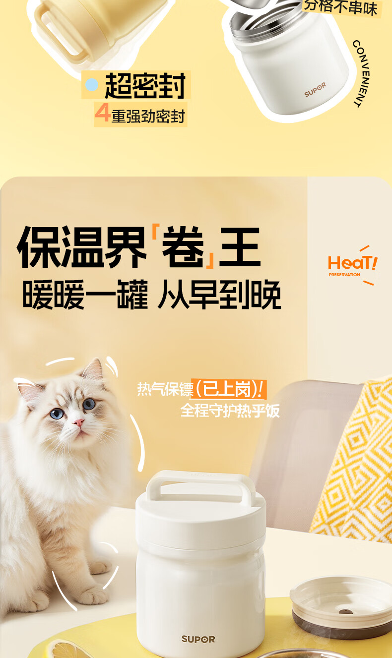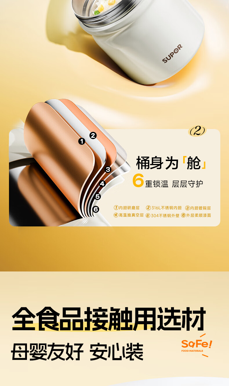 苏泊尔学生保温饭盒儿童便当盒316L餐盒上班族带饭大容量保温桶