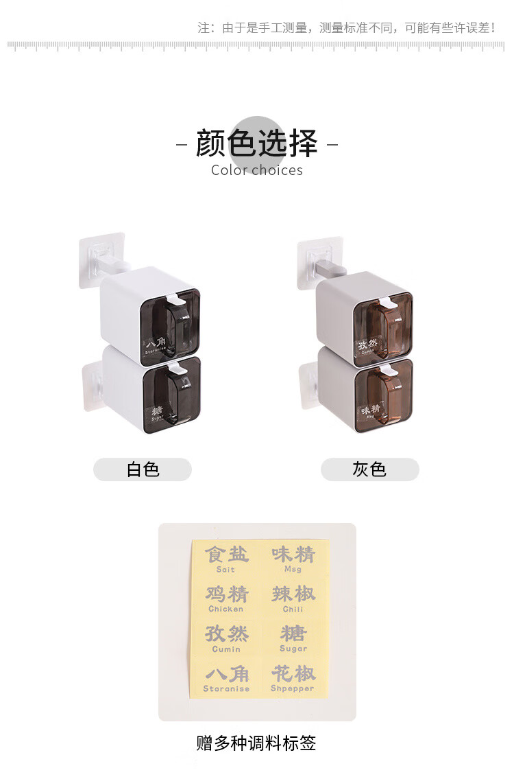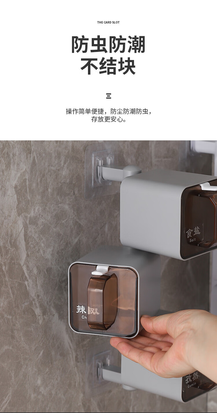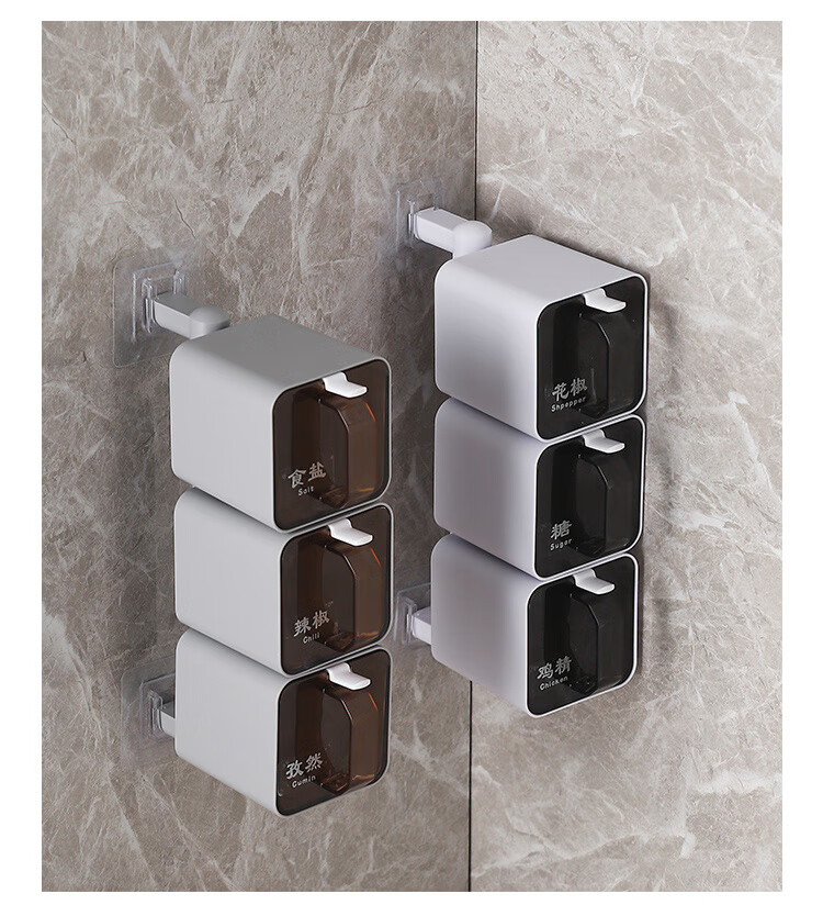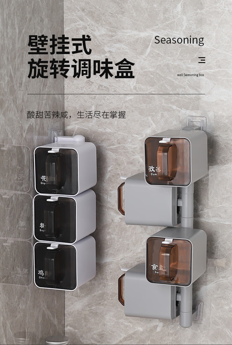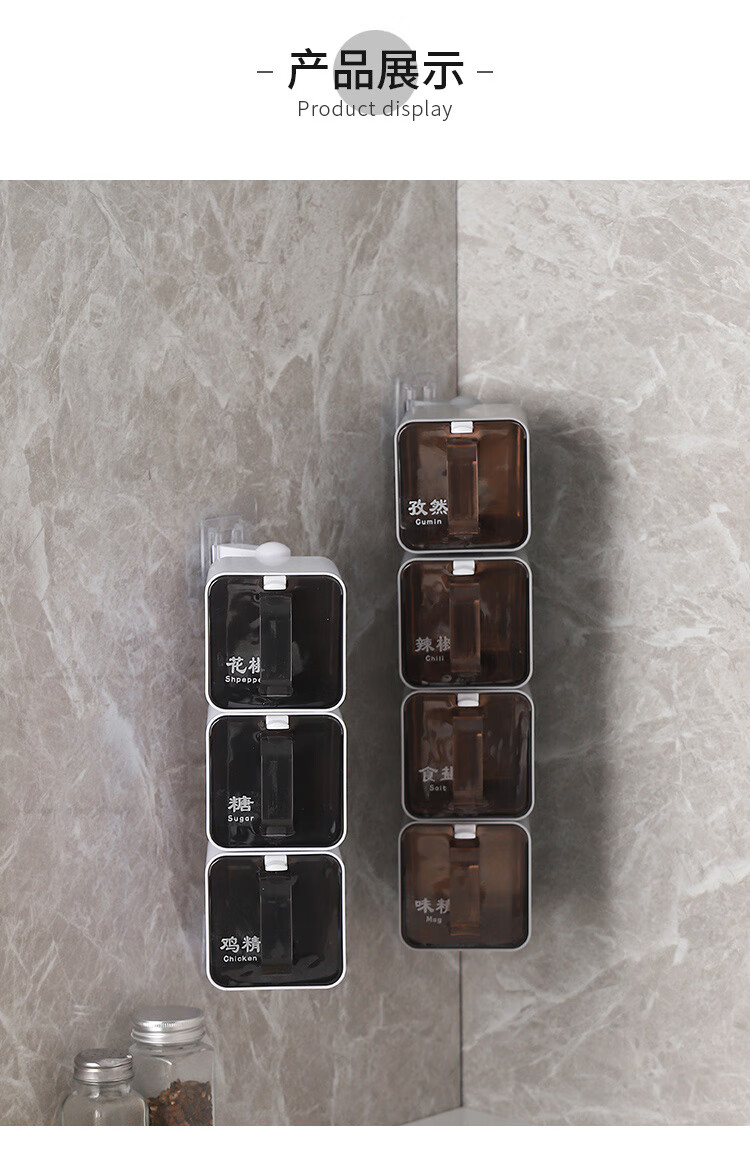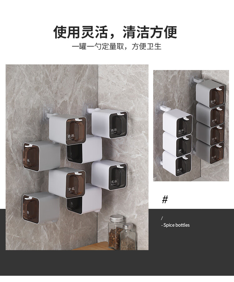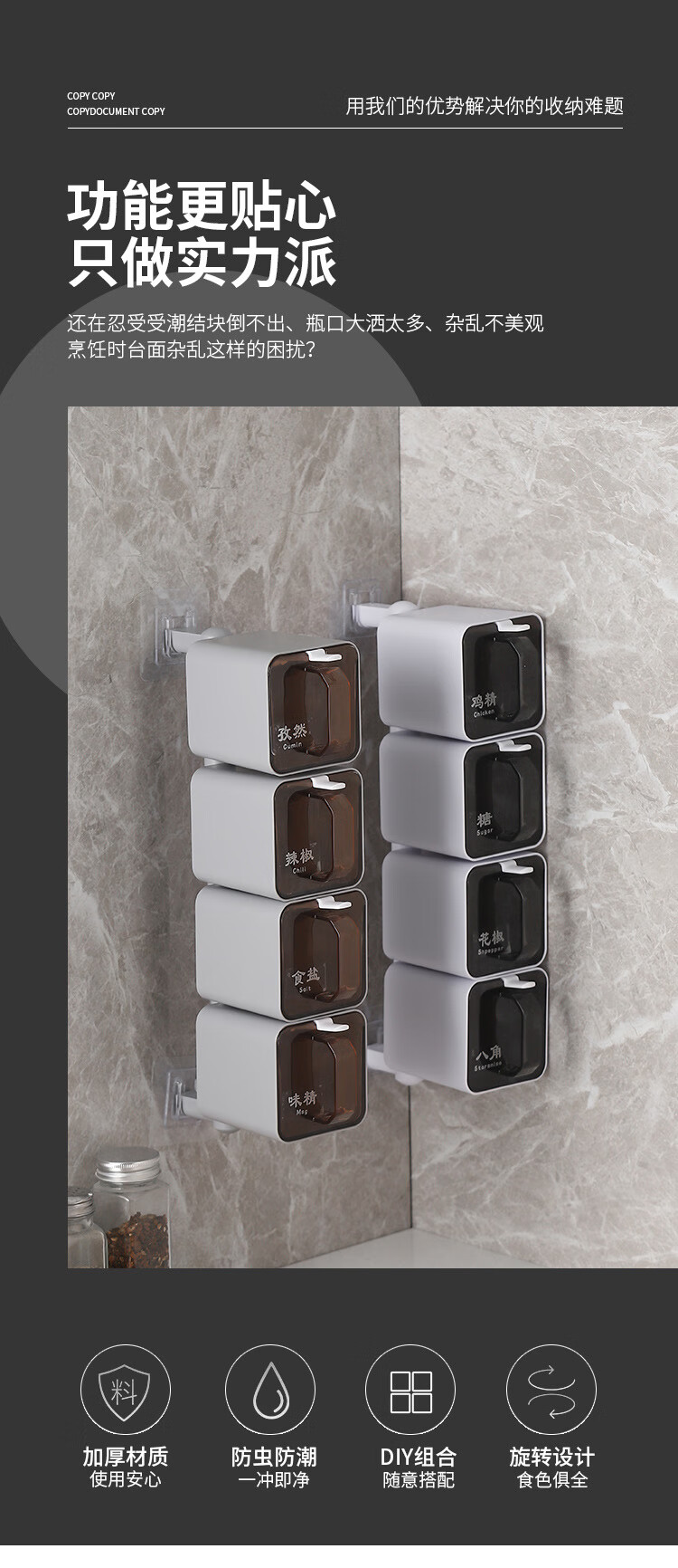 创建厨房旋转调料盒组合套装壁挂式调料瓶收纳盒置物架免打孔 (旋转式)灰色4格