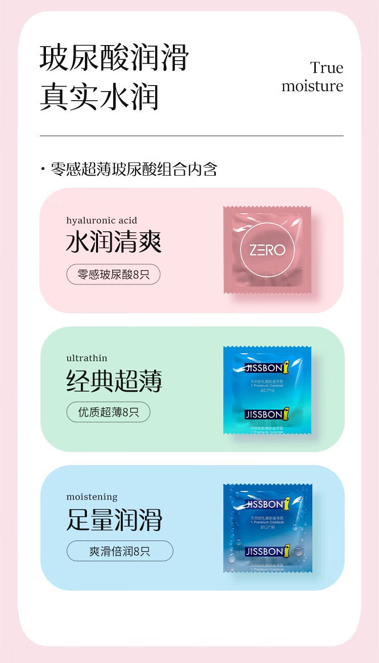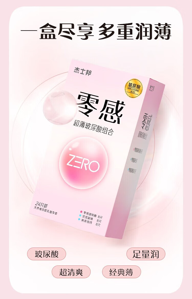 杰士邦零感超薄玻尿酸组合24个润滑避孕套超薄润滑超薄玻尿酸组合装 零感超薄玻尿酸【12只】1盒装