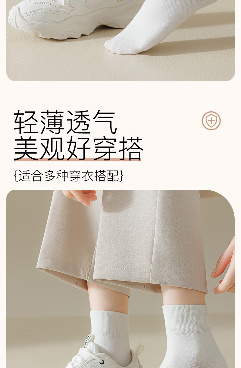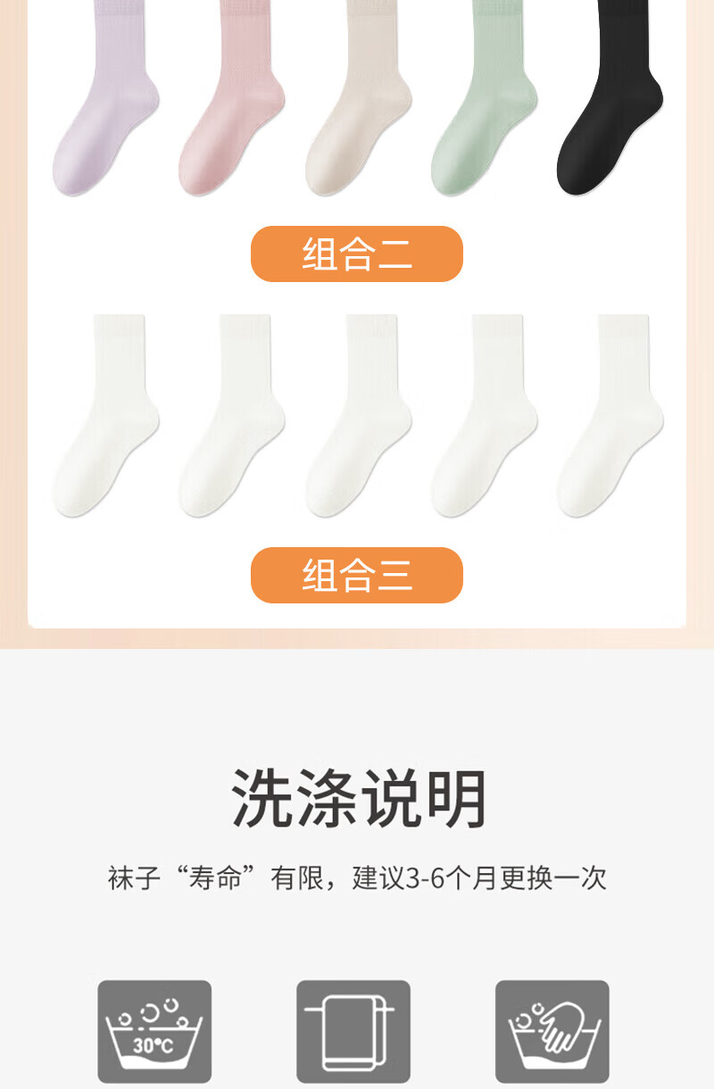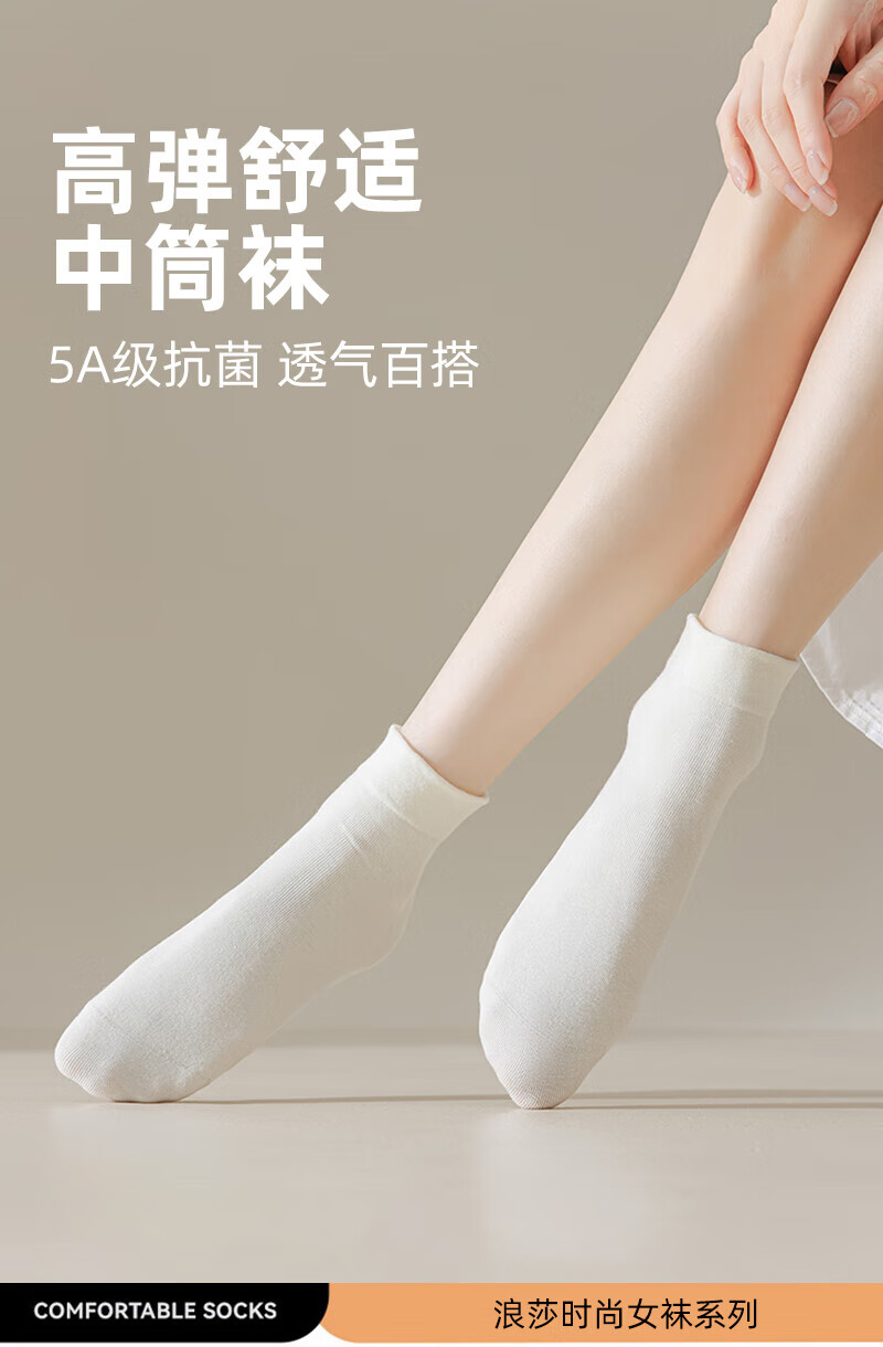 浪莎女袜10双装袜子女秋冬中筒棉袜舒适吸汗透气纯色运动休闲女士袜子 组合二 均码 【35-40码可穿】