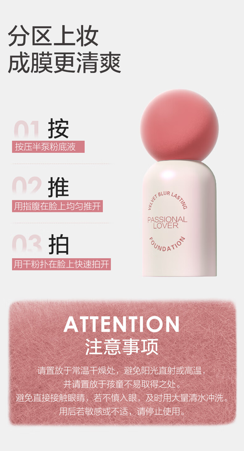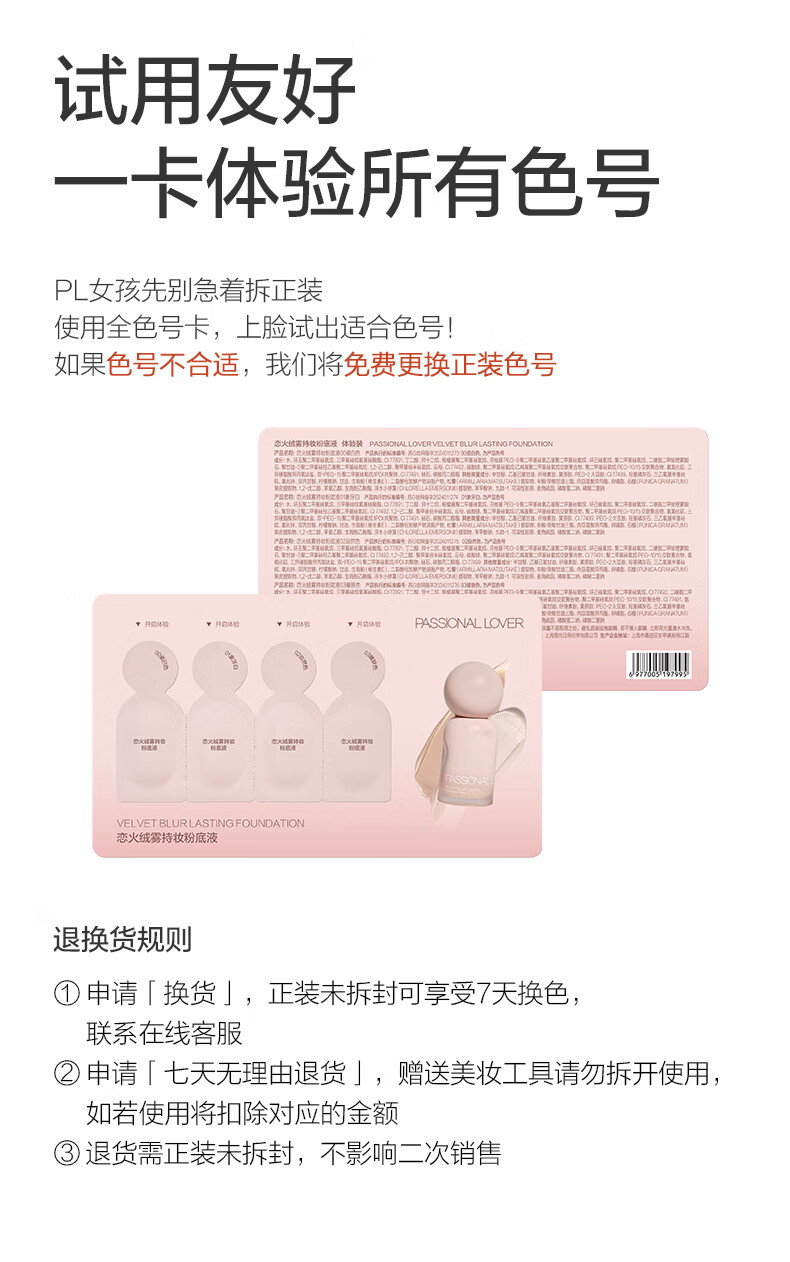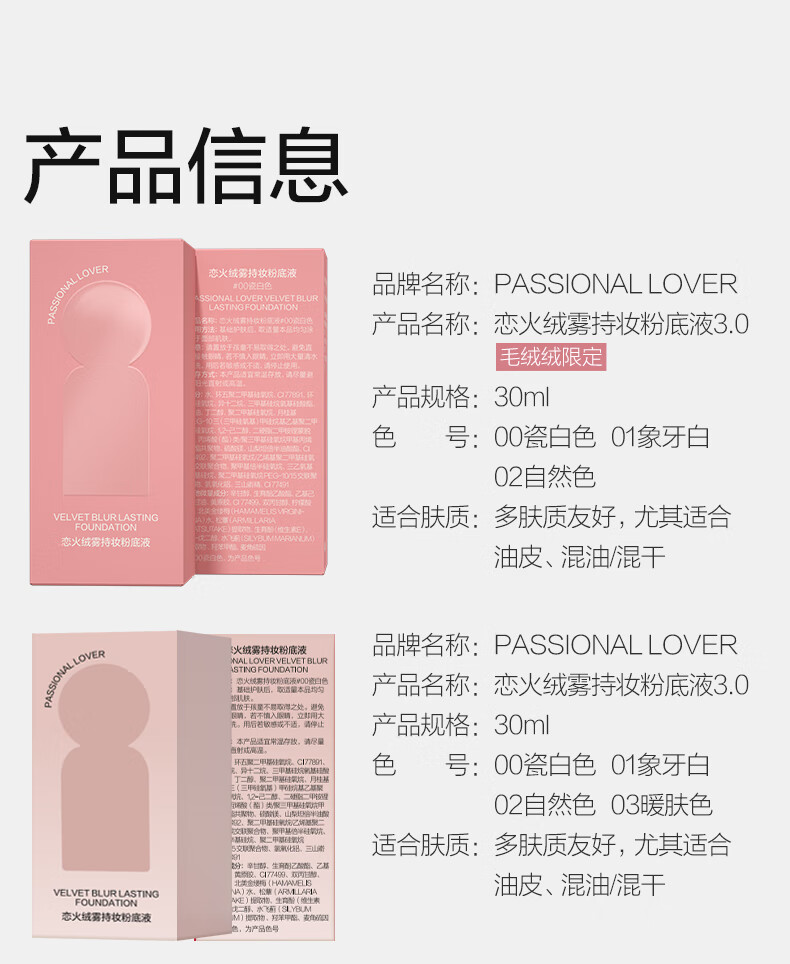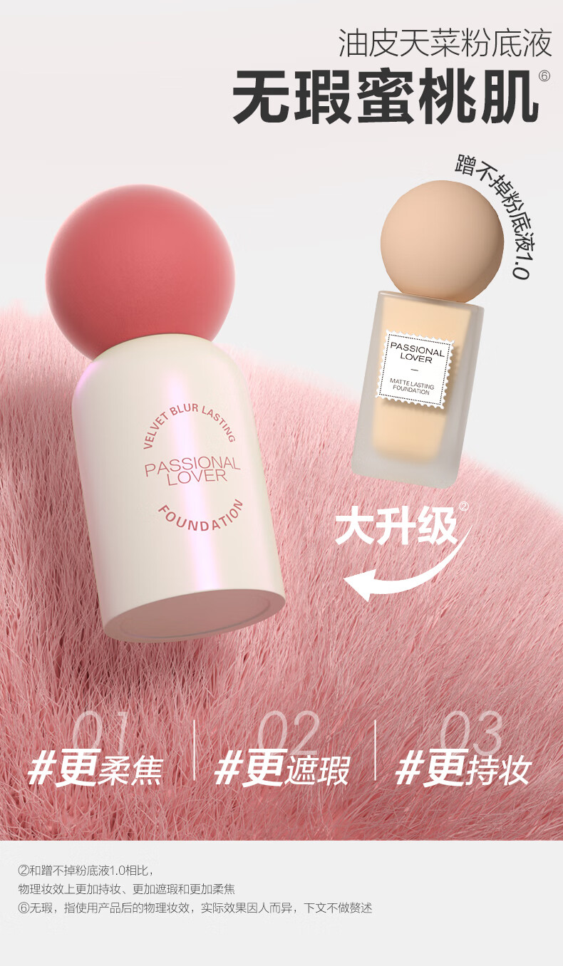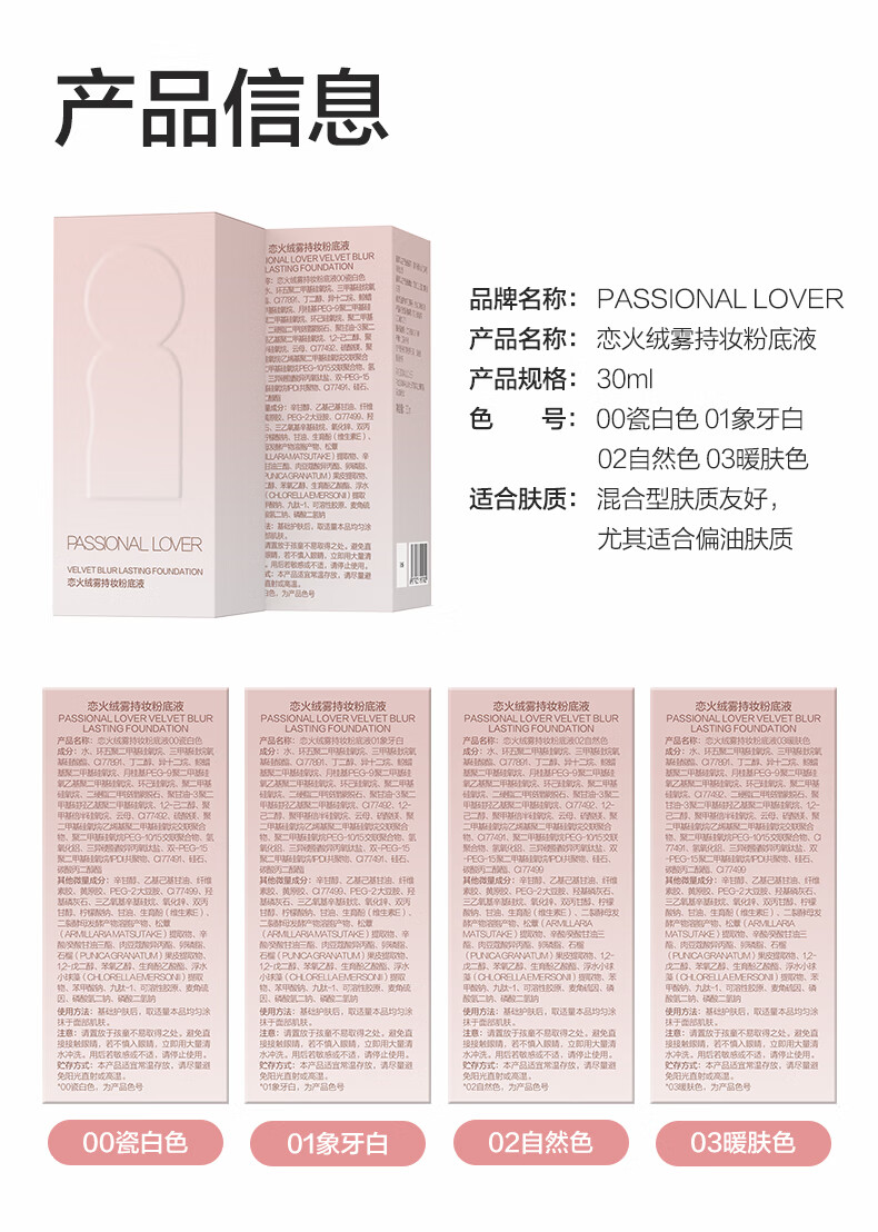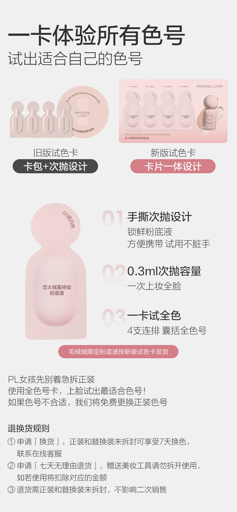 恋火PL蹭不掉粉底液4.0/3.0控油遮瑕持妆恋火粉底液生日礼物送女生 【4.0升级版】7ml 01象牙白
