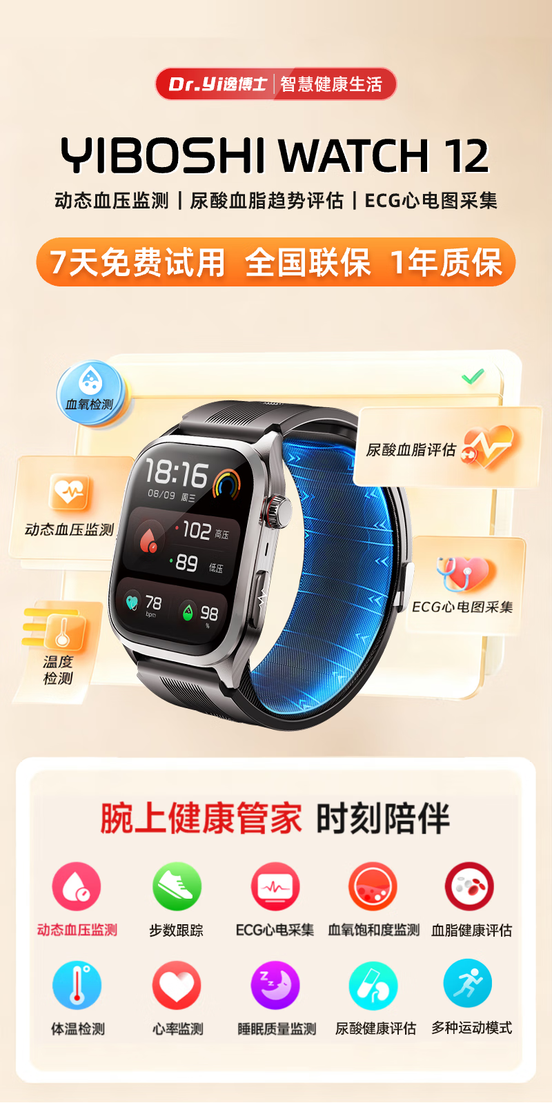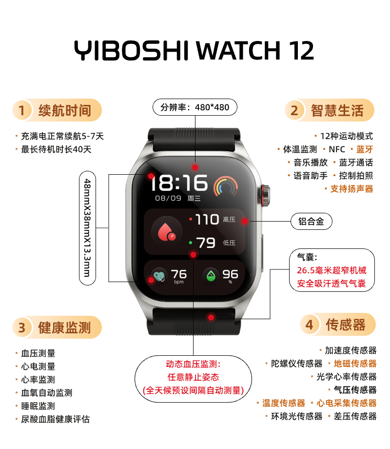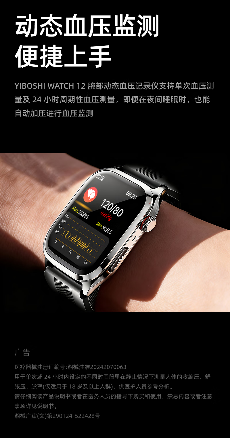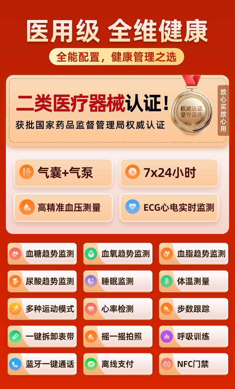 逸博士【原装正品,血压手表】适用华有为/ios机智能健康监测手表心率心电血糖血脂尿酸【医用级】NFC版 Turbo版|气泵单次充放1.5万次|30天续航 【医疗级认证+德国高端芯片】全机型适用