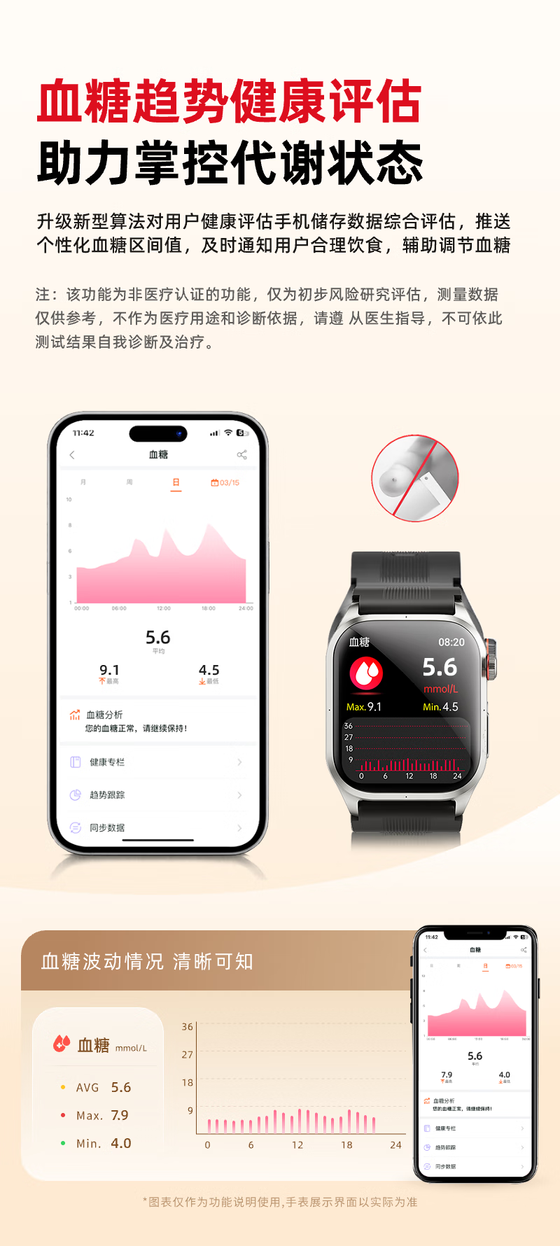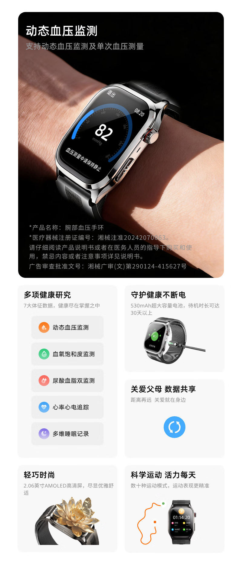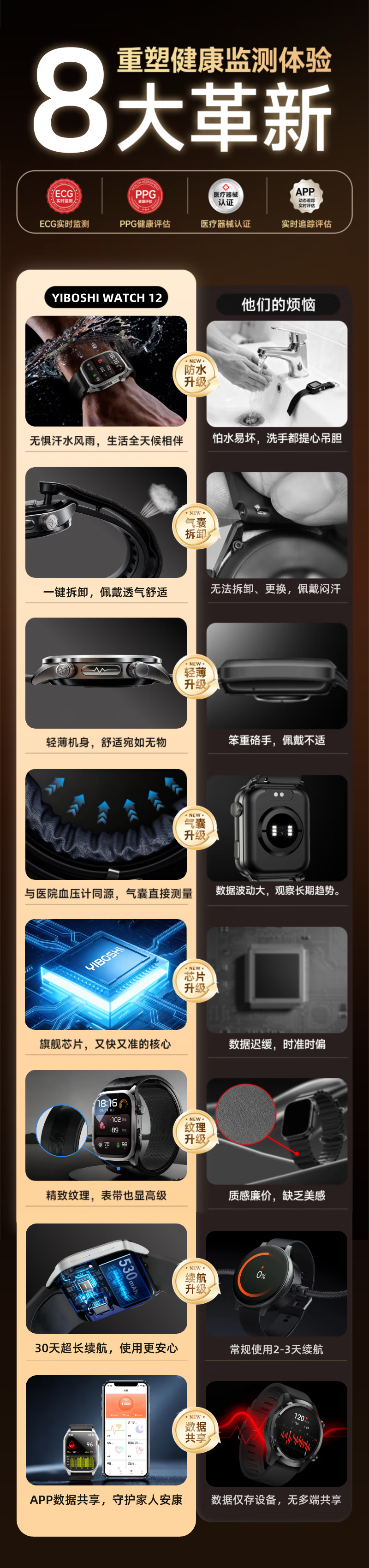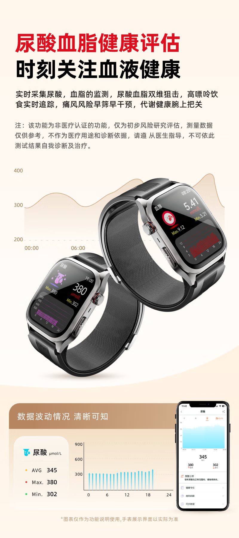 逸博士【原装正品,血压手表】适用华有为/ios机智能健康监测手表心率心电血糖血脂尿酸【医用级】NFC版 Turbo版|气泵单次充放1.5万次|30天续航 【医疗级认证+德国高端芯片】全机型适用