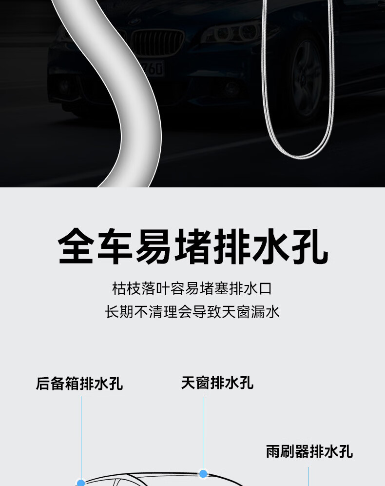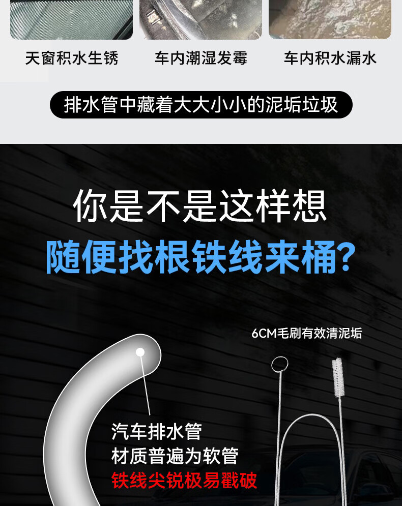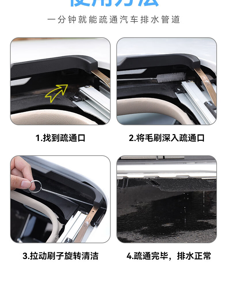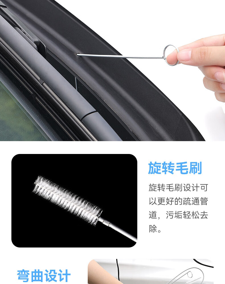 汽车门排水孔疏通器天窗管道积水清洗刷子堵塞疏通工具通冰箱神器 【热卖组合】疏通器2m+配件等