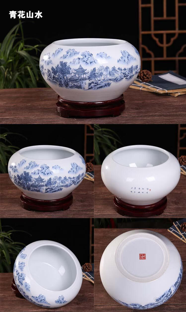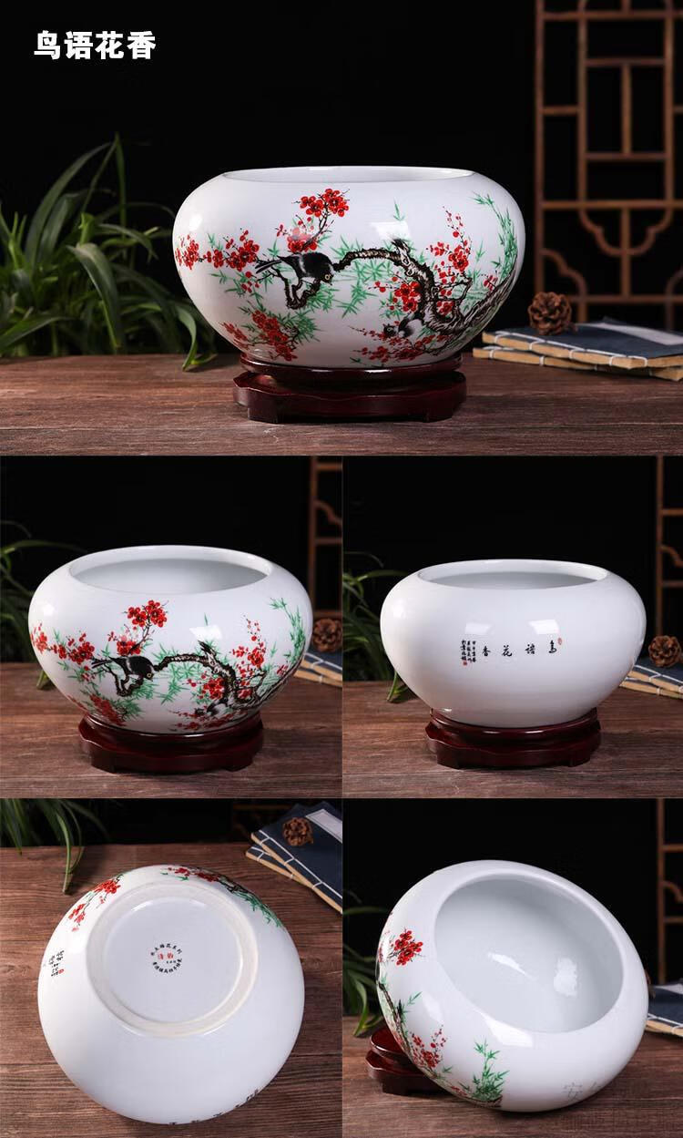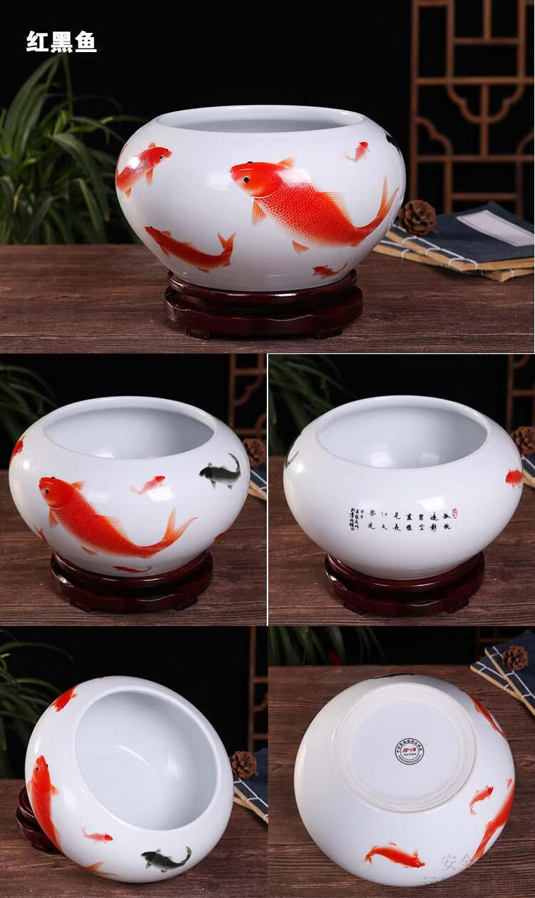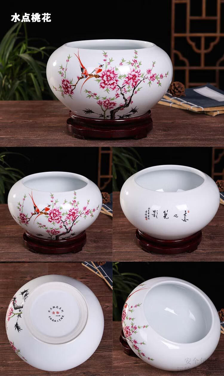 希格鲨景德镇陶瓷鱼缸小号金鱼乌龟缸睡莲碗莲花盆笔洗养鱼盆家用水浅 水点桃花中号 (不带底座)