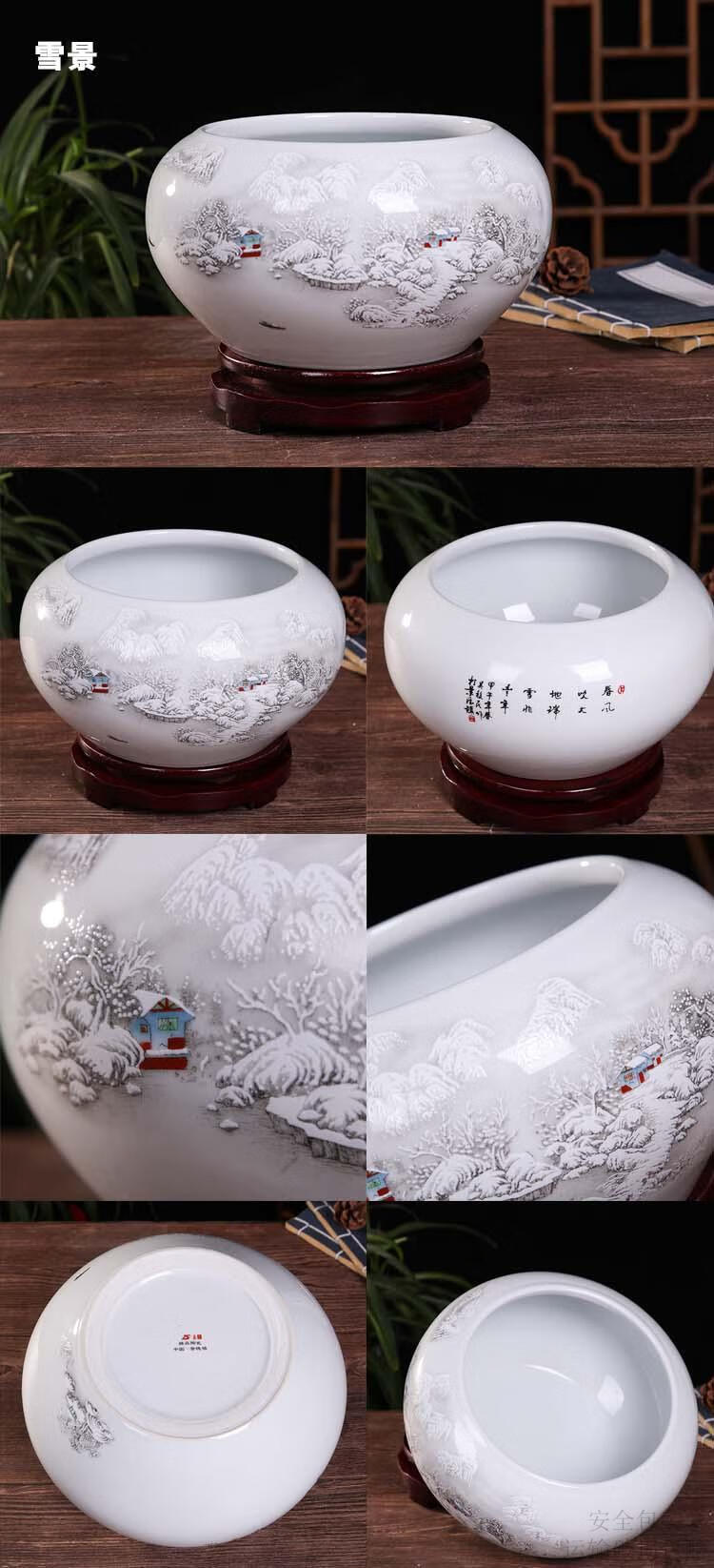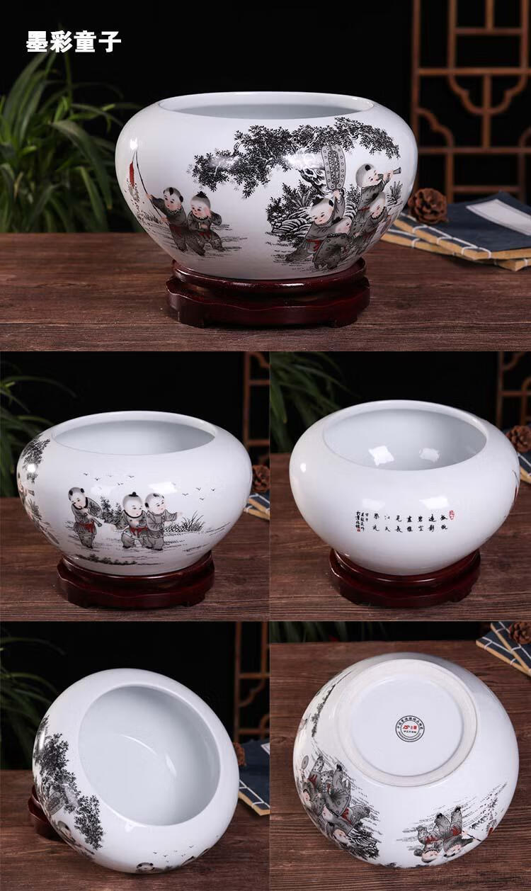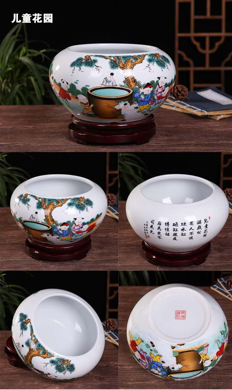 希格鲨景德镇陶瓷鱼缸小号金鱼乌龟缸睡莲碗莲花盆笔洗养鱼盆家用水浅 水点桃花中号 (不带底座)
