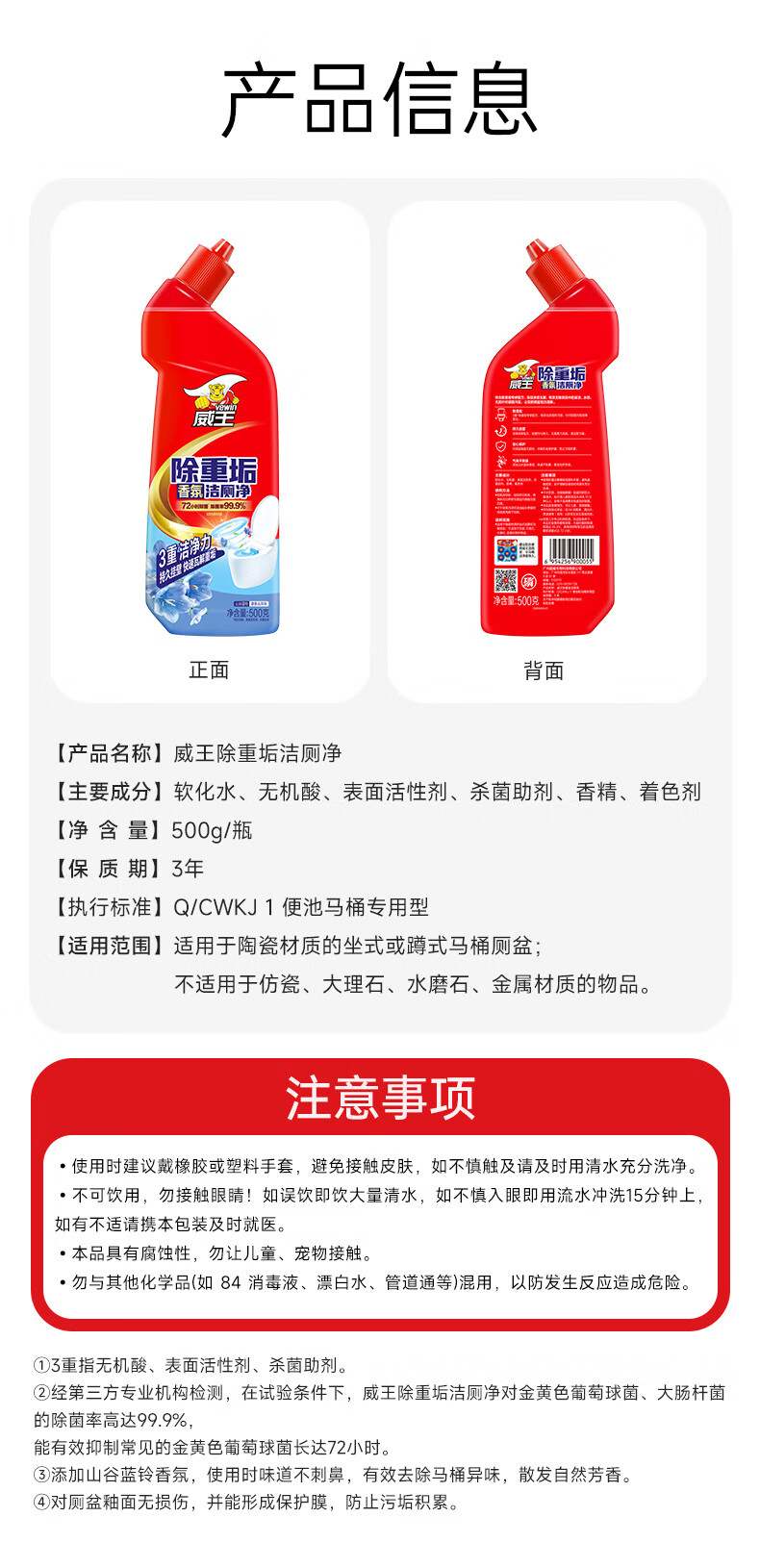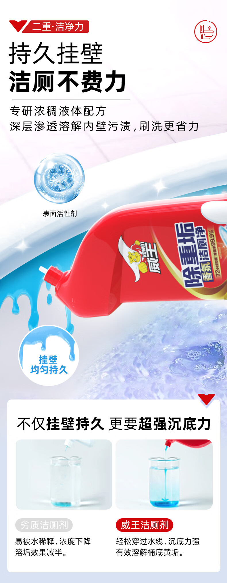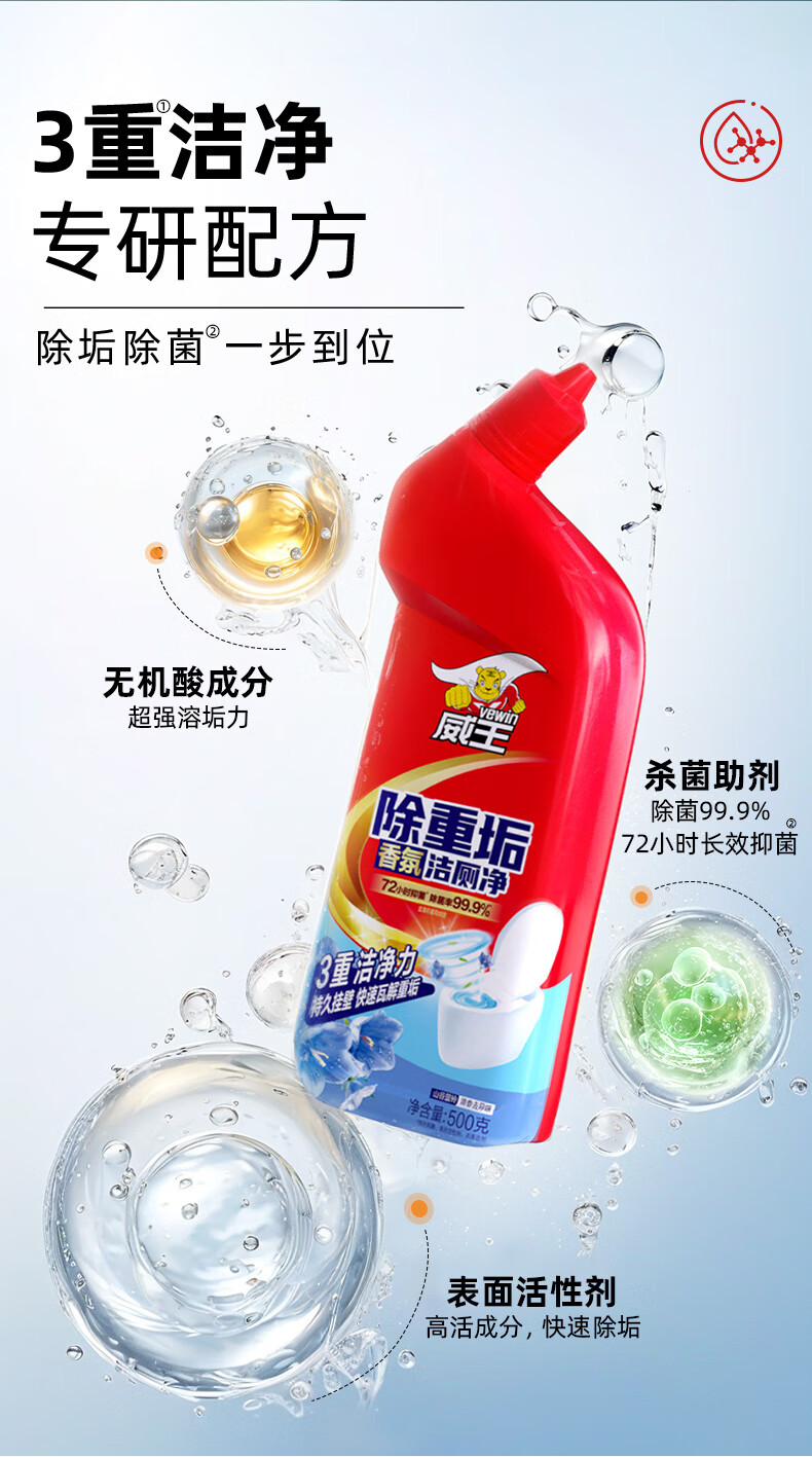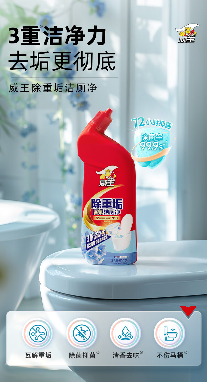 威王(vewin)洁厕灵 除重垢洁厕剂洁厕液除臭厕所马桶清洁除菌剂洁厕 【松木清香】强效洁厕4瓶