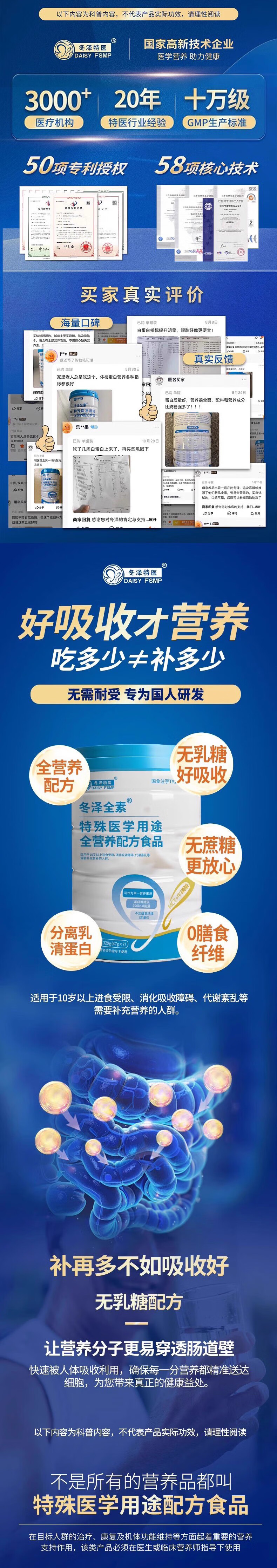 冬泽全素特医全营养配方粉 特医蛋白粉补充营养礼品 周体验-单罐装 329g*1罐