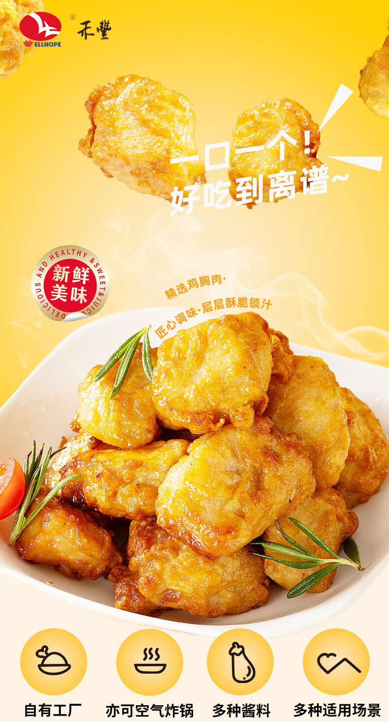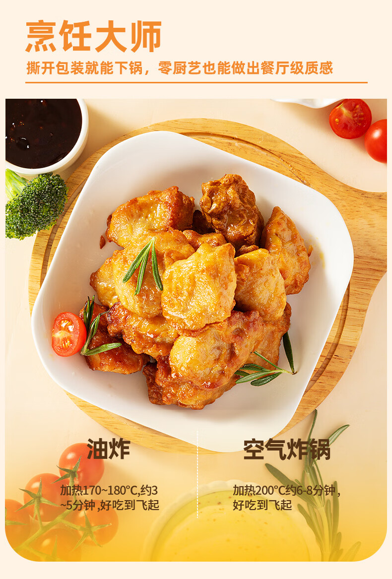 禾豊禾丰美食肉多多空气炸锅速食美味唐扬鸡块3包送5种口味酱料 9鸡块5鸡排(2020g)