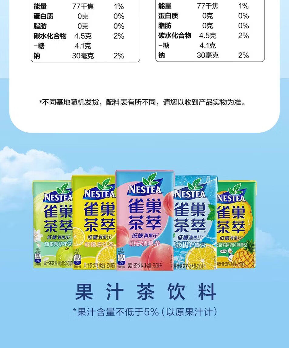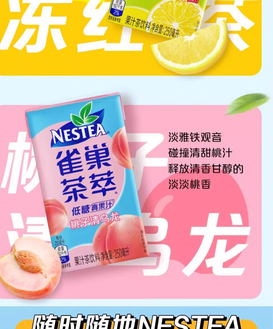 雀巢茶萃新货桃子乌龙柠檬红茶百香果绿茶低糖果汁饮料250ml整箱 随机2味组合250ml*12盒【可选2味】