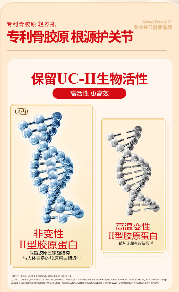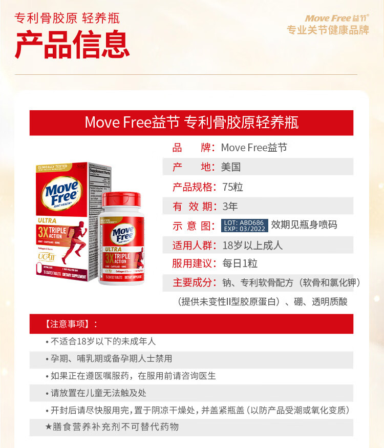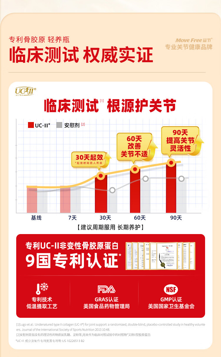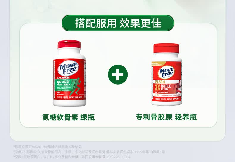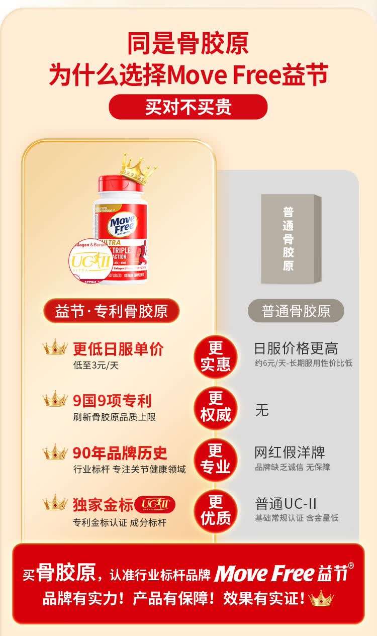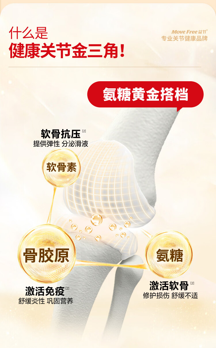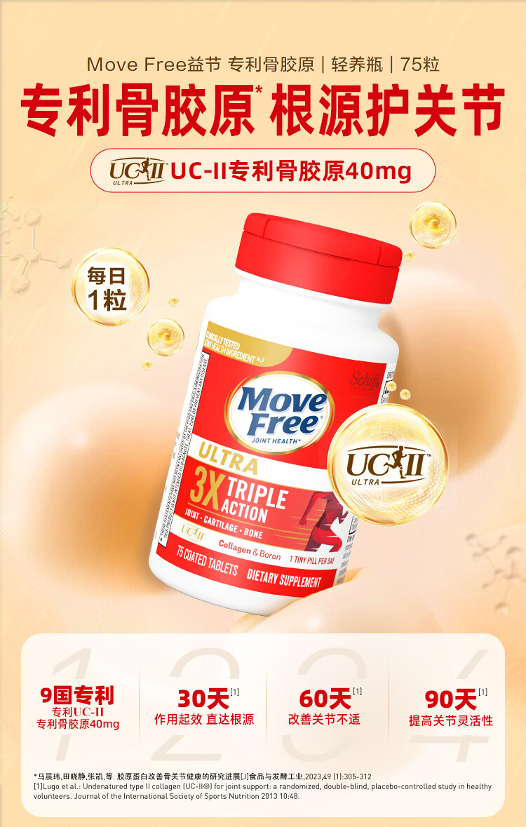 益节(Move Free)UC2专利骨胶原 二型胶原蛋白 氨糖软骨素搭档美国进口维骨力 【氨糖搭档】专利骨胶原 75粒*1瓶
