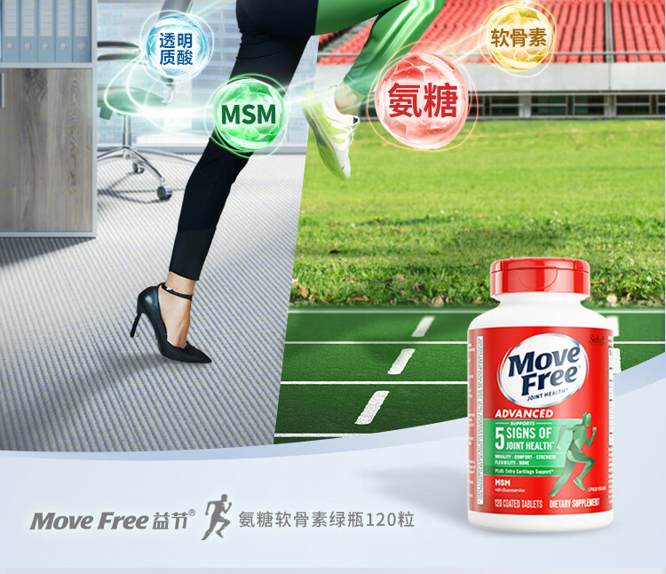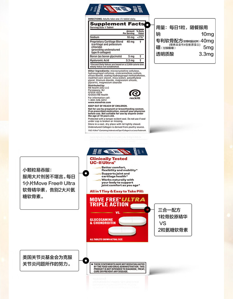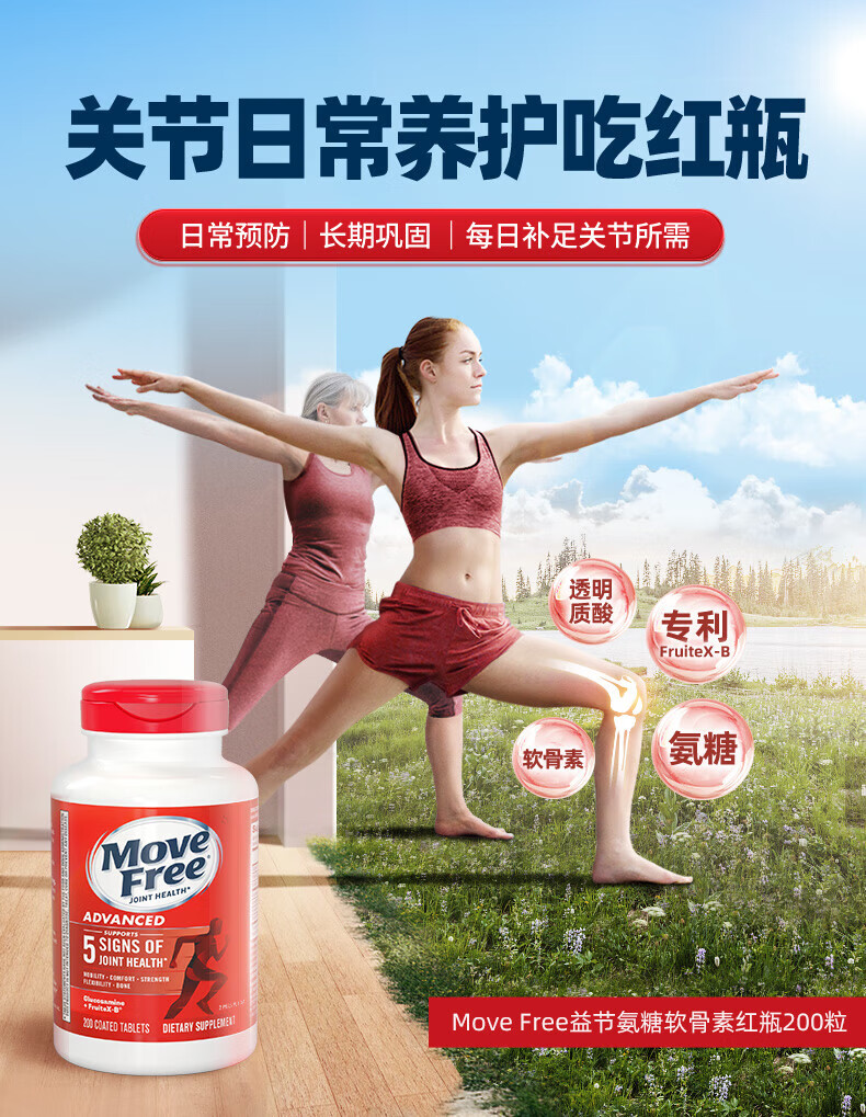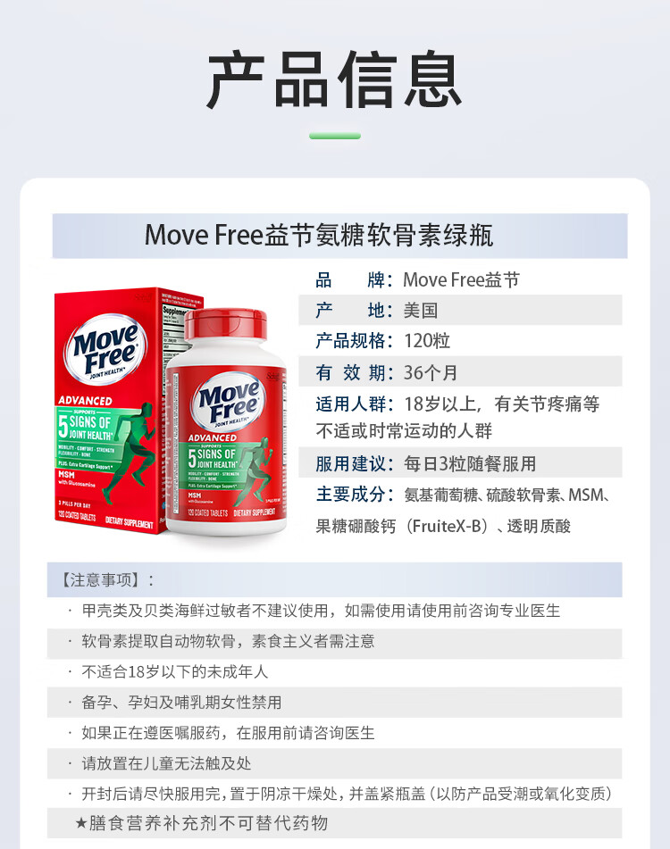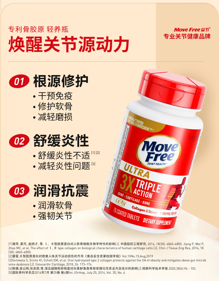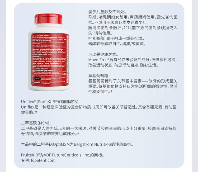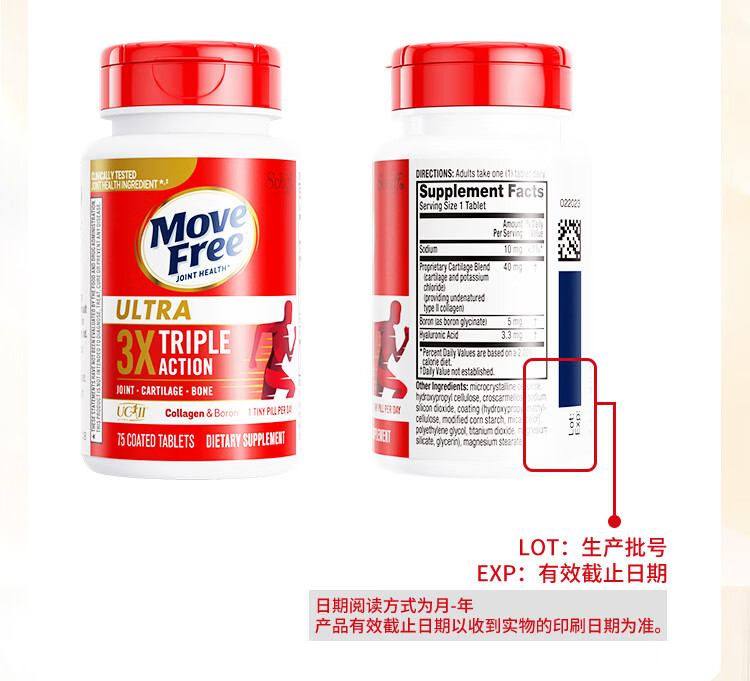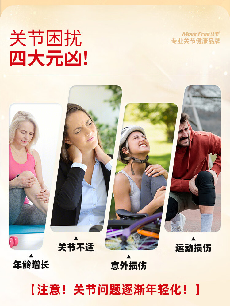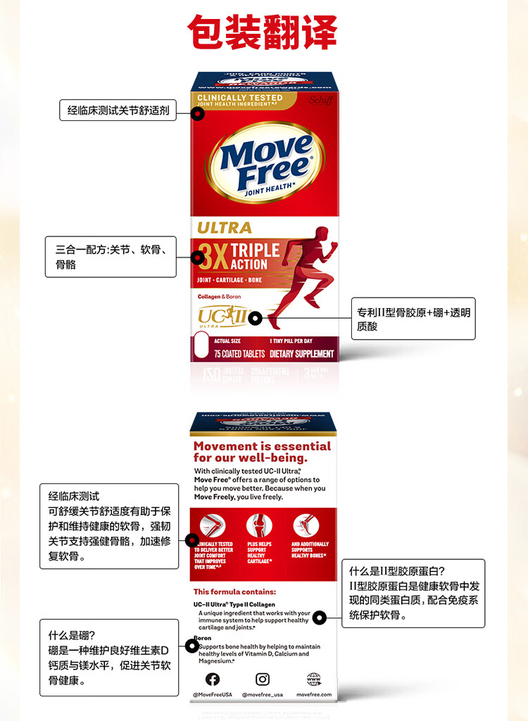 益节(Move Free)UC2专利骨胶原 二型胶原蛋白 氨糖软骨素搭档美国进口维骨力 【氨糖搭档】专利骨胶原 75粒*1瓶