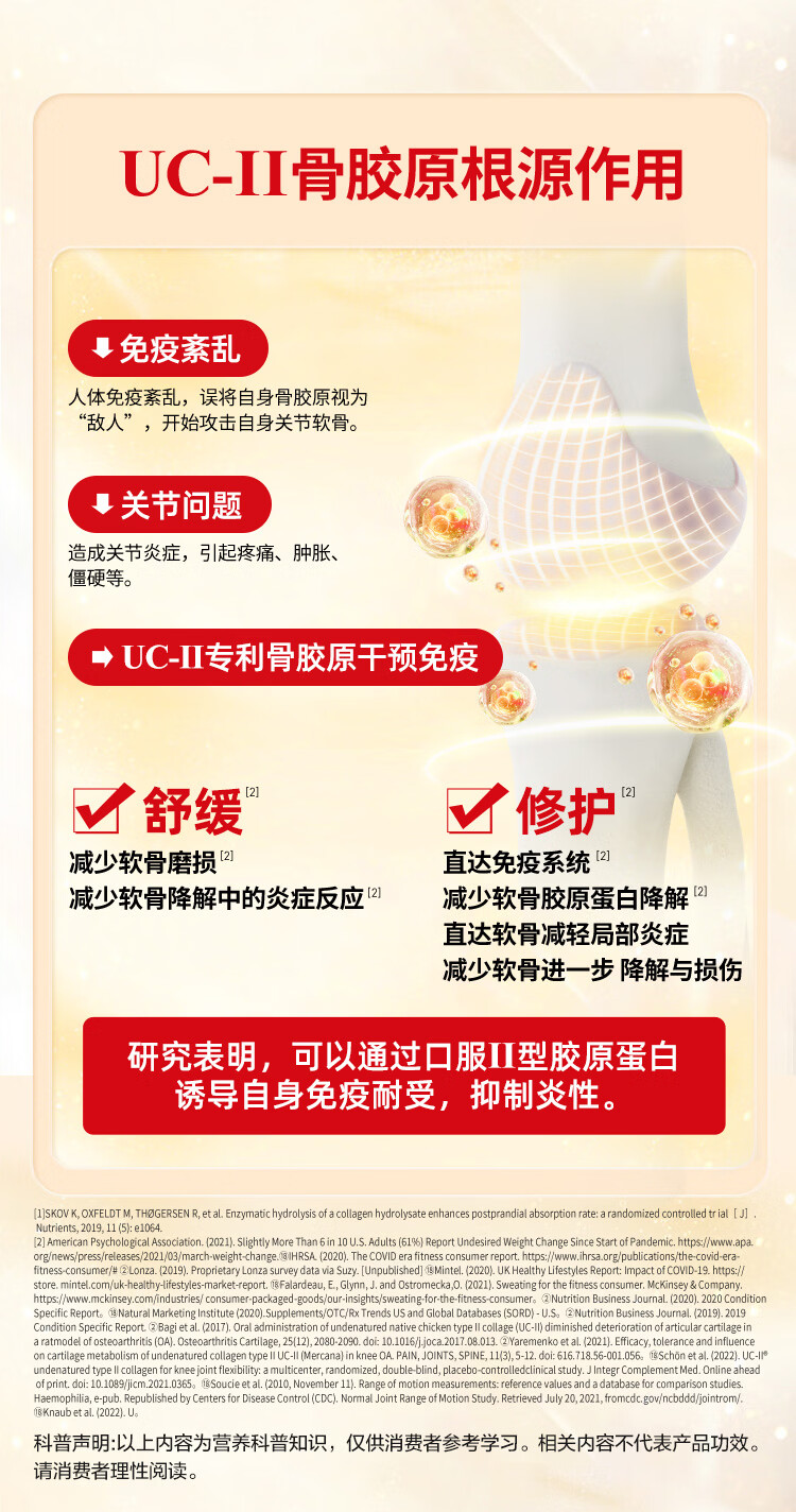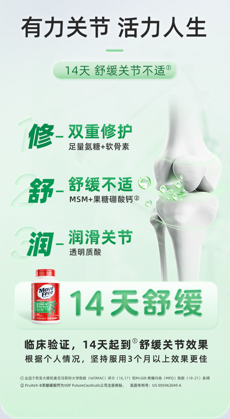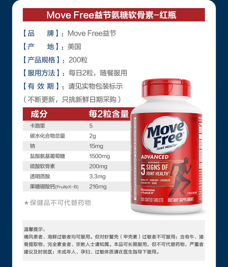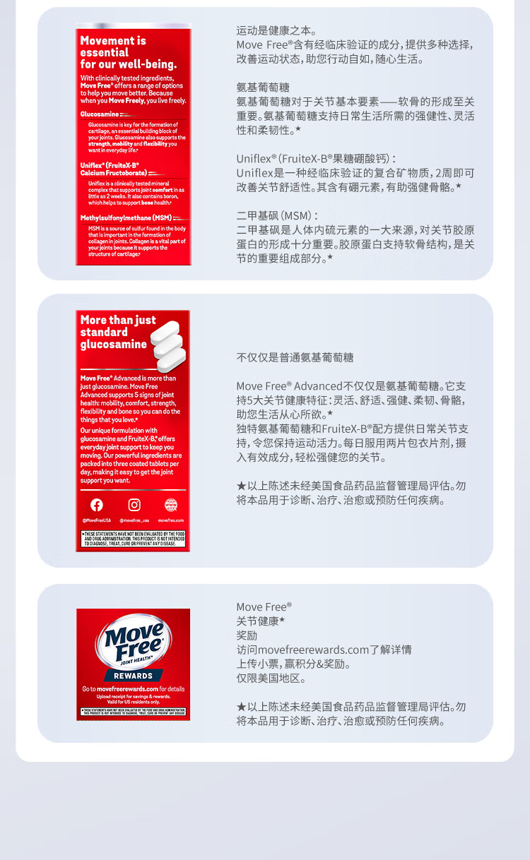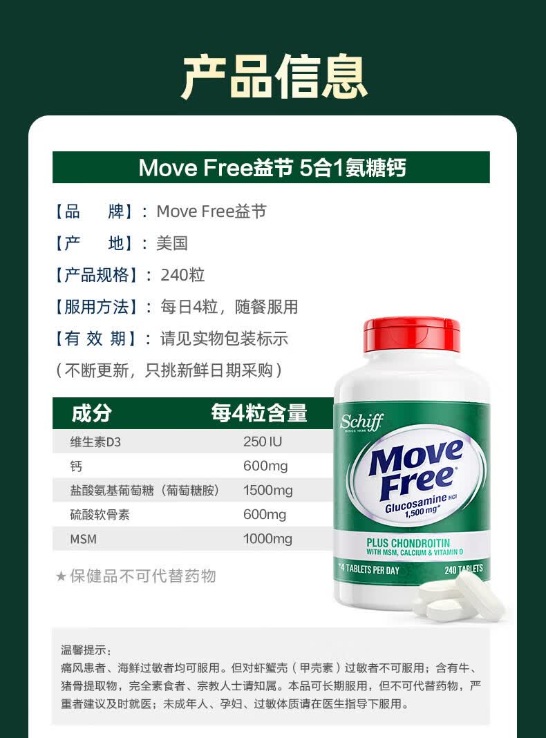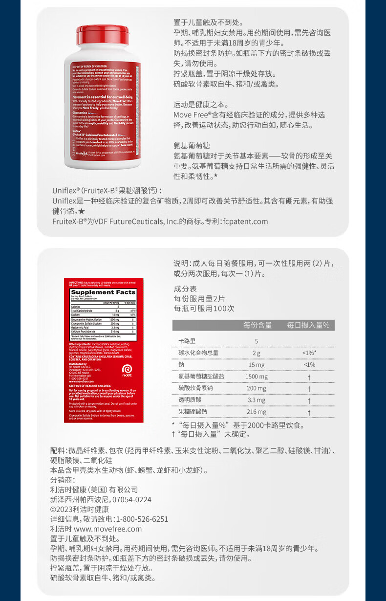 益节(Move Free)UC2专利骨胶原 二型胶原蛋白 氨糖软骨素搭档美国进口维骨力 【氨糖搭档】专利骨胶原 75粒*1瓶