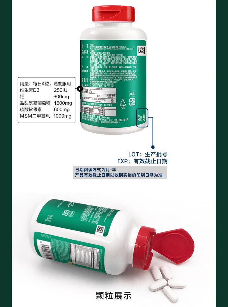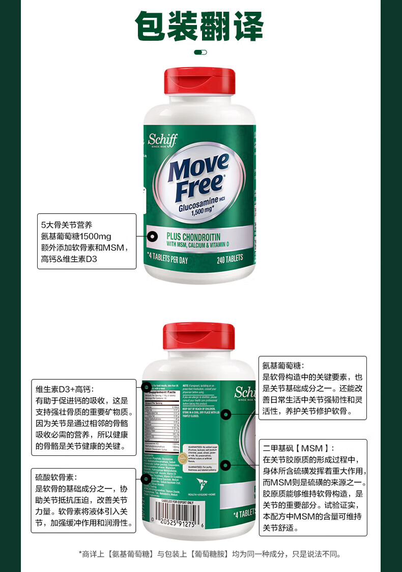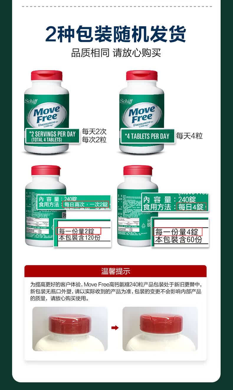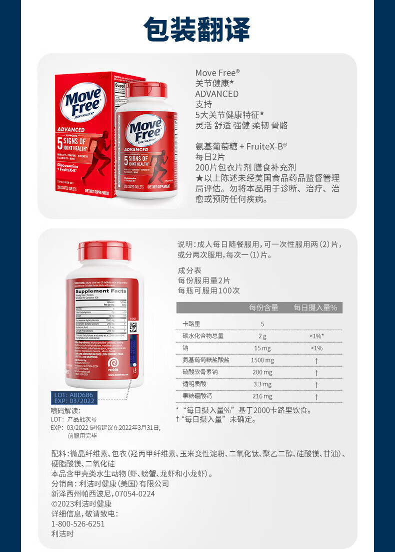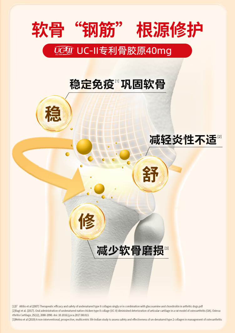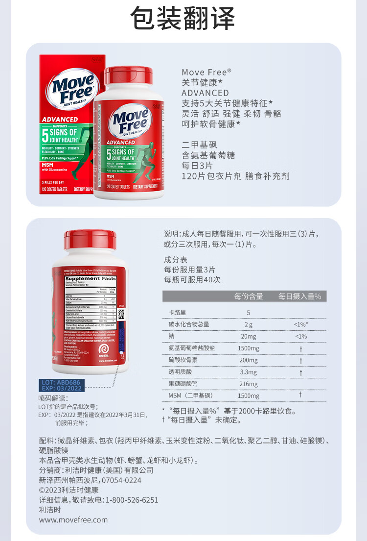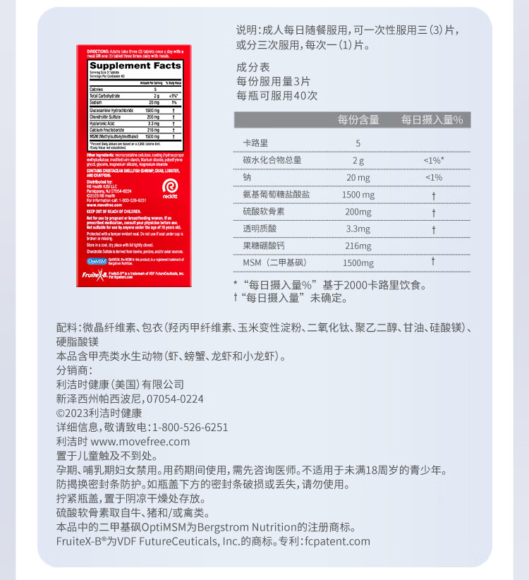 益节(Move Free)UC2专利骨胶原 二型胶原蛋白 氨糖软骨素搭档美国进口维骨力 【氨糖搭档】专利骨胶原 75粒*1瓶