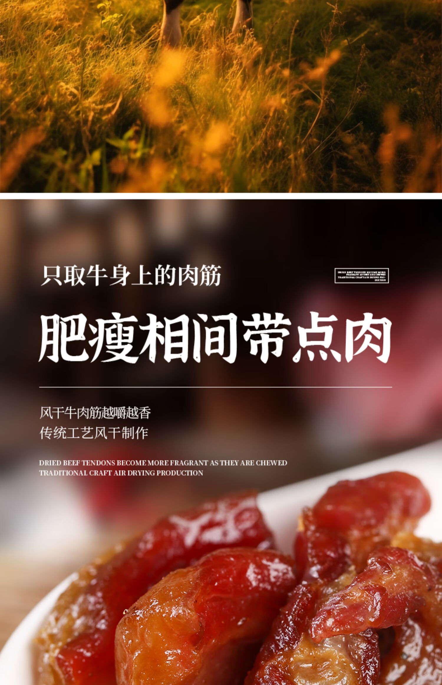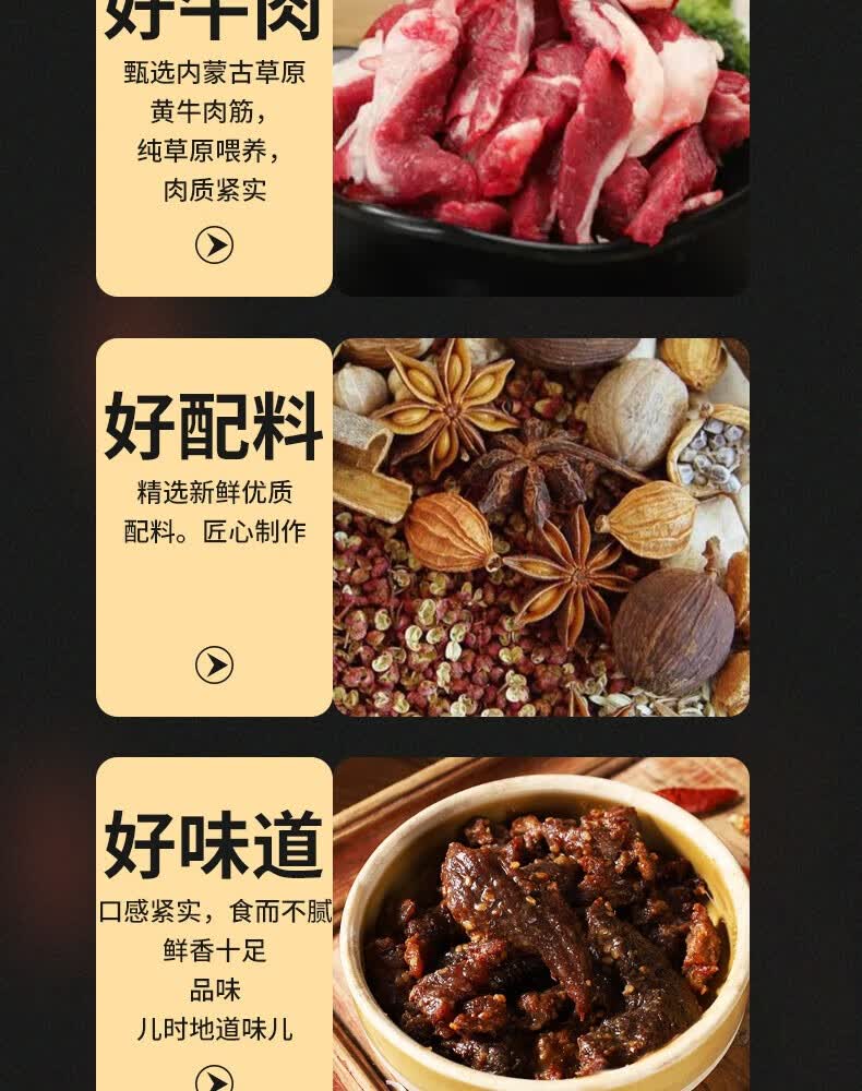 哞哩牧场内蒙古特产风干牛肉筋手撕牛肉干边角料肥瘦相间开袋即食下酒零食 牛肉筋原味+孜然【500g】 规格:125g/袋