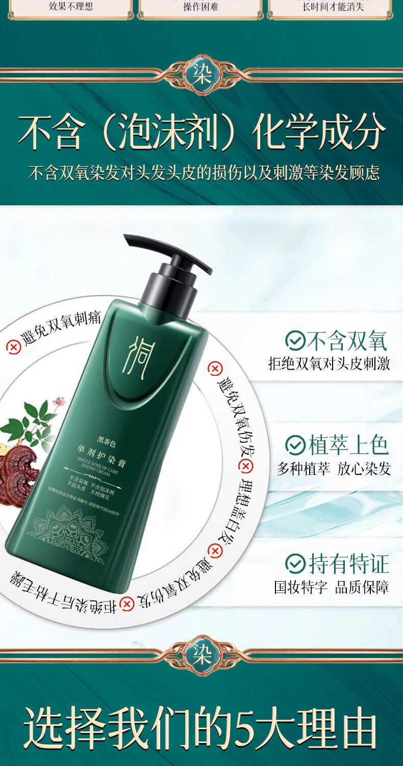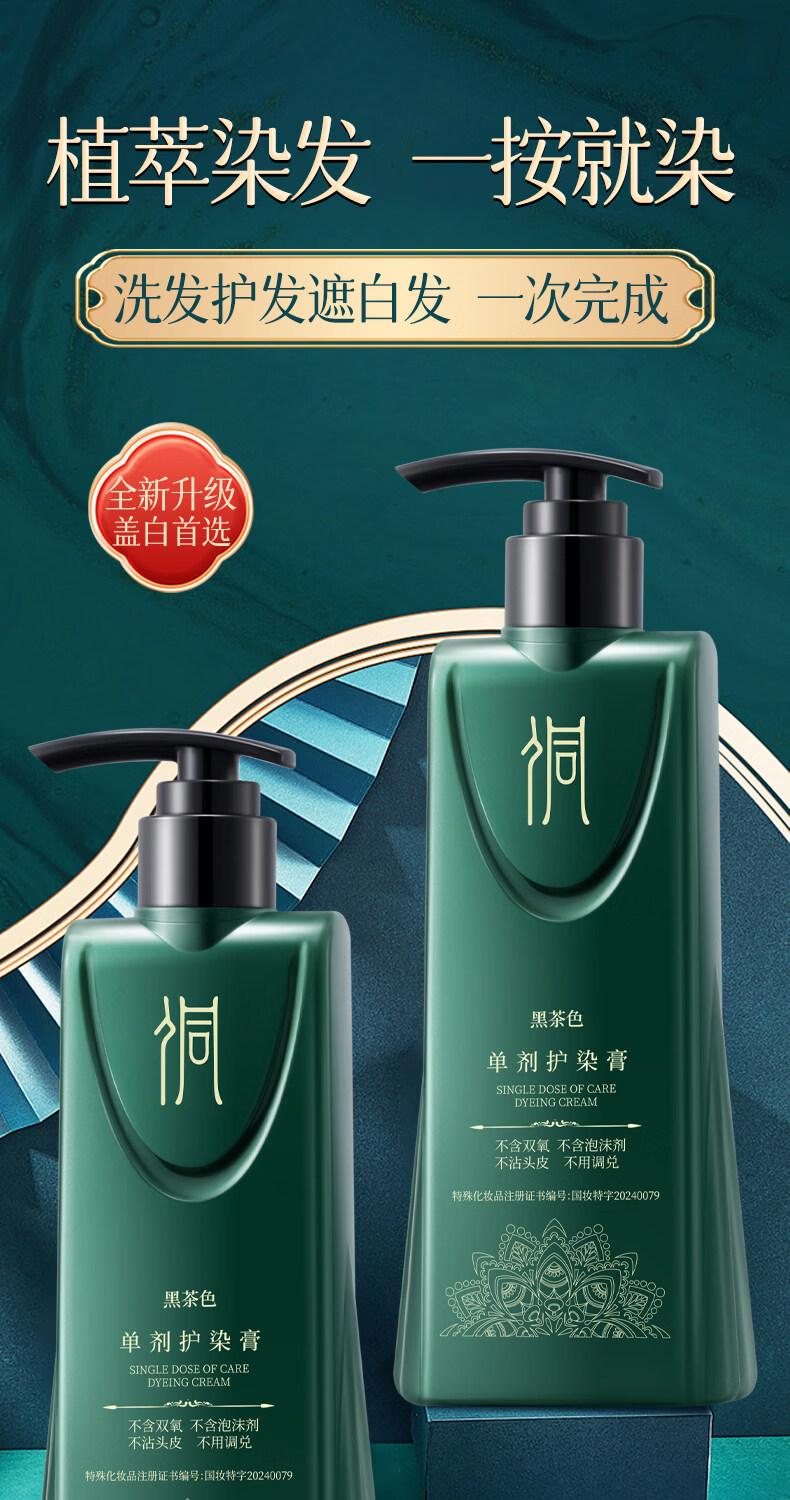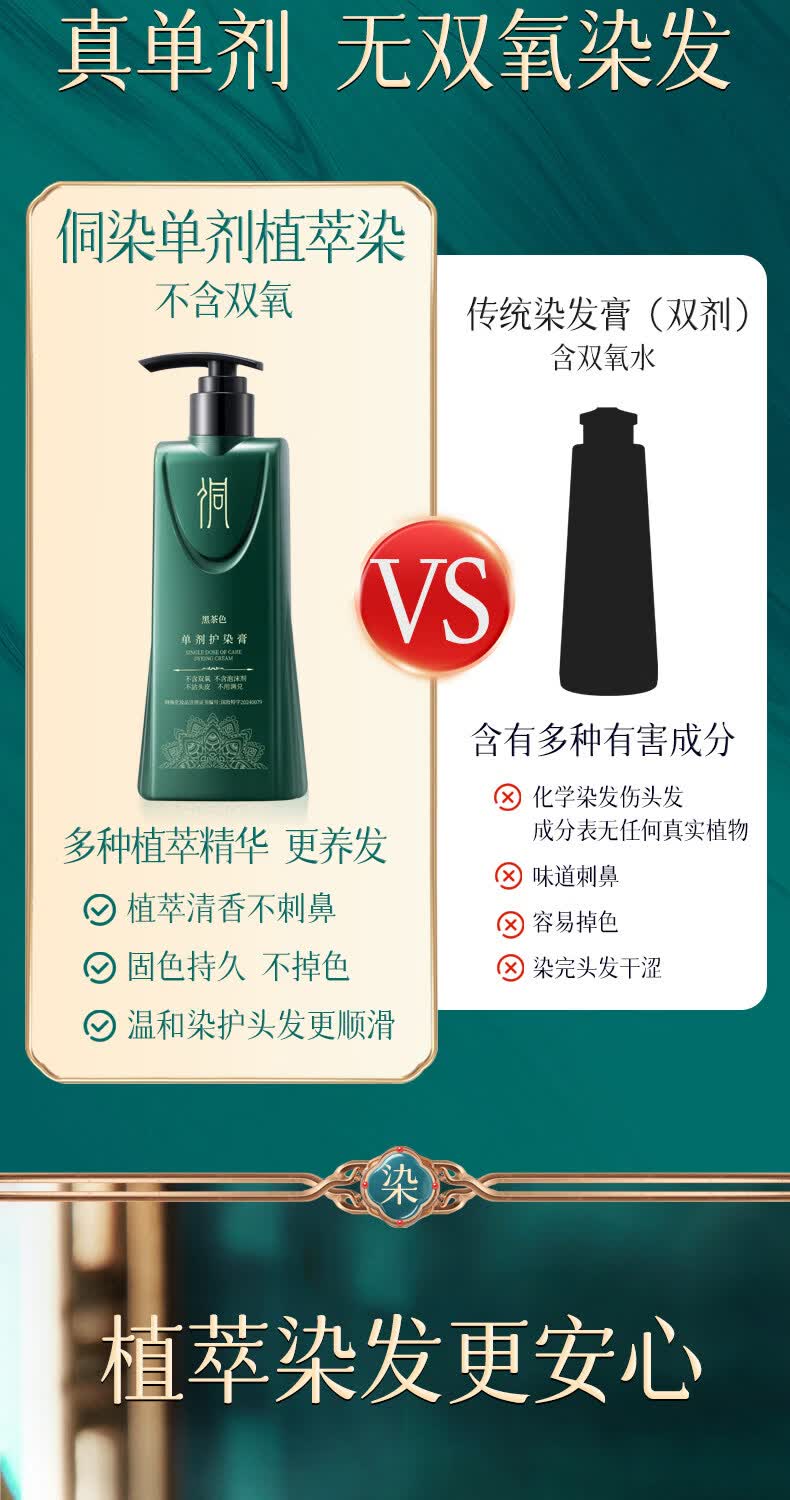 侗染单剂染发膏100%植物萃取染发剂纯天然无刺激不沾头皮染发剂黑茶色