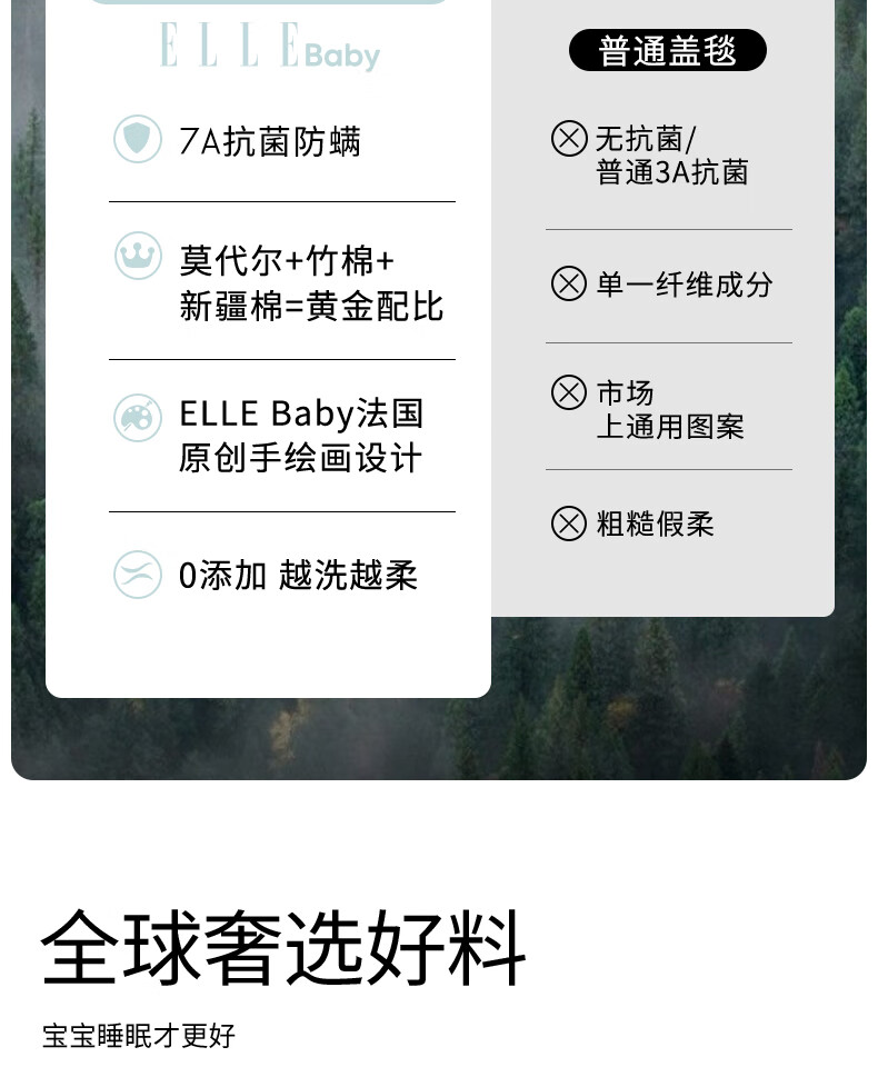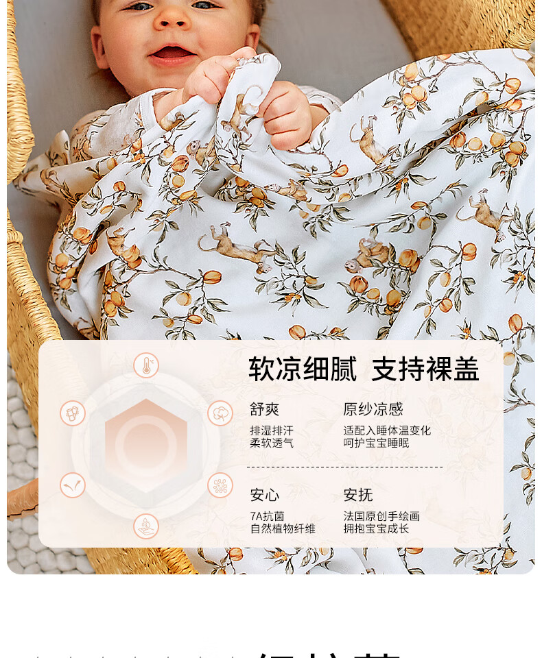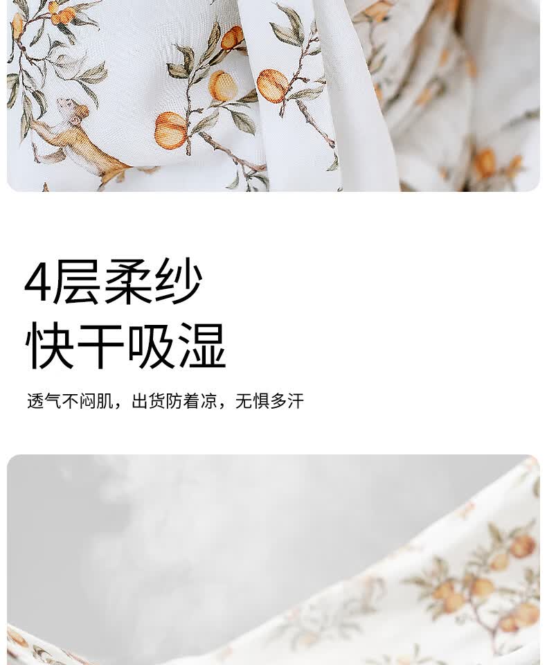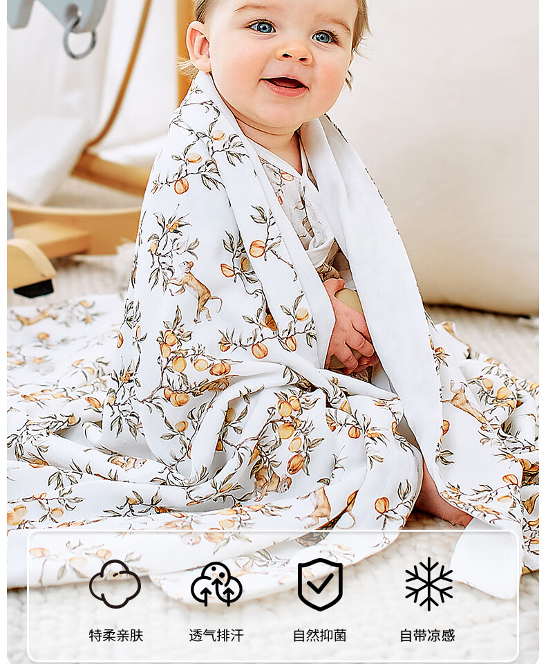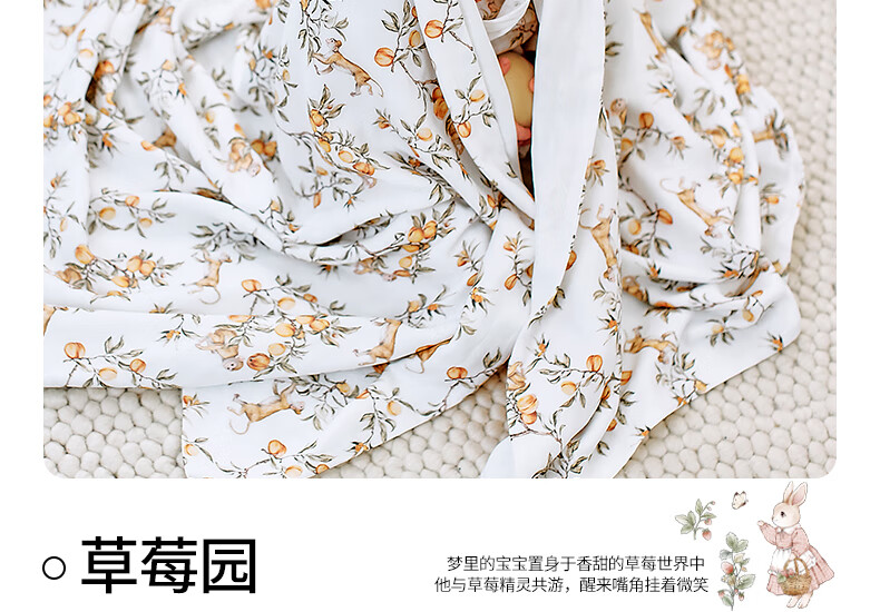 ELLE BABY婴儿盖毯宝宝豆豆毯夏款防踢被凉感透气抑菌可机洗推车婴儿床两用 草莓园 四层【推荐温度25℃-35℃】