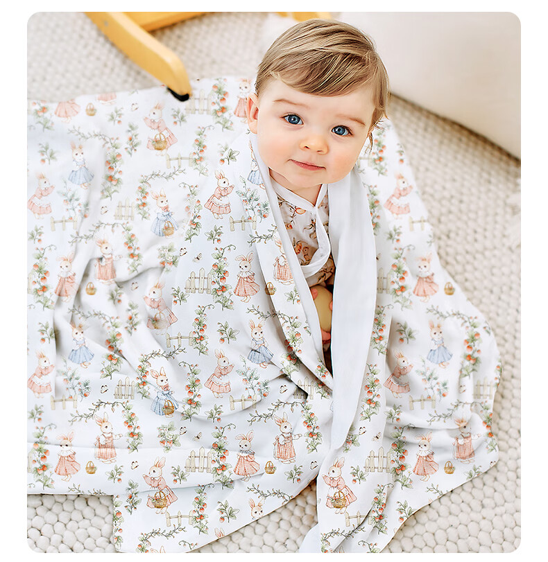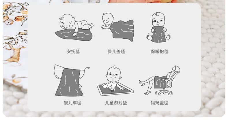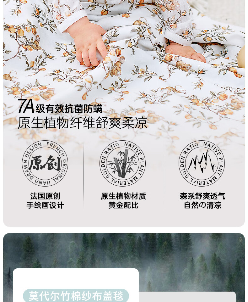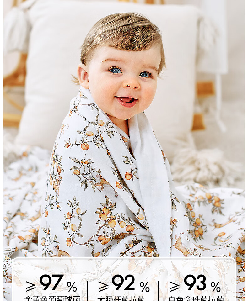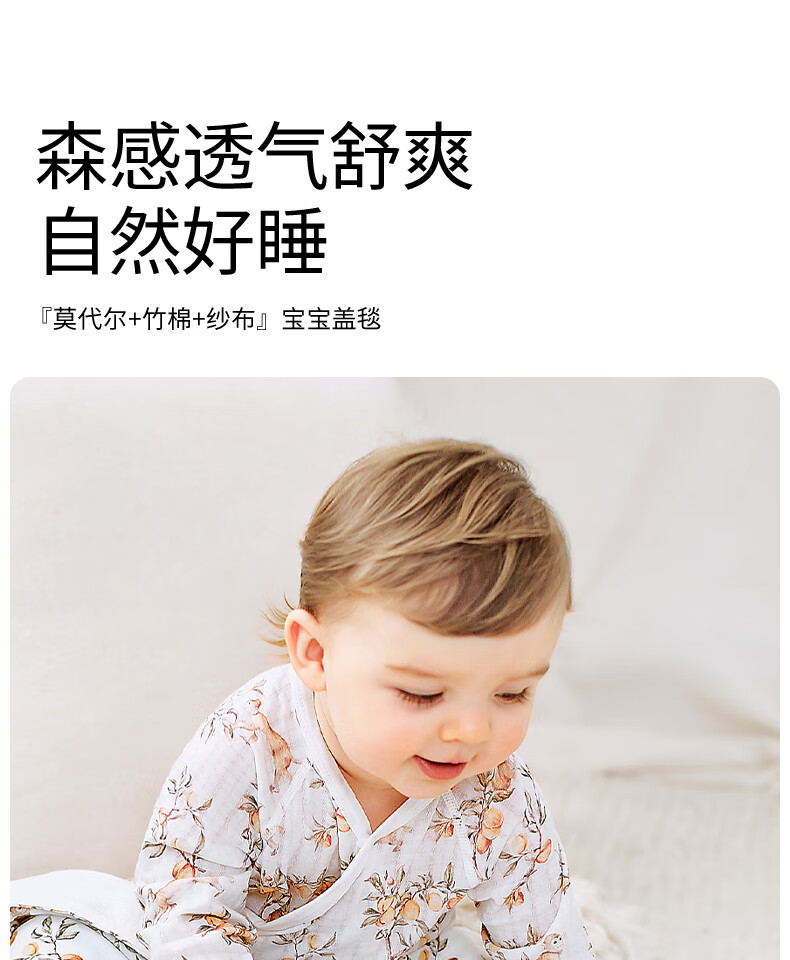ELLE BABY婴儿盖毯宝宝豆豆毯夏款防踢被凉感透气抑菌可机洗推车婴儿床两用 草莓园 四层【推荐温度25℃-35℃】