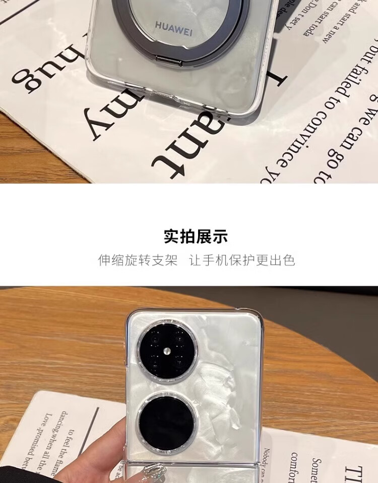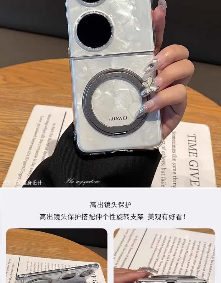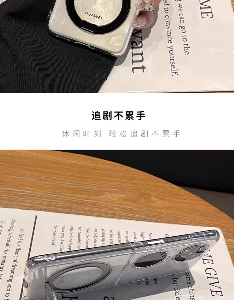 适用华为pocket2手机壳透明折叠屏新款超薄防摔简约磁吸支架外壳 银色【360°旋转磁吸支架】 华为 Pocket 2