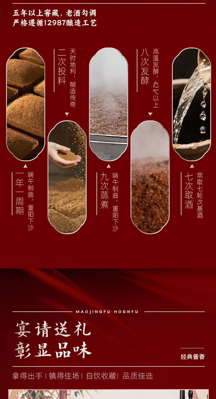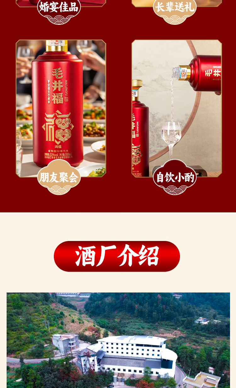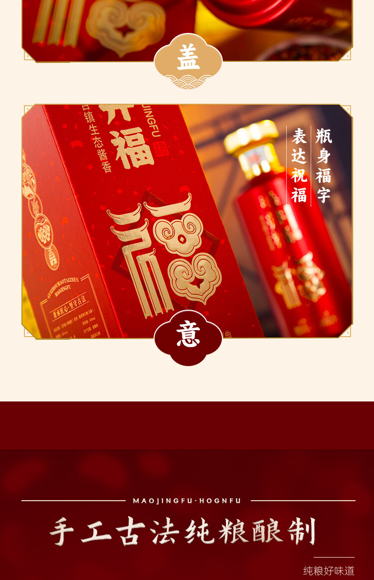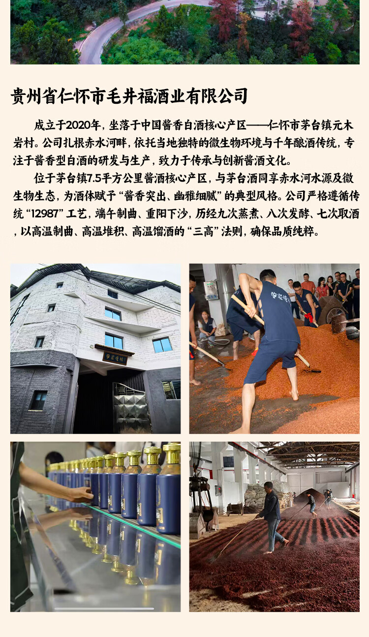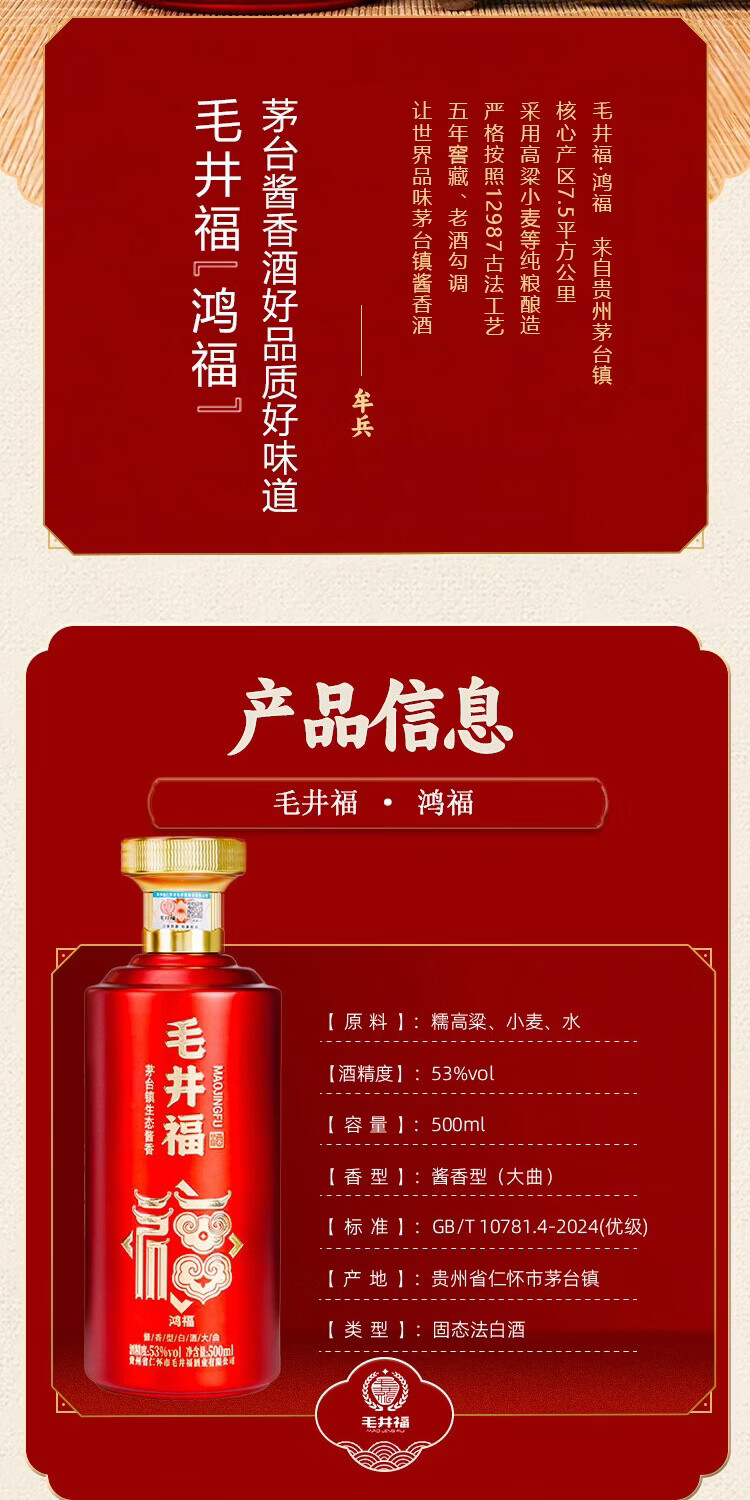 毛井福 贵州大曲坤沙纯粮食白酒 茅台镇酱香型53度高粱酒 婚宴酒席礼品 53%vol 500mL 6瓶 【整箱,送礼品袋三个】
