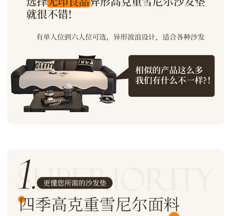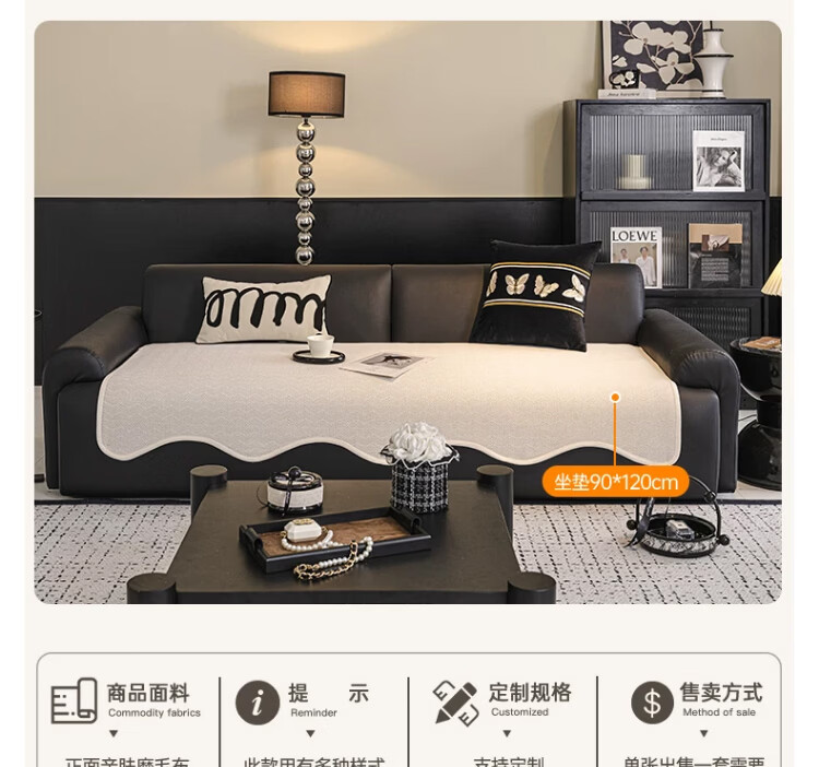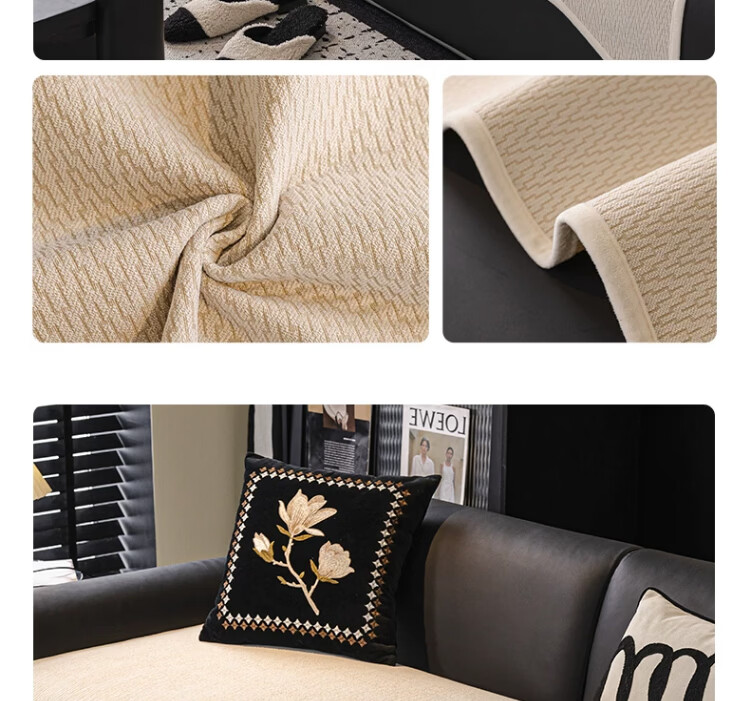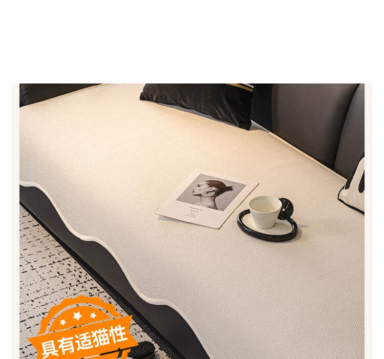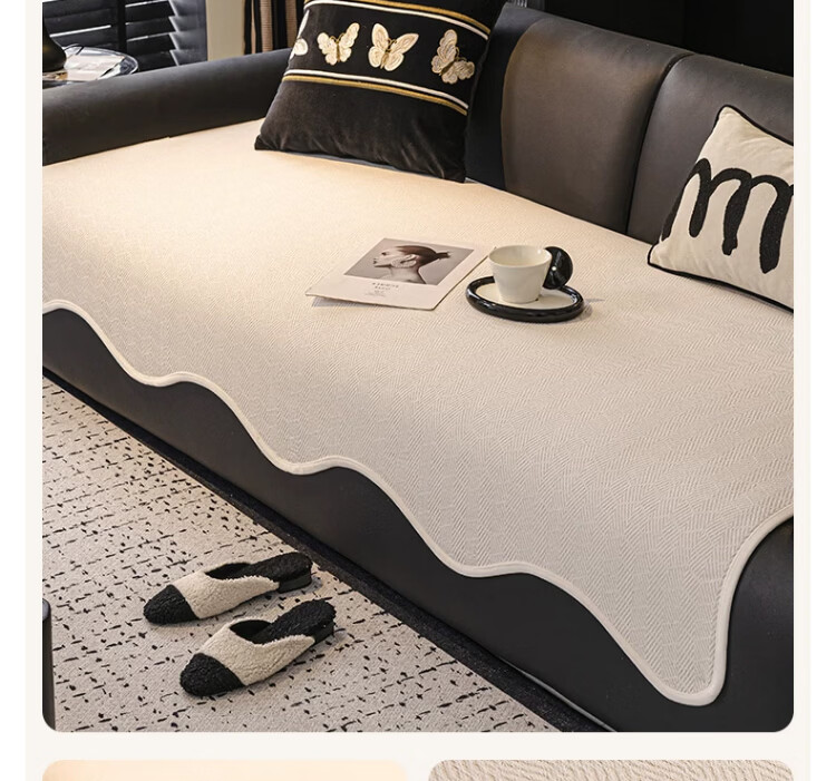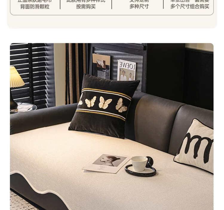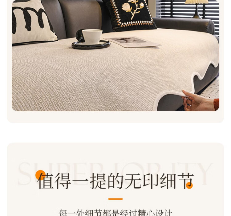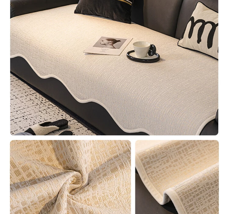 无印良品沙发垫子高档沙发巾轻奢四季通用沙发座垫防滑皮沙发专用垫 慕柔-米色【软硅胶防滑 耐磨防抓 机洗无忧】 90*120cm